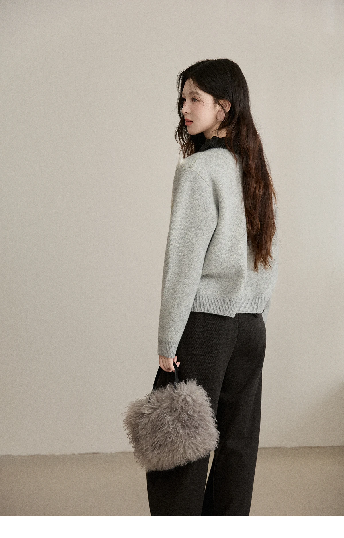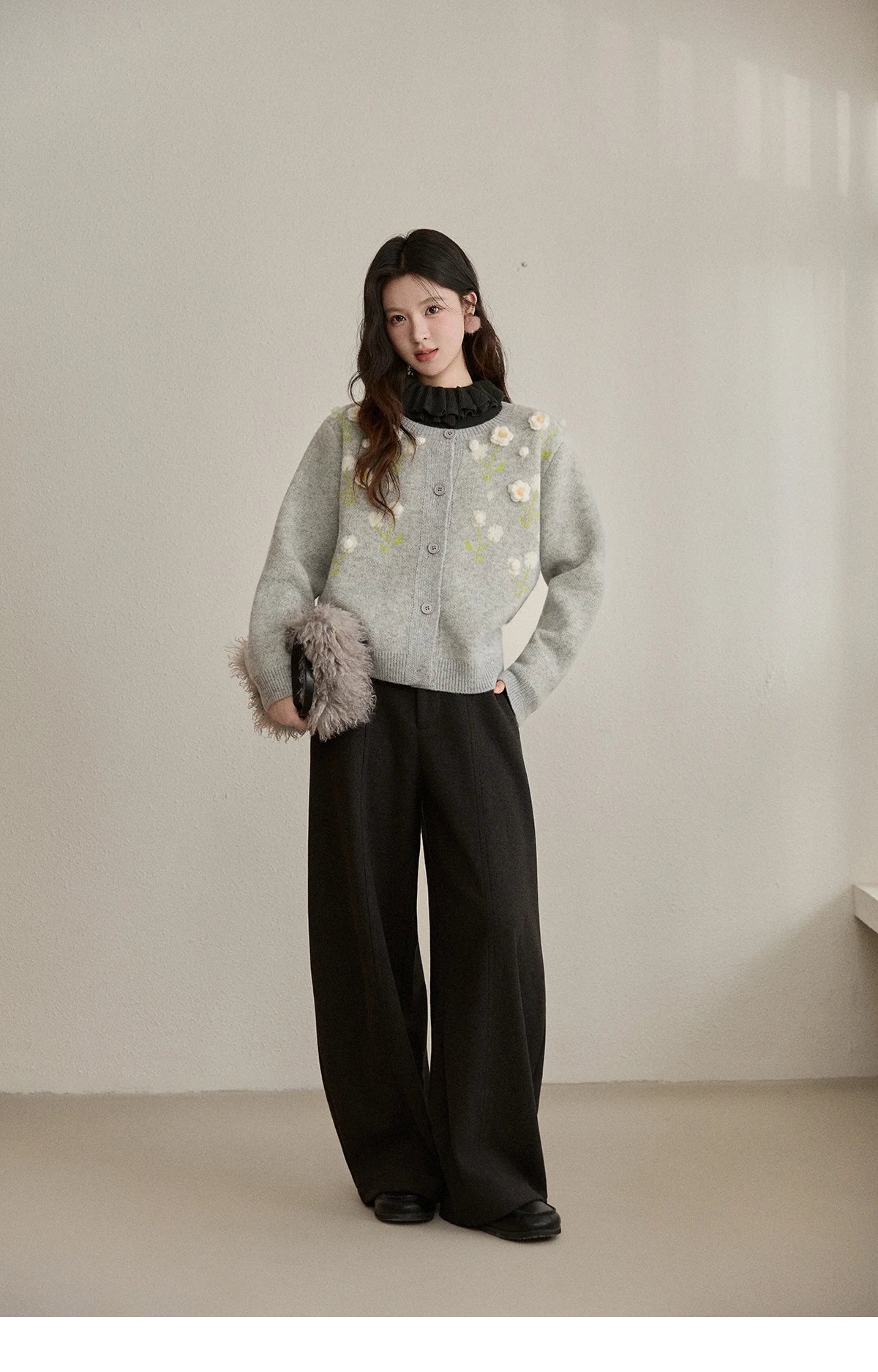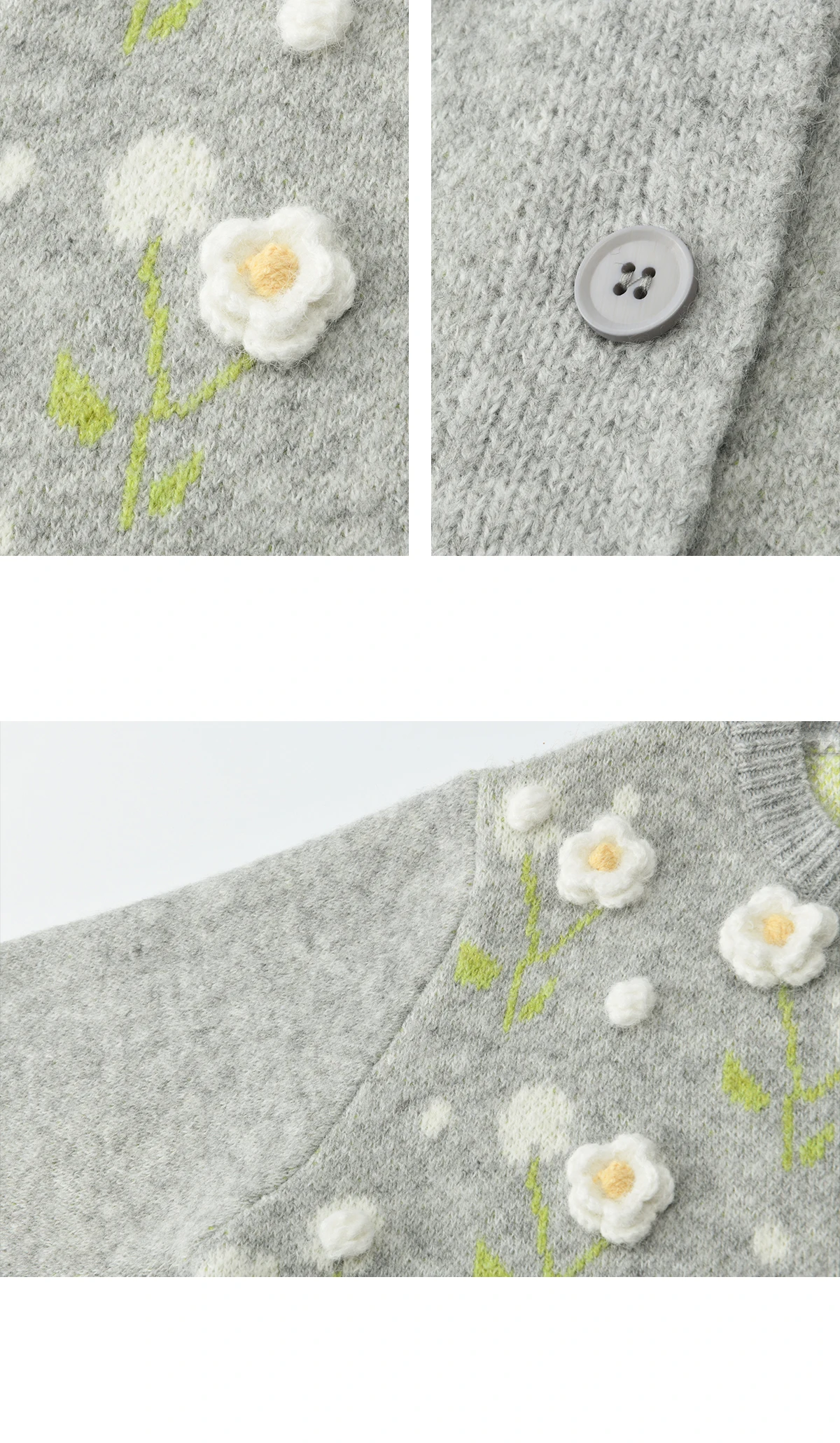 MISHOW Women's Gray Knitted Cardigan 2025 Winter Flower Embroidery Round Collar Single-breasted Warm Slim Sweaters MXE91Z2836