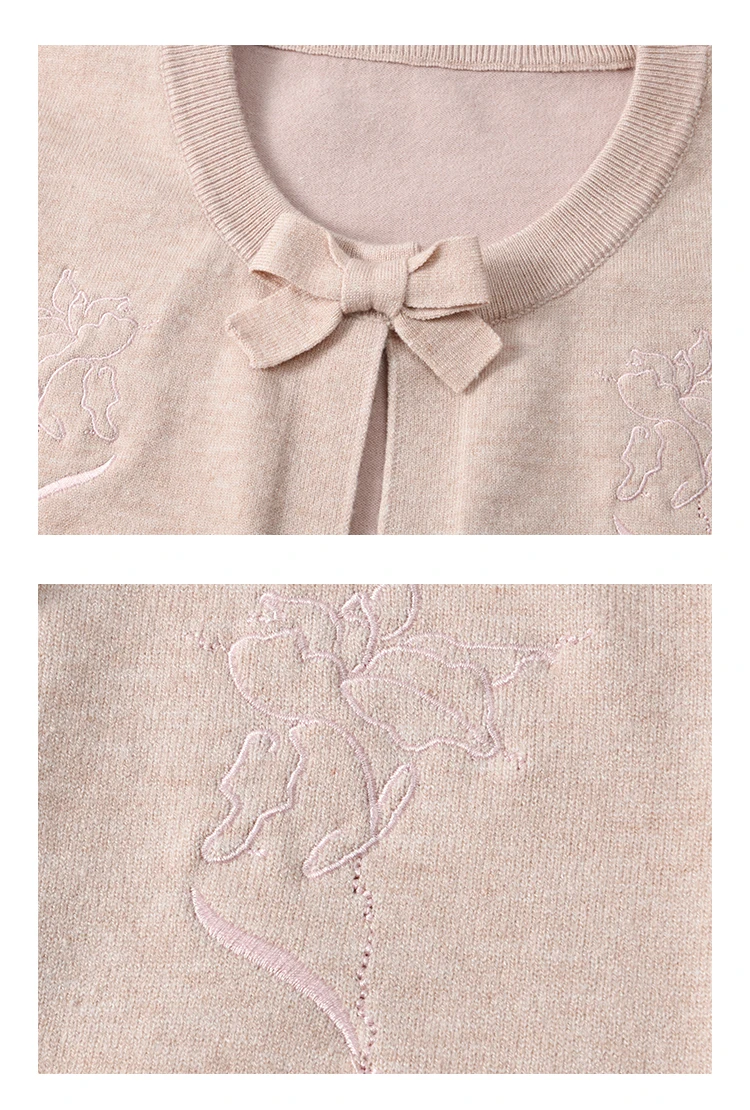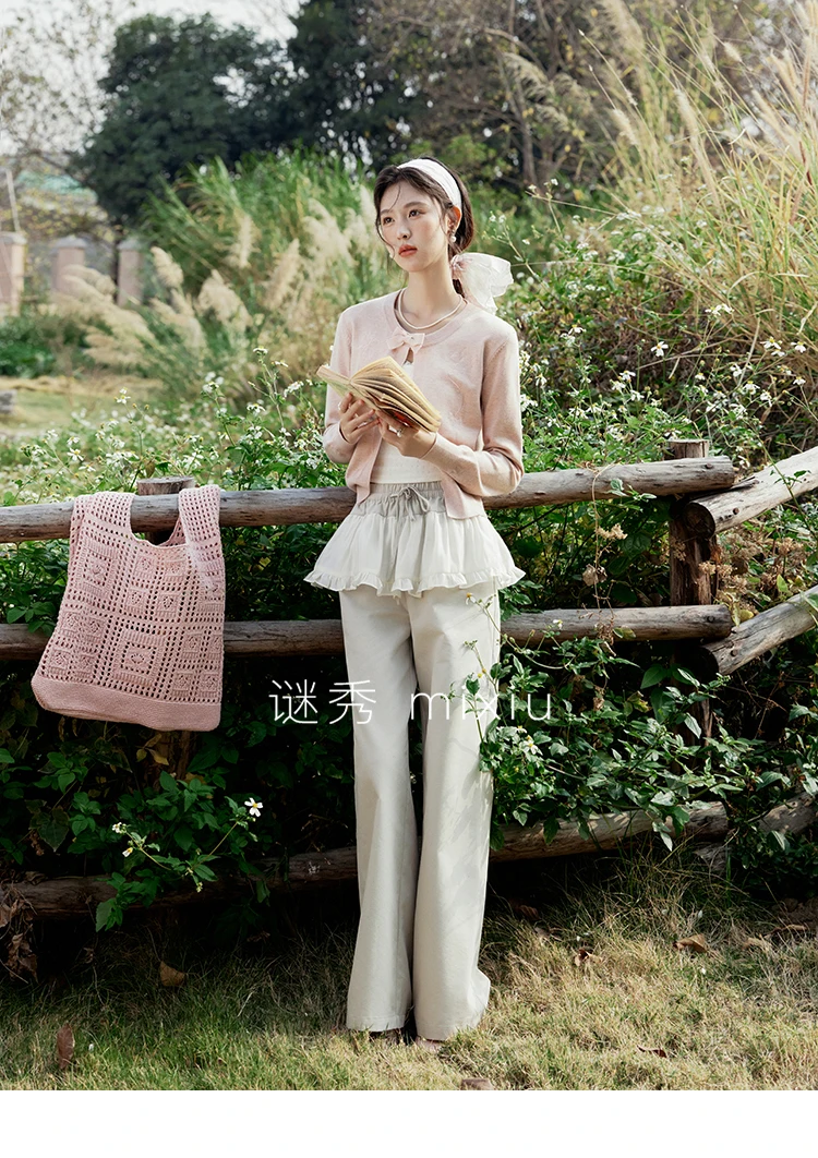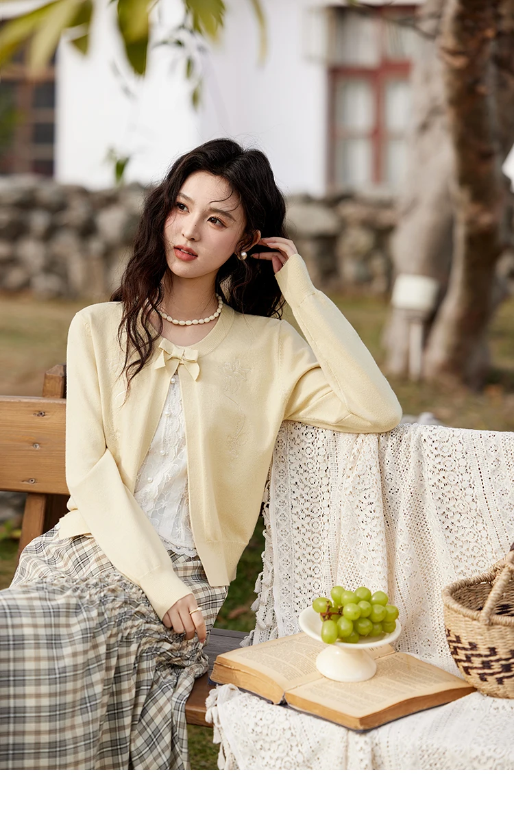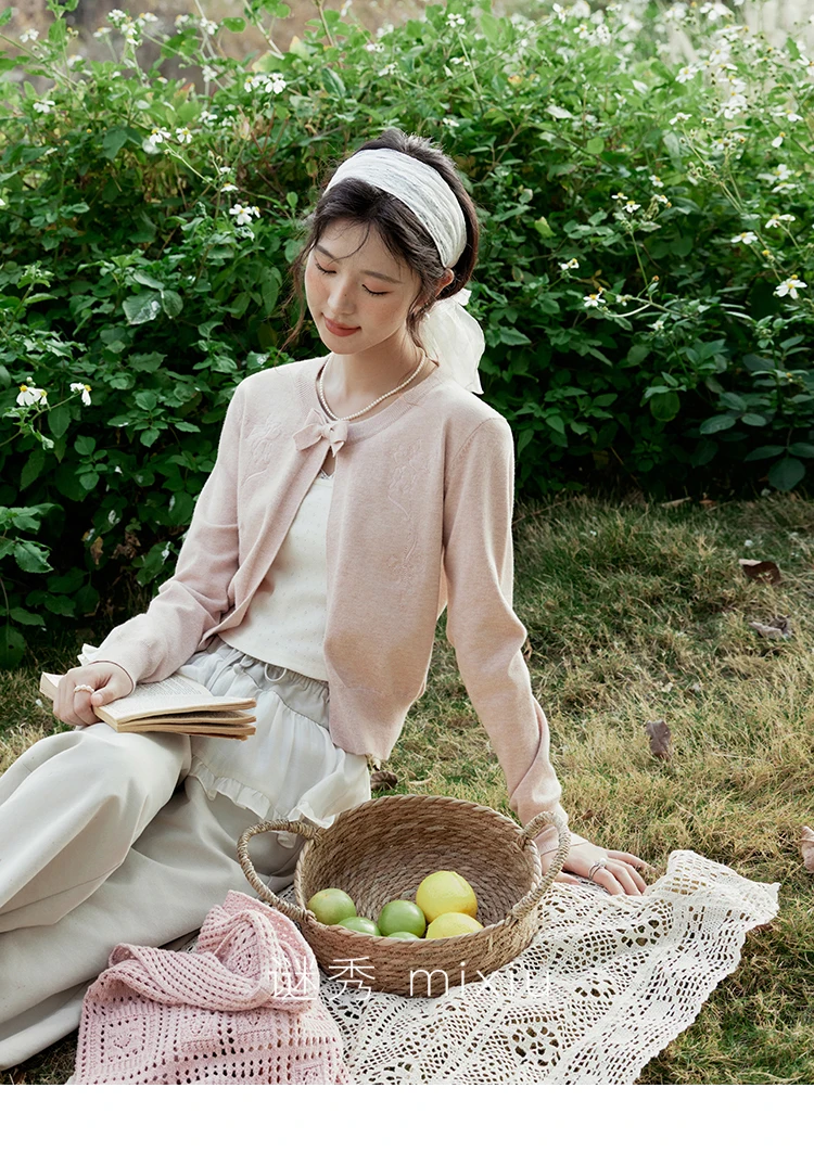 MISHOW Women's Iris Embroidery Round Neck Cardigan 2025 Spring Loose Knitted Thin Bow Design(Not Include Lace Vest)MXE13Z1142