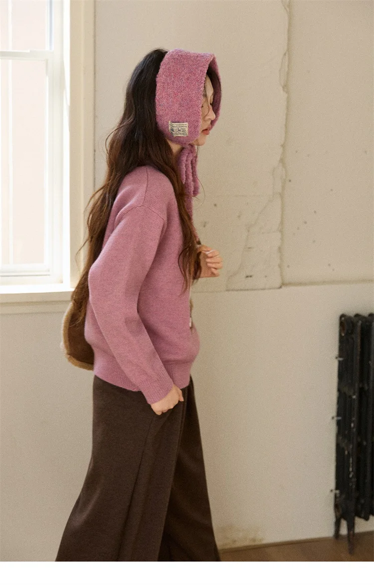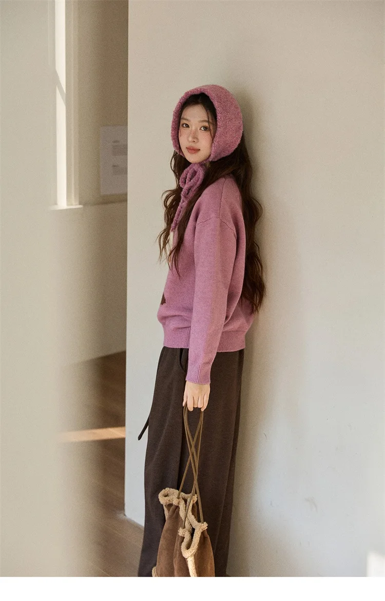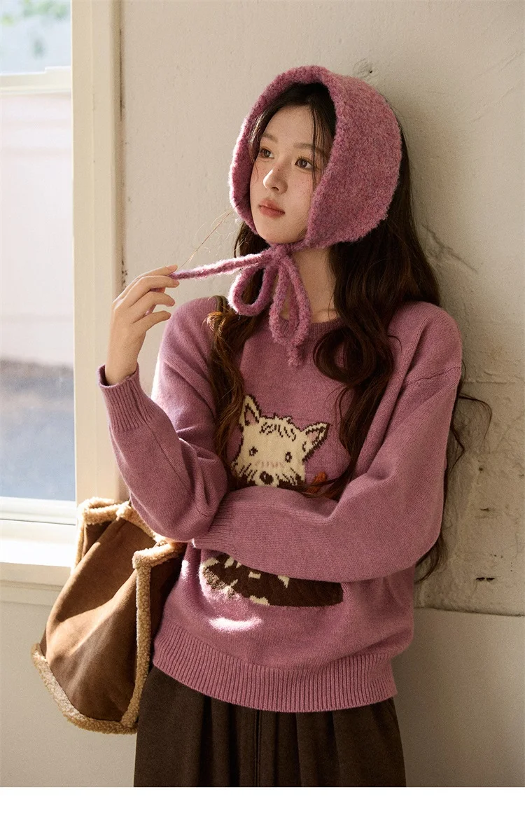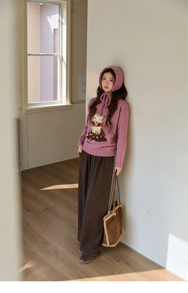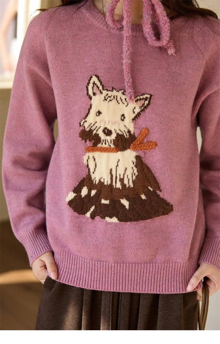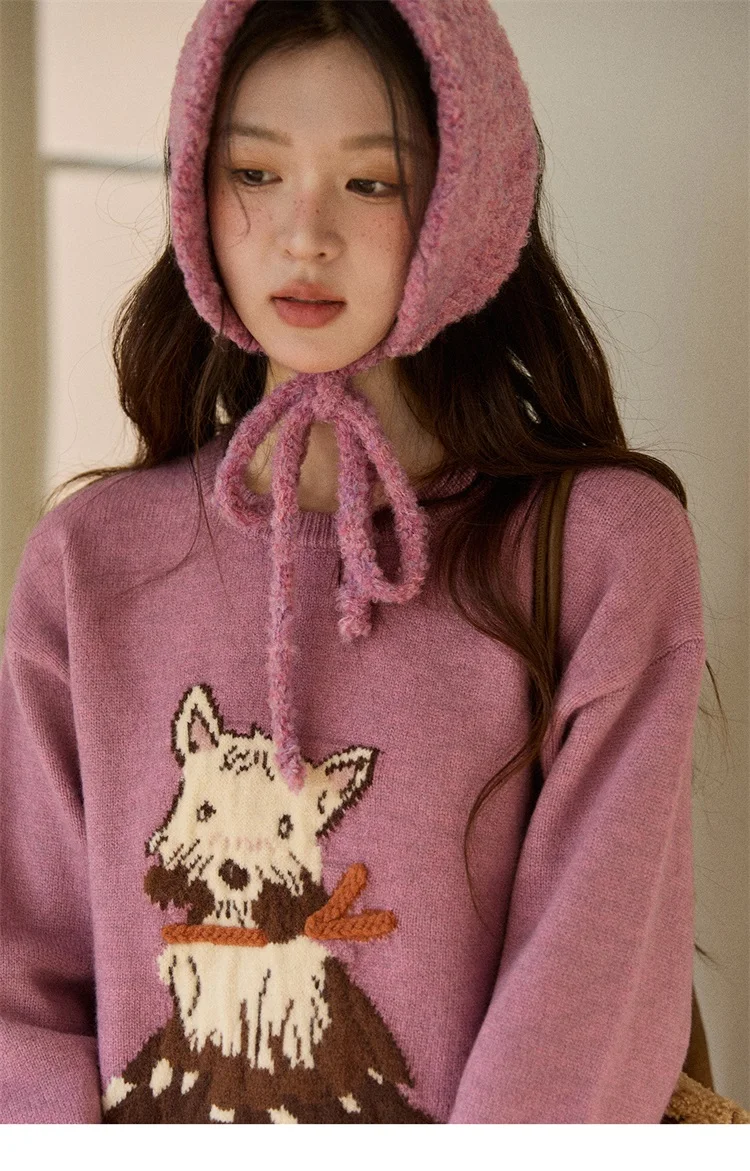 MISHOW Women's Jacquard Dog Thick Sweater Winter Purple Arctic Fleece Loose Soft Knitted Tops (Headband Not Included) MXE88Z2599