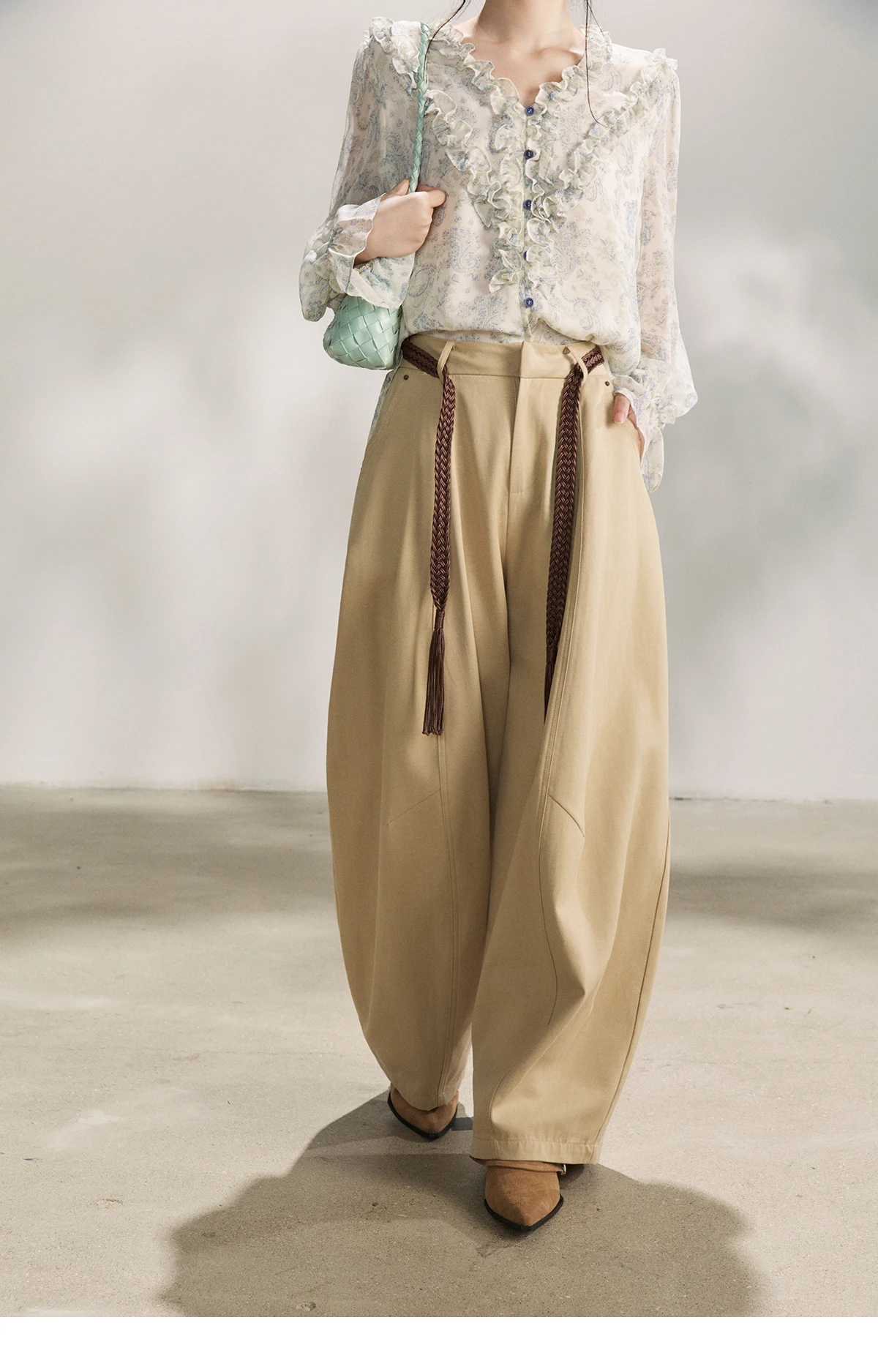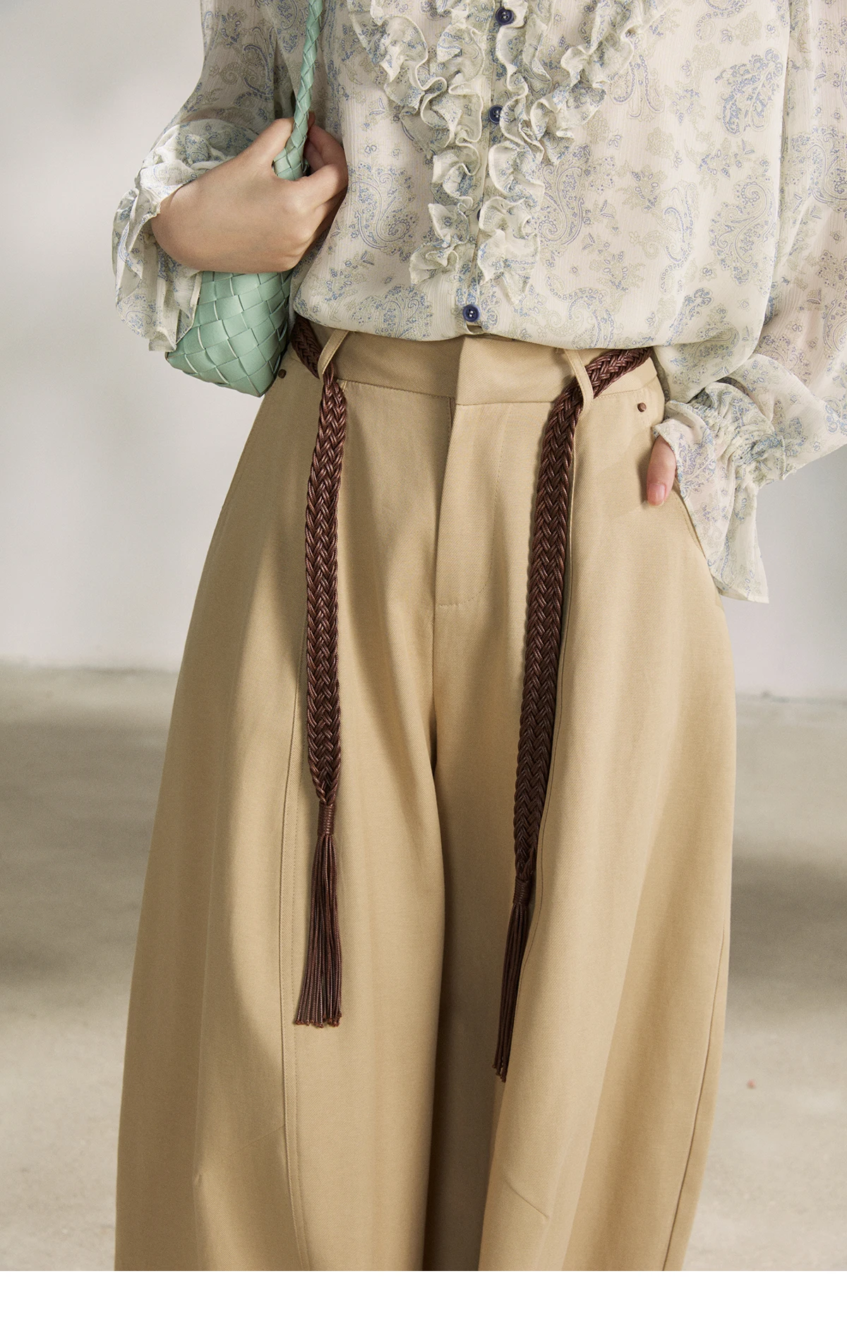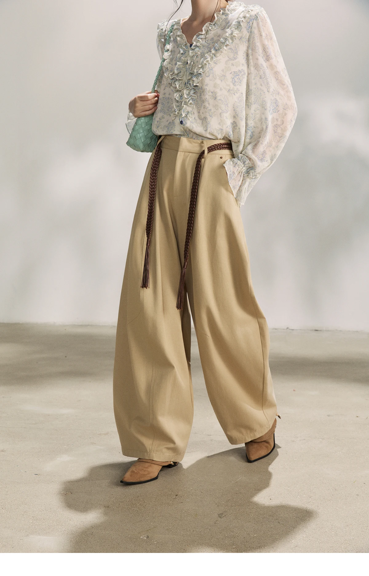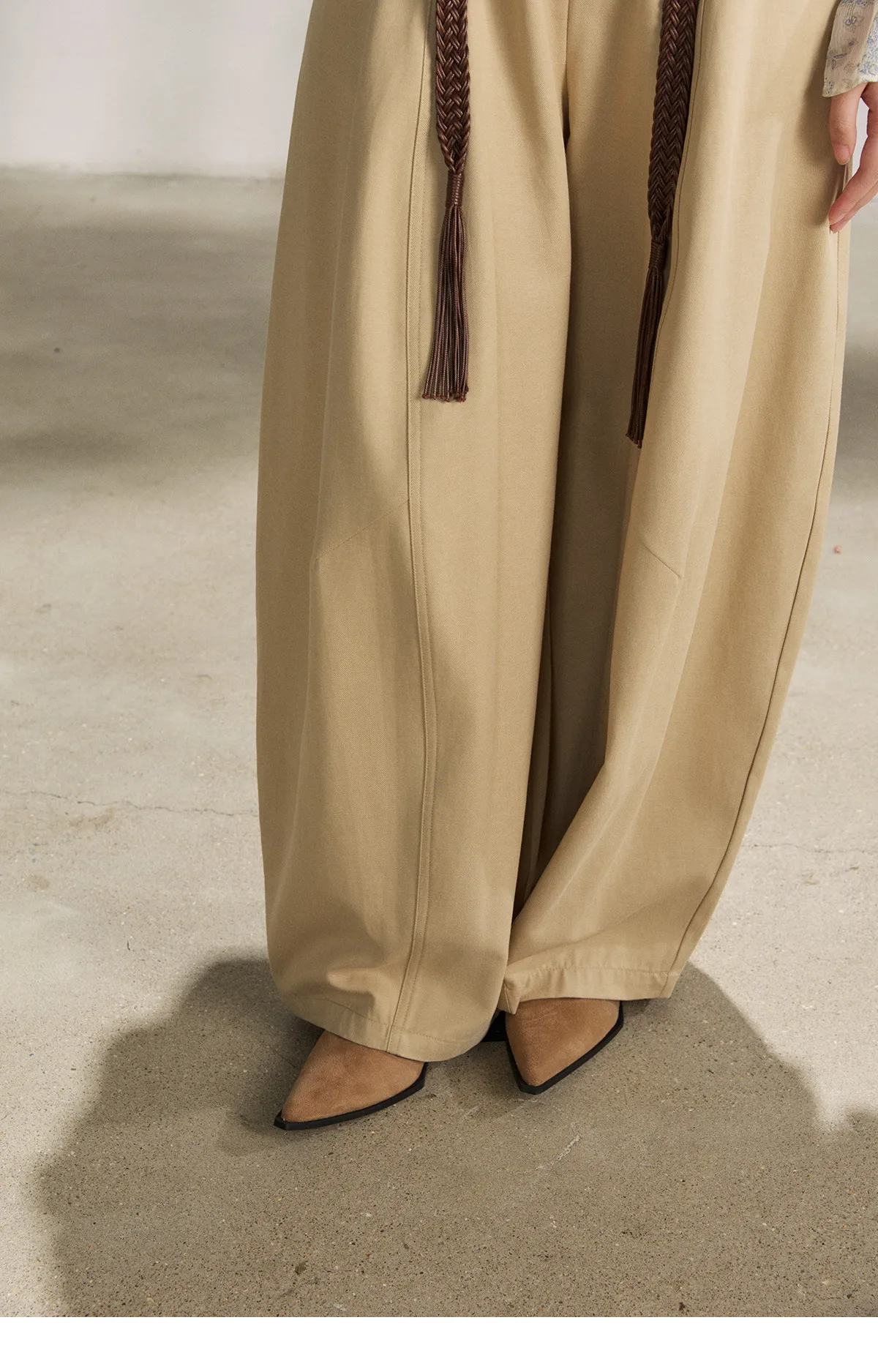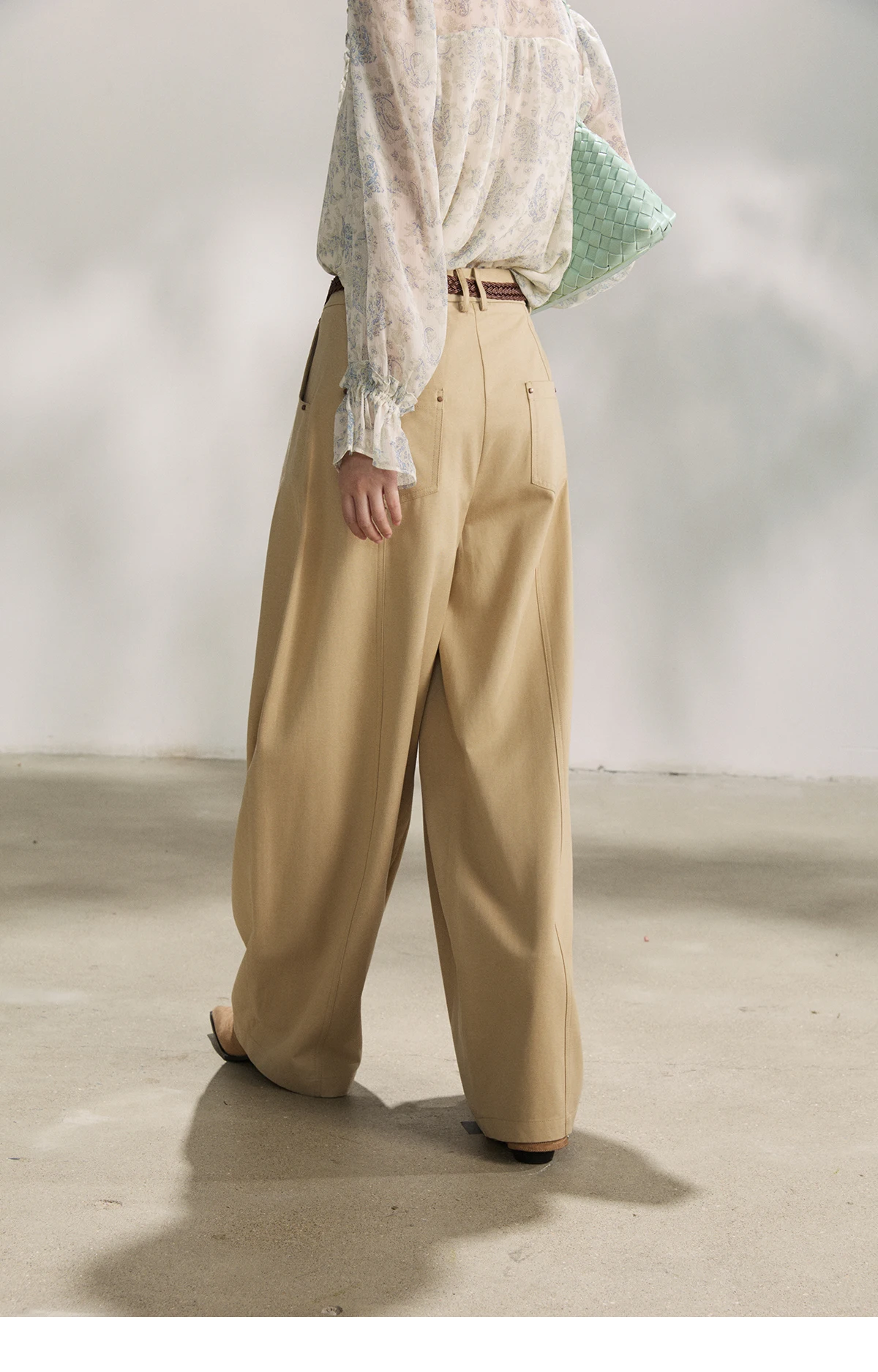 MISHOW Women's Khaki Wide Leg Pants 2026 Spring High Waist Belted Pants Rear Fake Pocket Design Casual Loose Trousers MXF13K1237