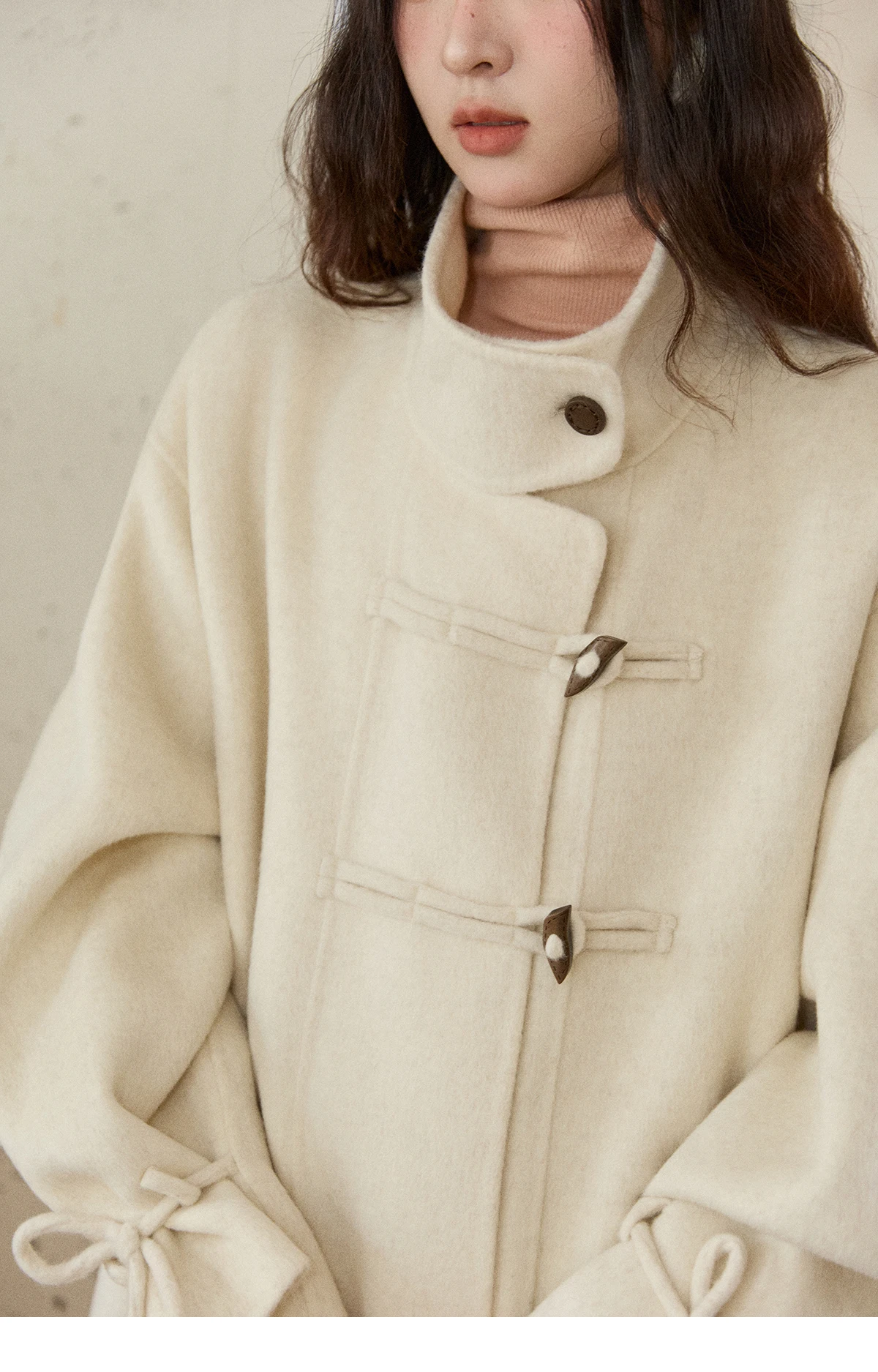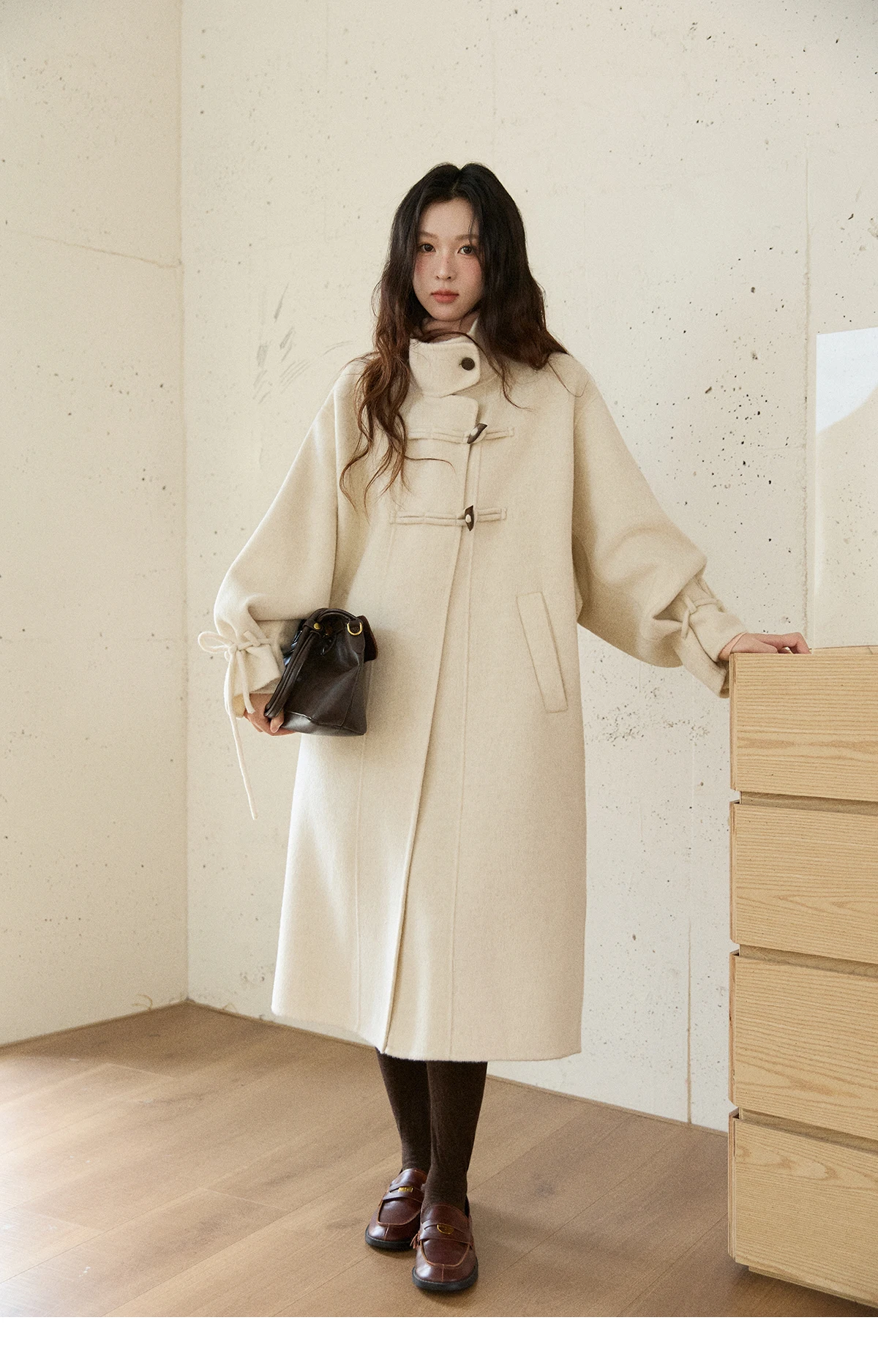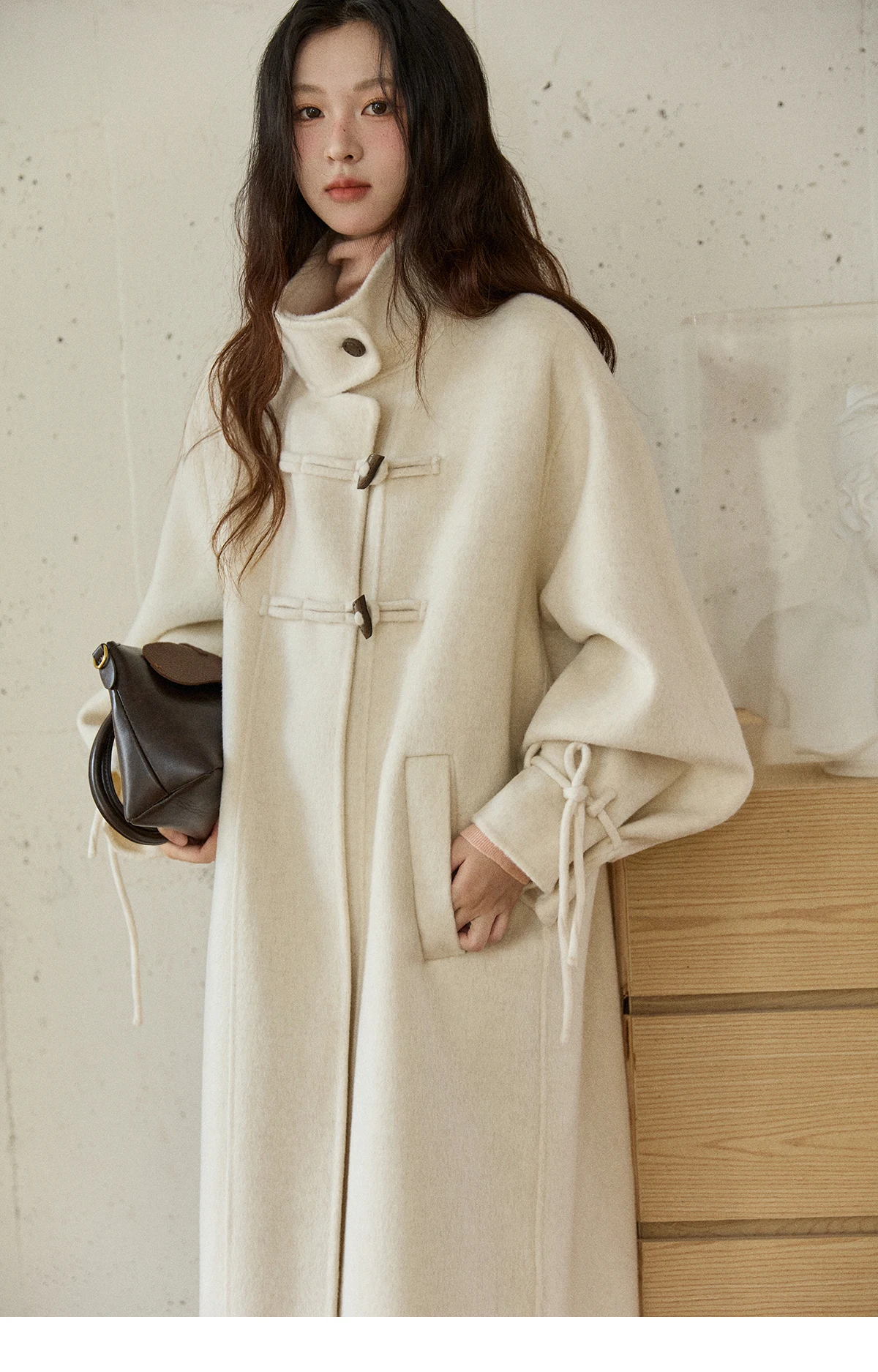 MISHOW Women's Long Coats 2025 Winter Yellow Double-faced 100% Wool Coat Windproof Lantern Sleeve Turtleneck Coat MXE51W0902