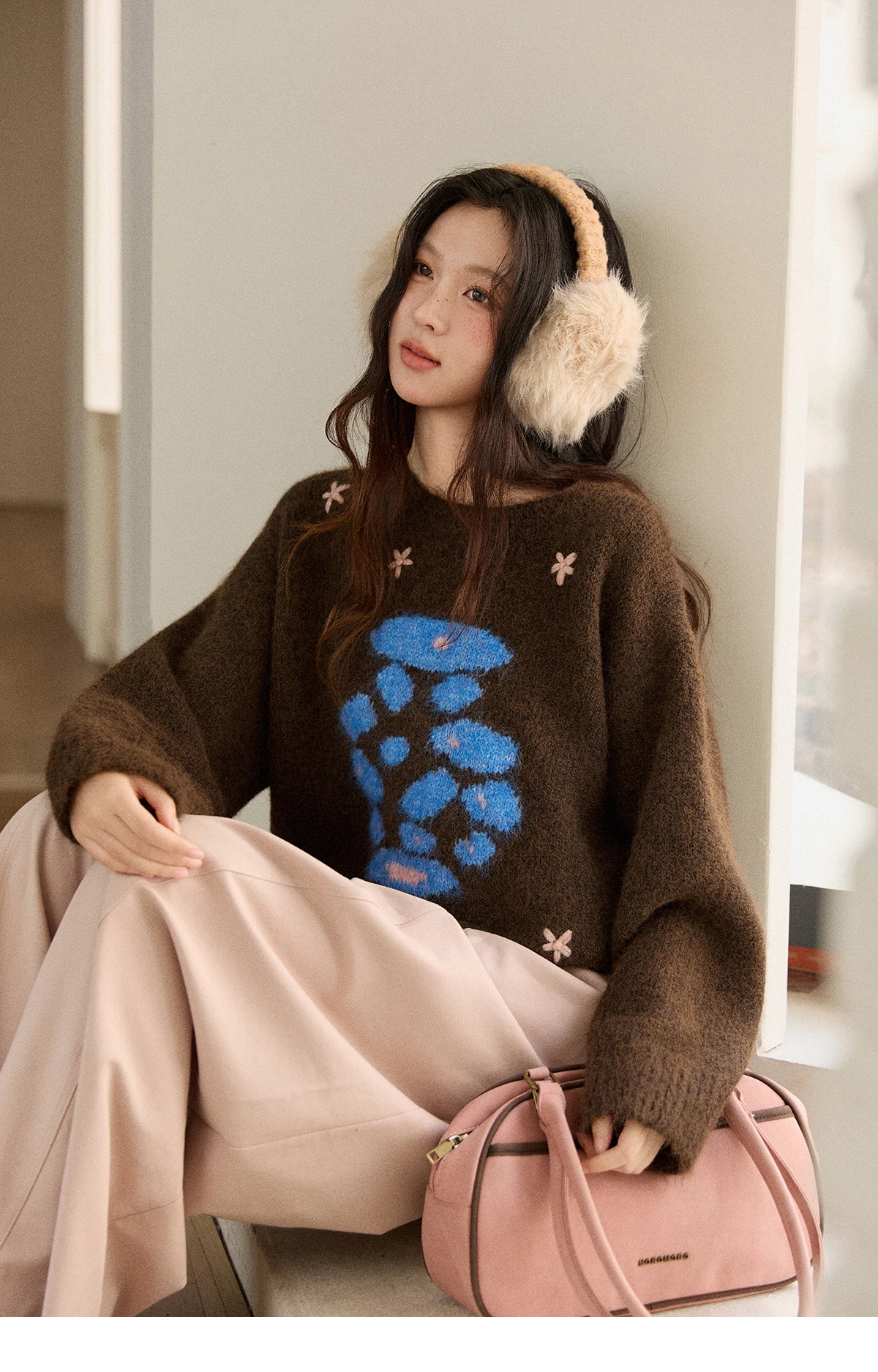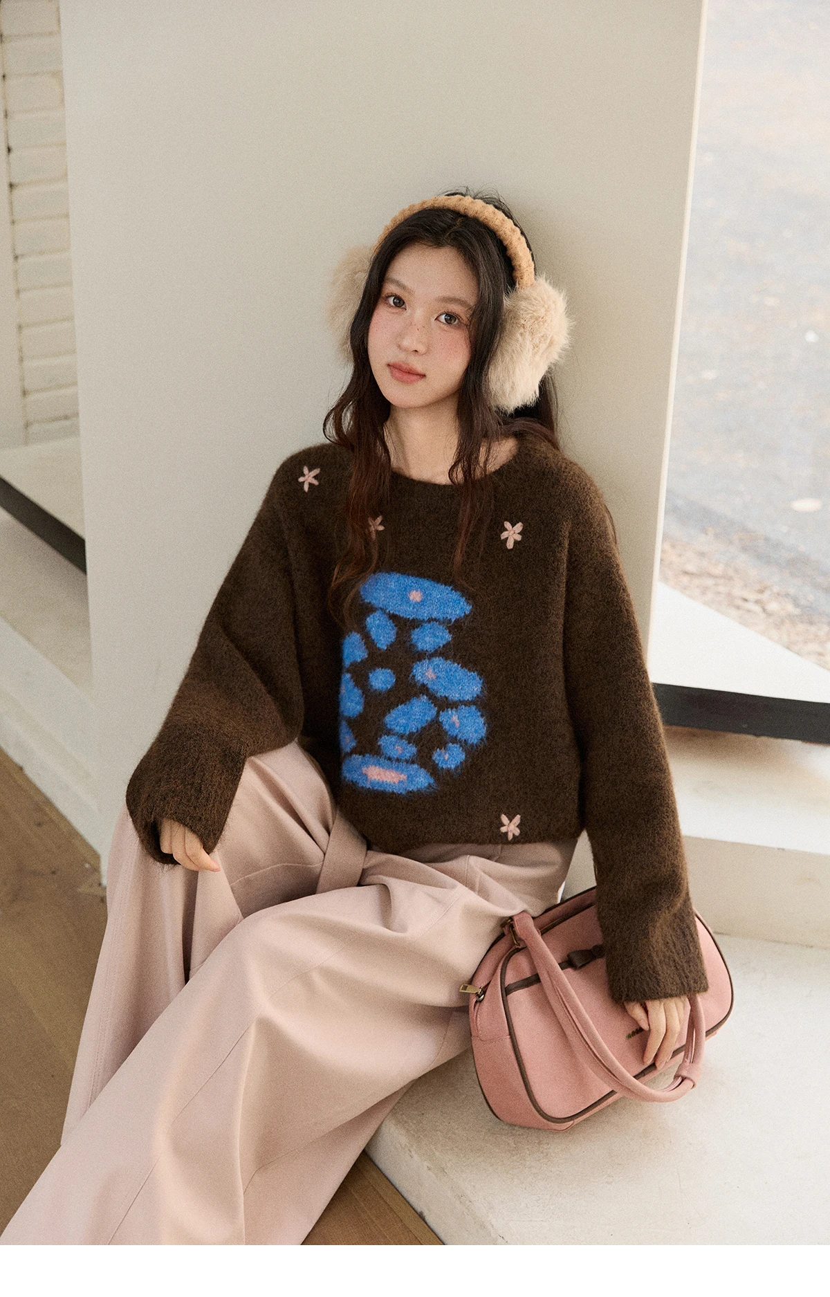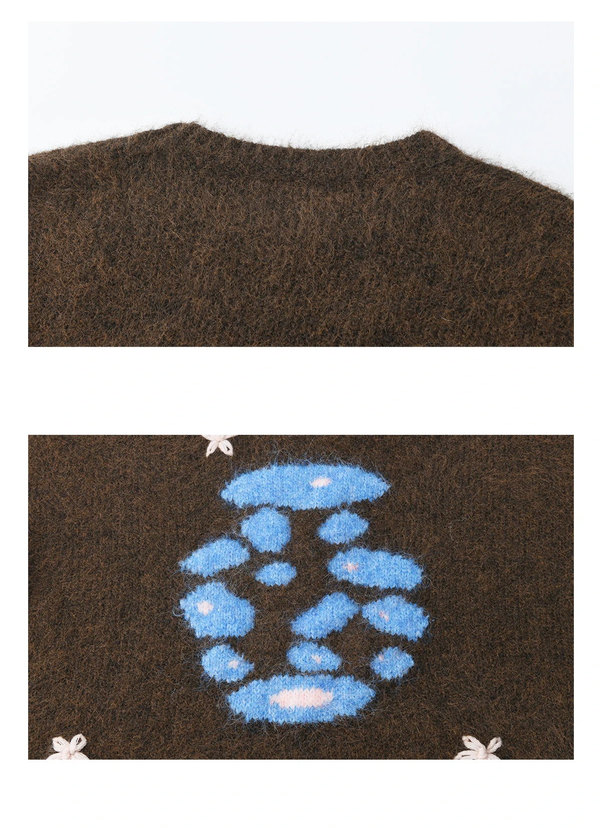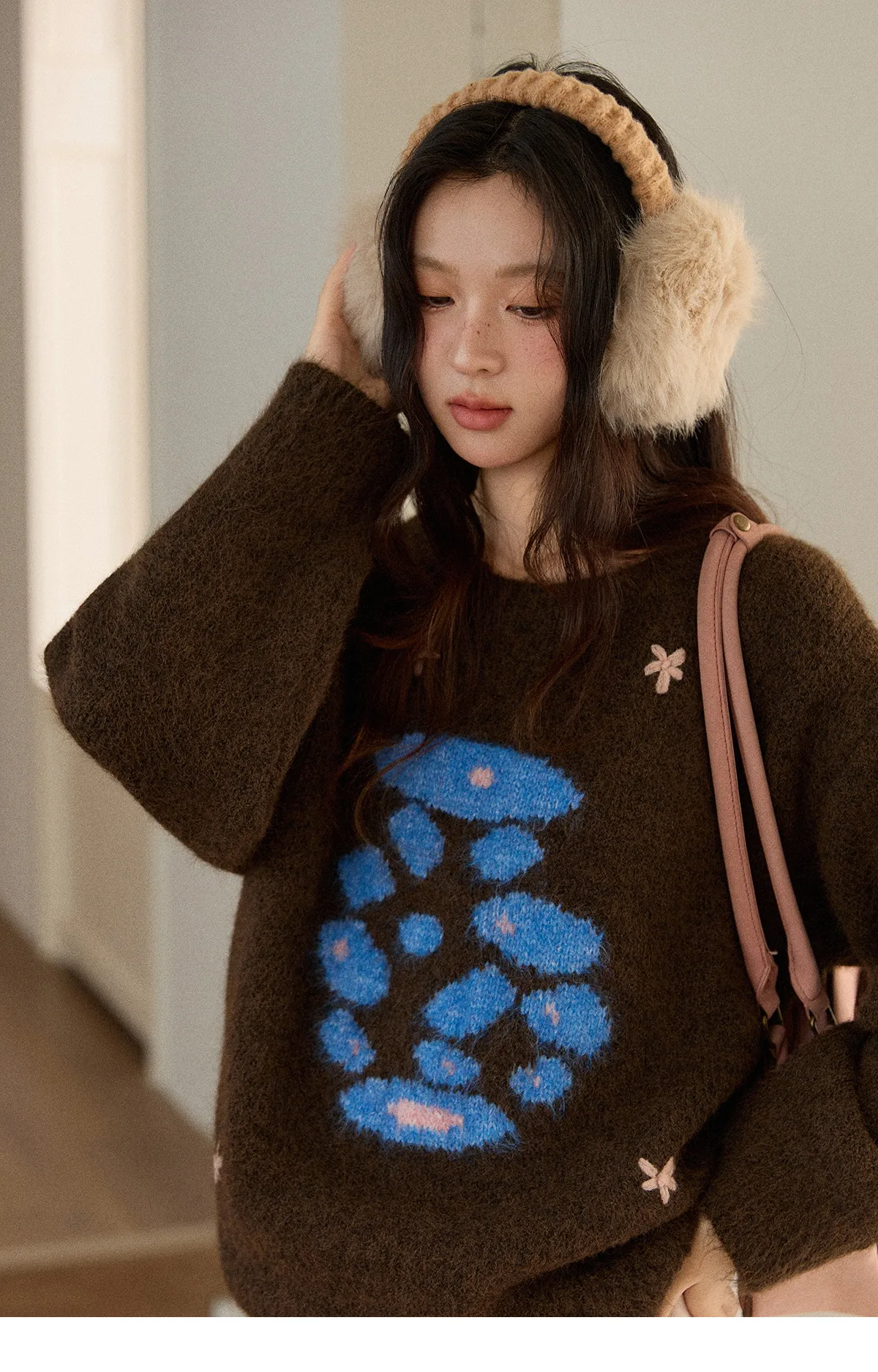 MISHOW Women's Lucky Bottle Jacquard Wool Warm Sweater 2025 Winter 3D Floral Color Block Retro Thickened Knitwear MXE91Z2840