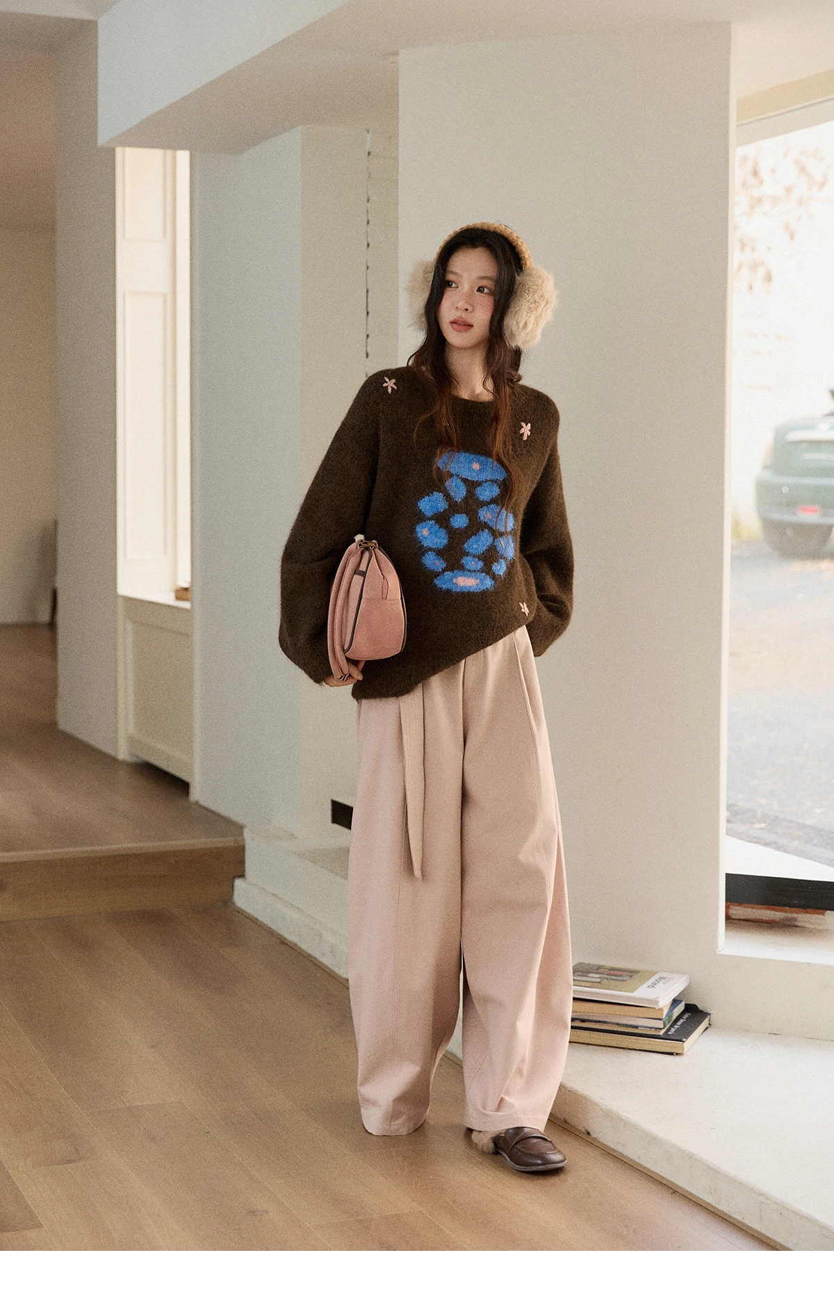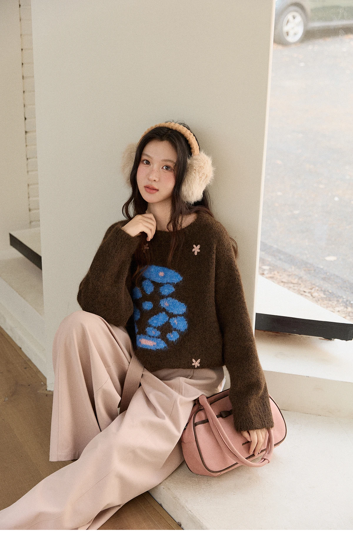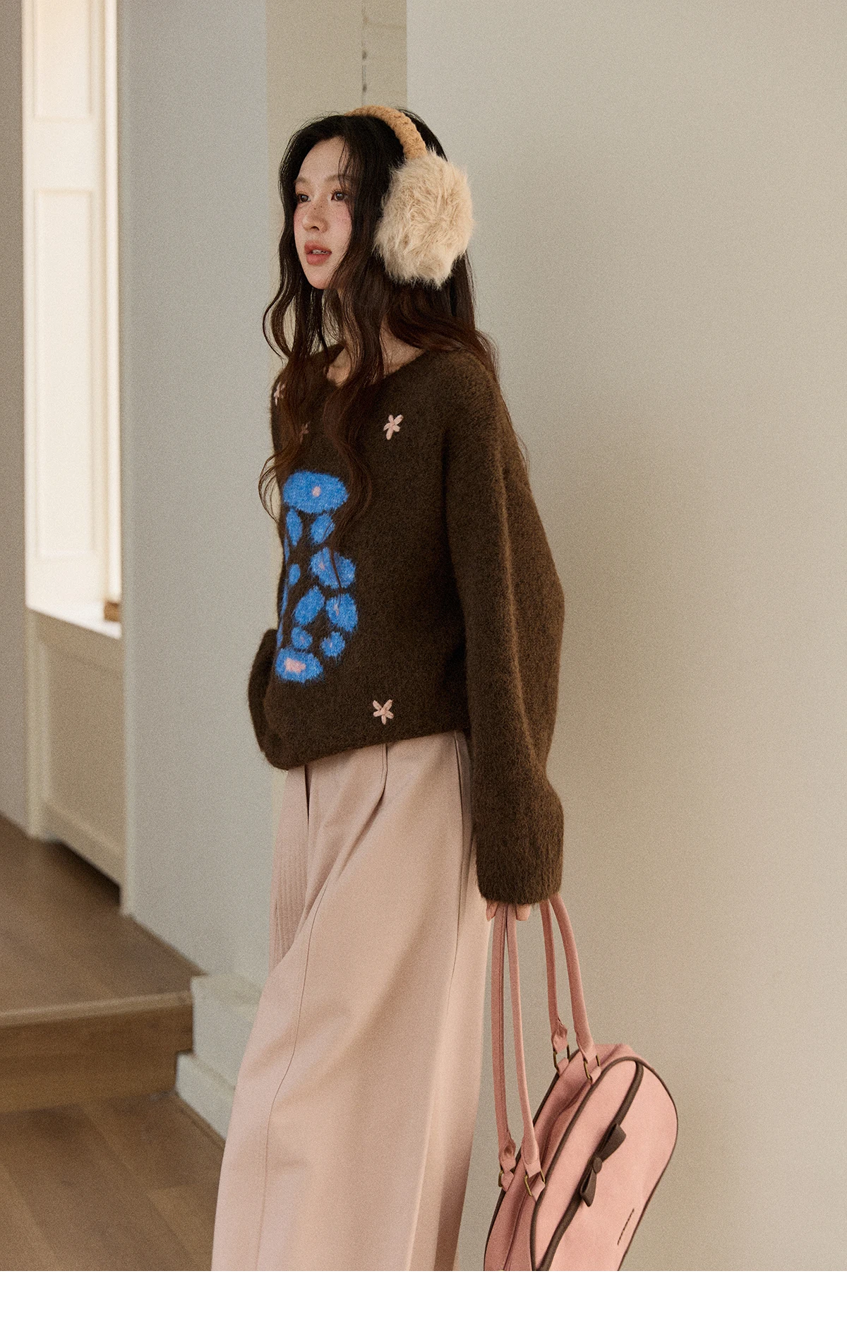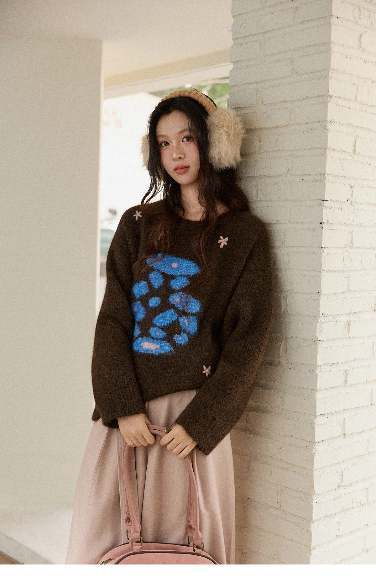 MISHOW Women's Lucky Bottle Jacquard Wool Warm Sweater 2025 Winter 3D Floral Color Block Retro Thickened Knitwear MXE91Z2840
