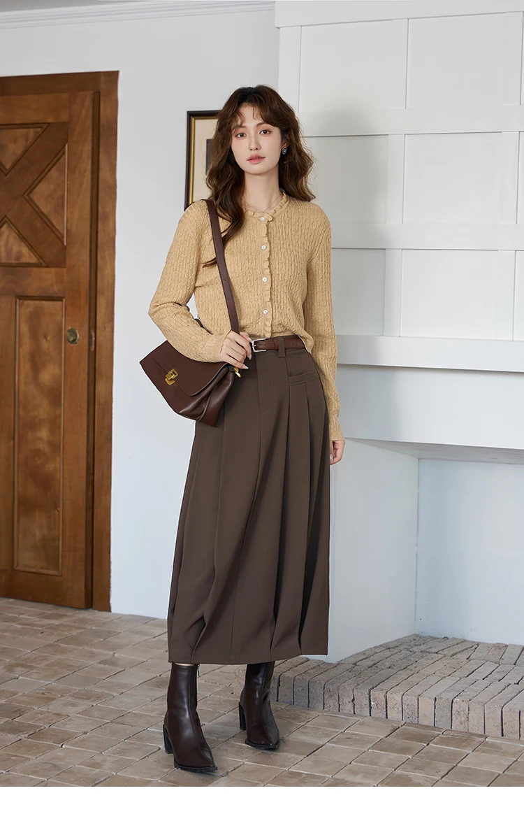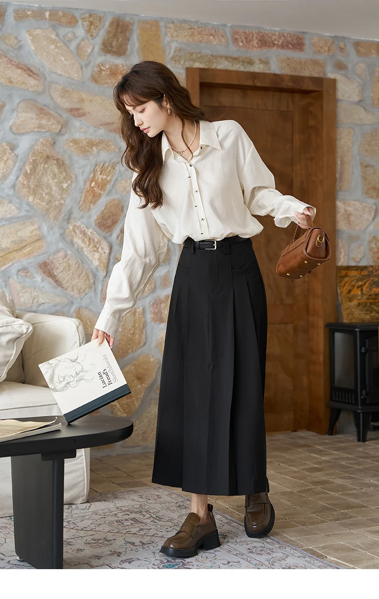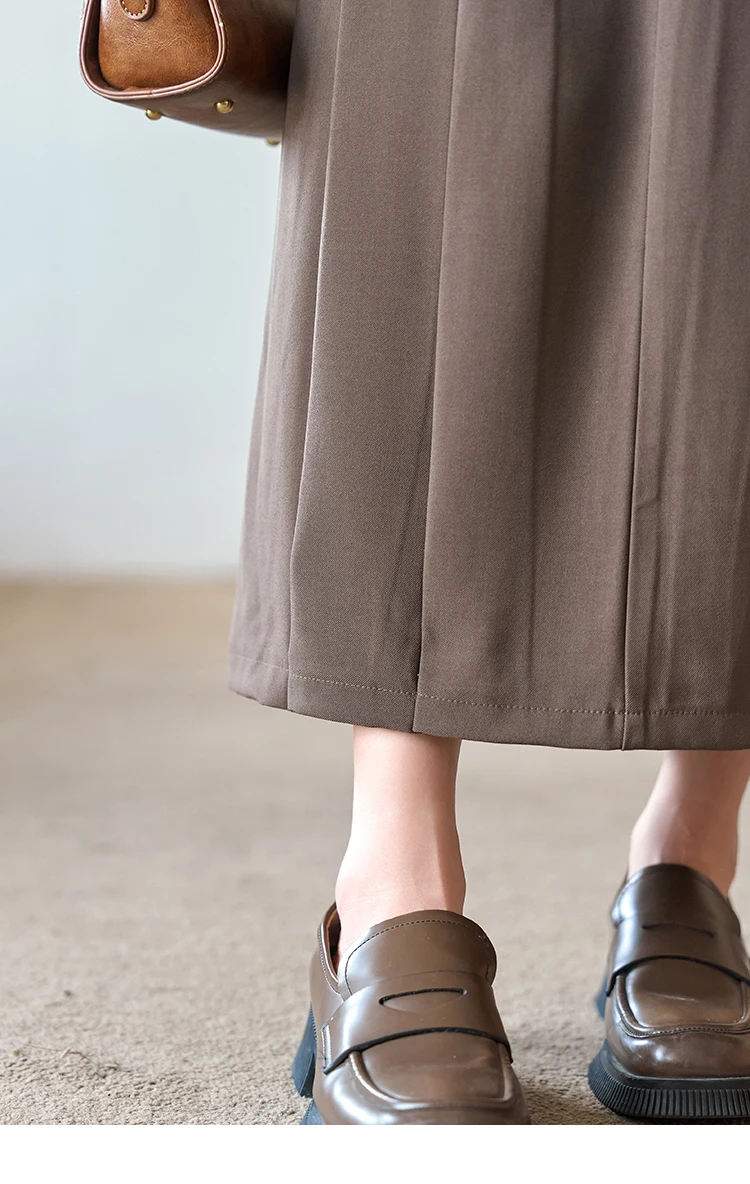 MISHOW Women's Midi Skirt 2023 Autumn Academy Pleated Commuter A-LINE Pockets Solid Split Back Hem Mid-Calf Skirts MXC42B0118