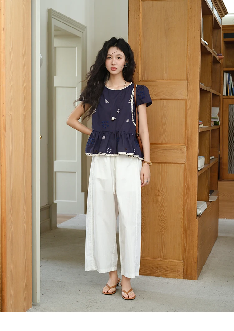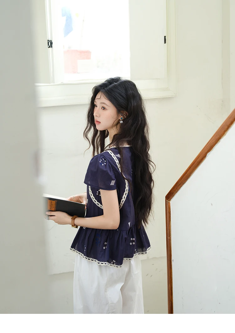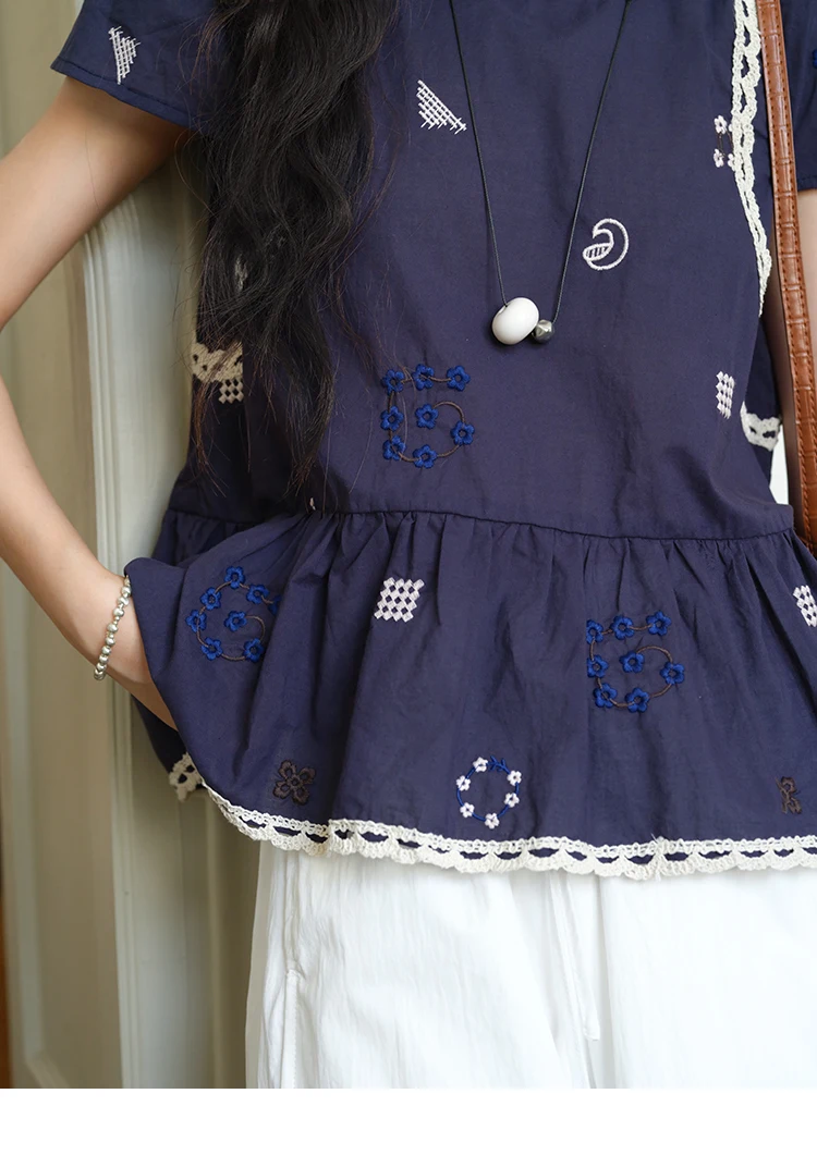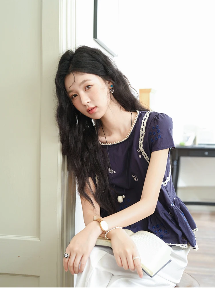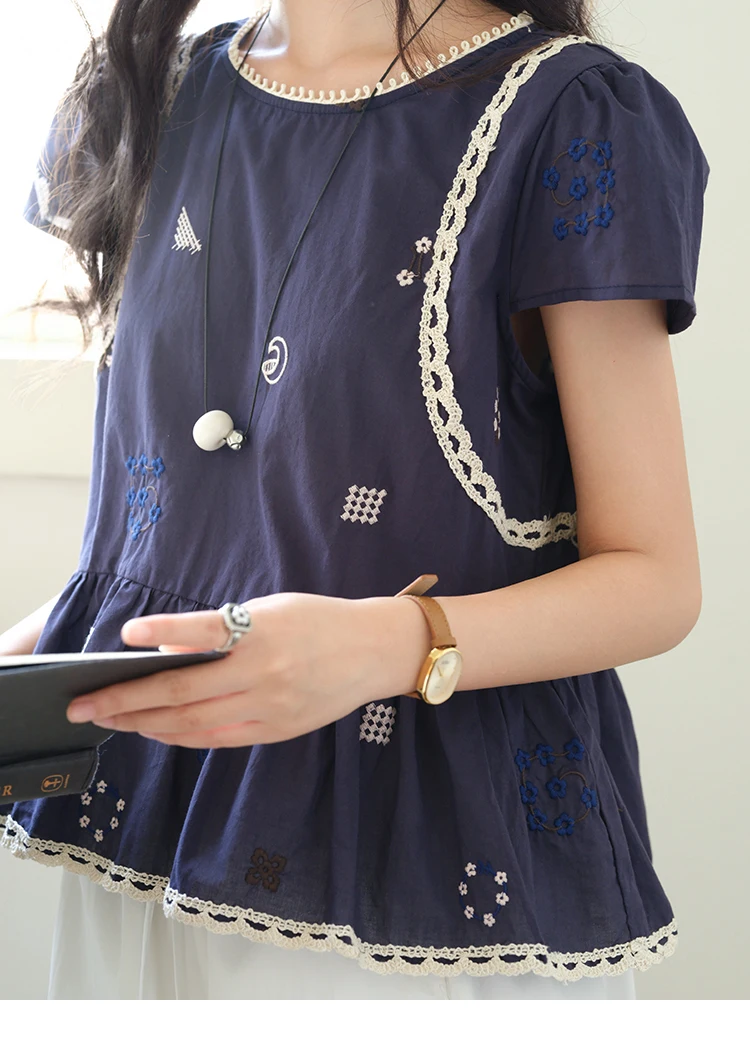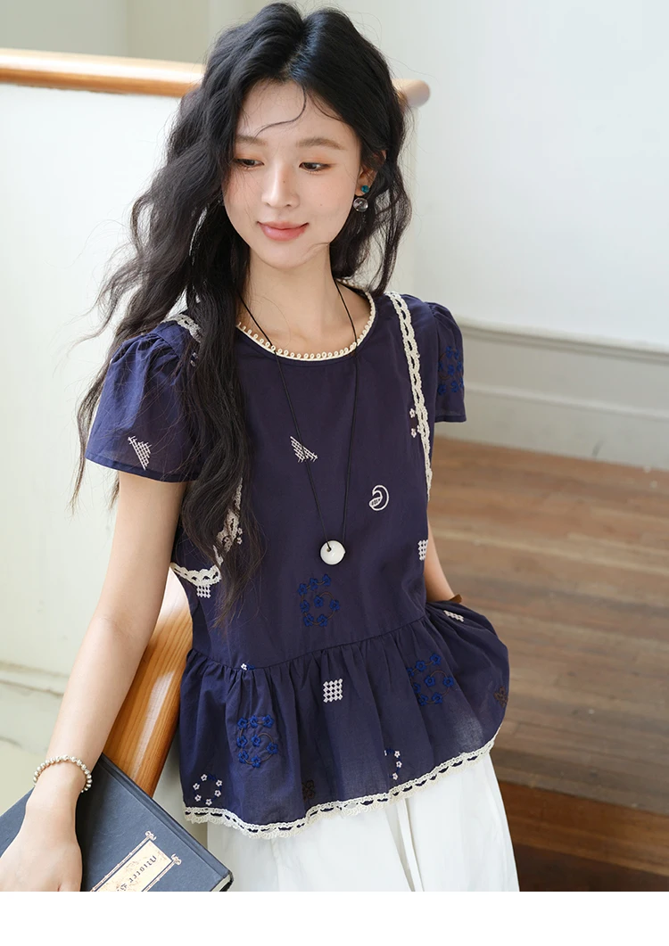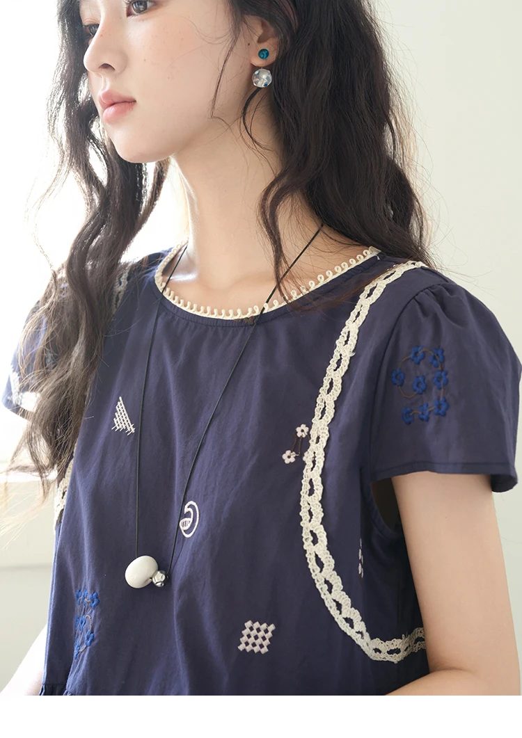 MISHOW Women's O-Neck Spliced Lace Blouse 2025 Summer New Fashion Embroidery Flower Casual Loose Top Ladies Clothing MXE39X1965