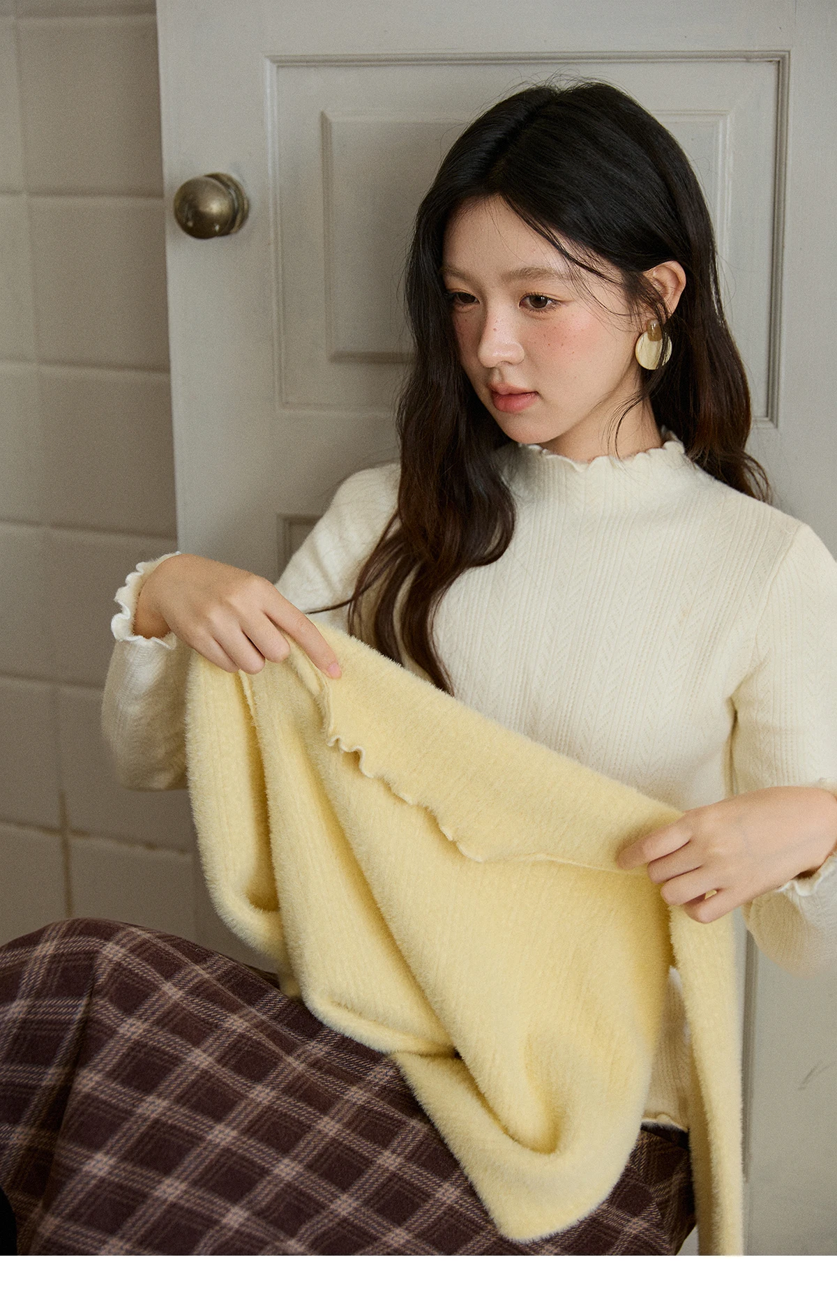 MISHOW Women's One Piece Velvet Thickened Bottom Tops 2025 Winter Versatile Black Fungus Edge Collar Knitted Tops MXE88Z2597