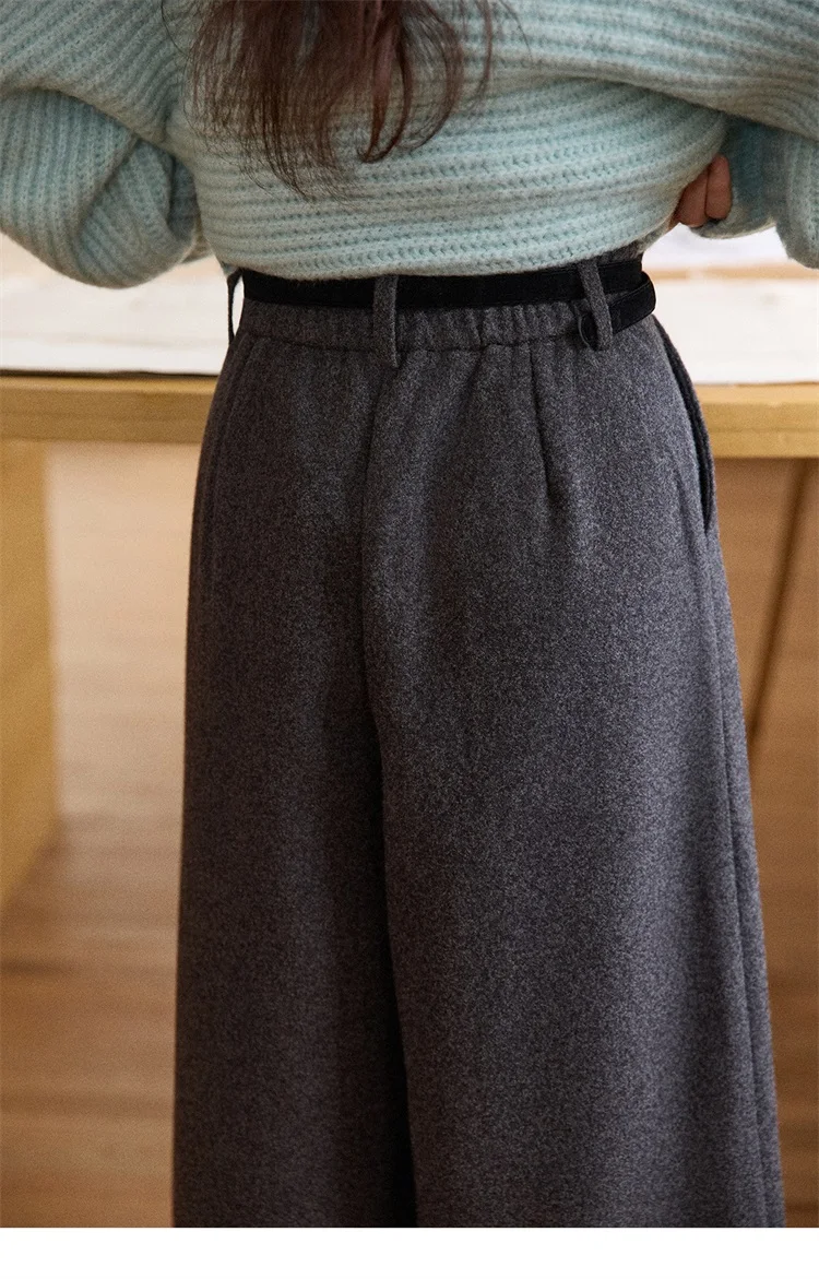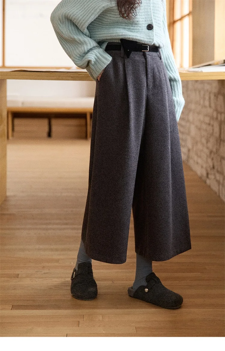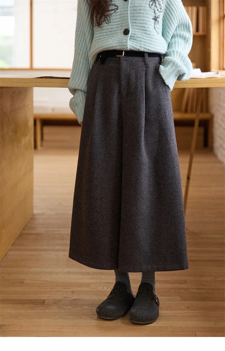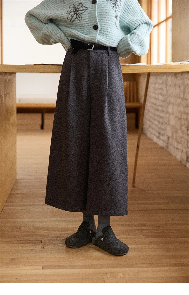 MISHOW Women's Pants 2025 Fashion Gray Wool Wide-leg Pants High-waisted Cropped Retro Style Commuting Pants Warm MXE90K1128