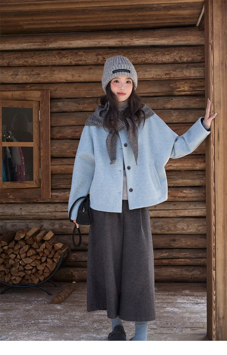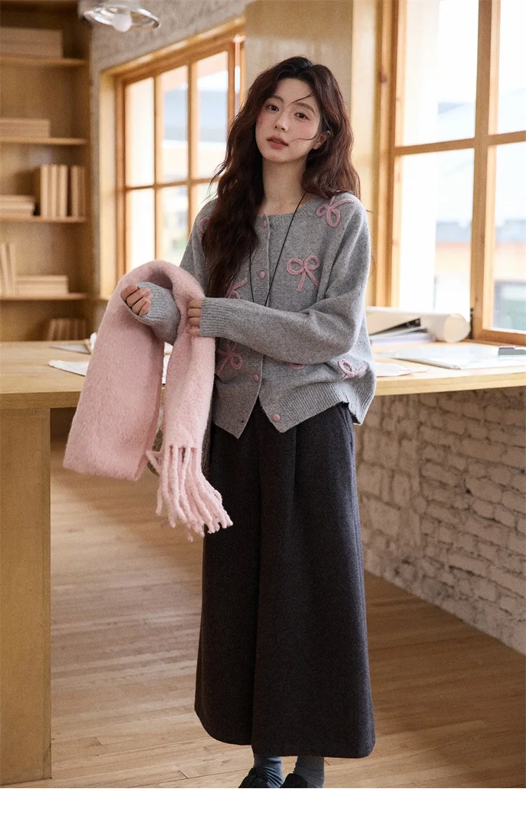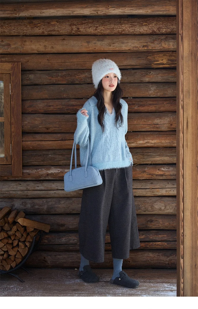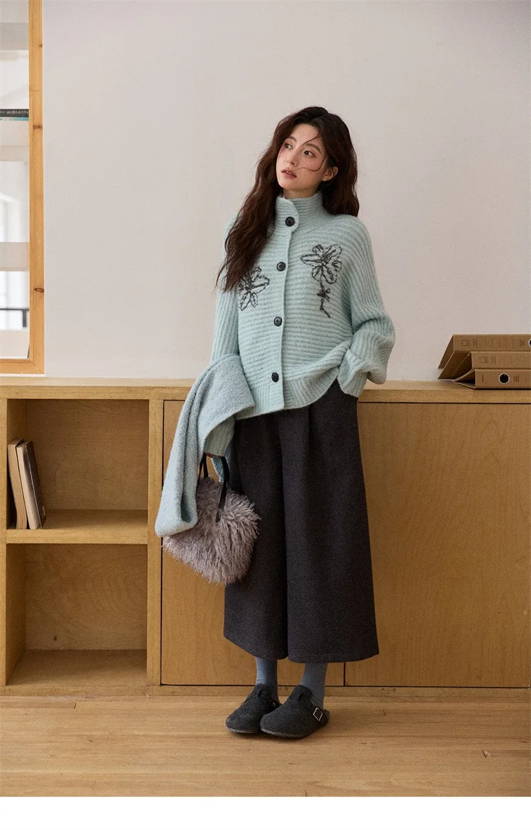MISHOW Women's Pants 2025 Fashion Gray Wool Wide-leg Pants High-waisted Cropped Retro Style Commuting Pants Warm MXE90K1128