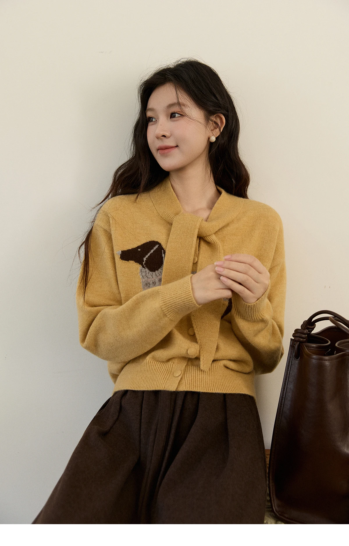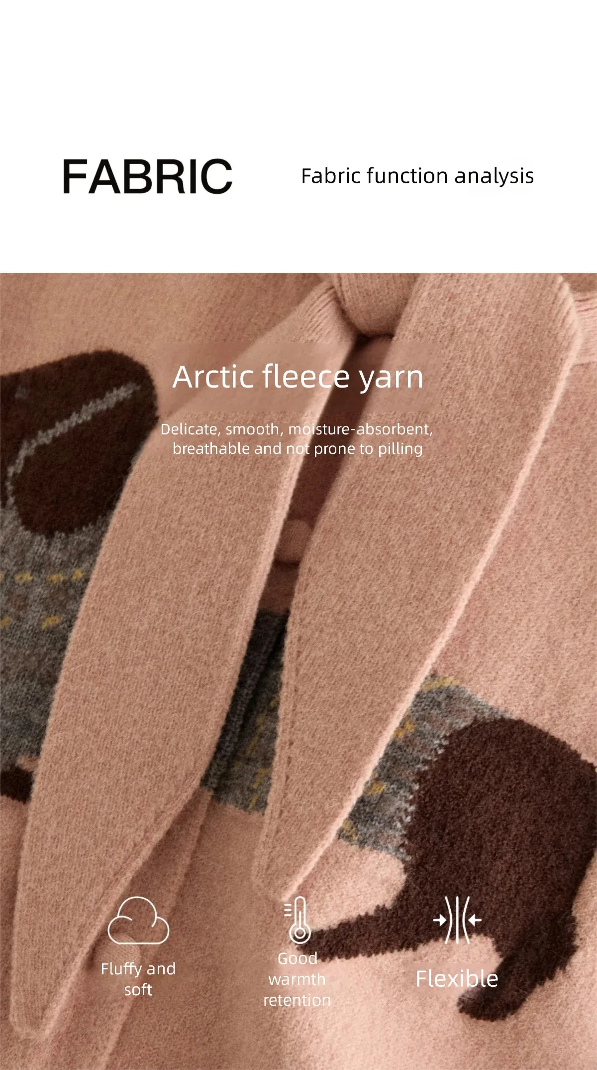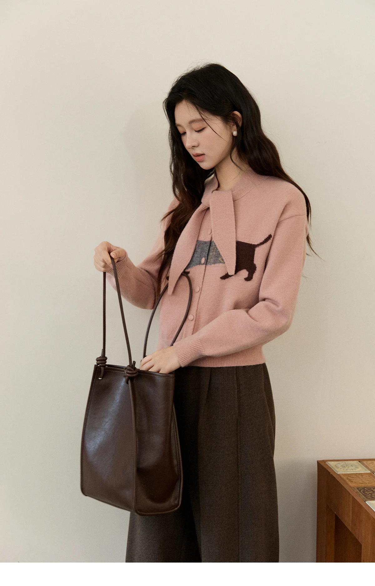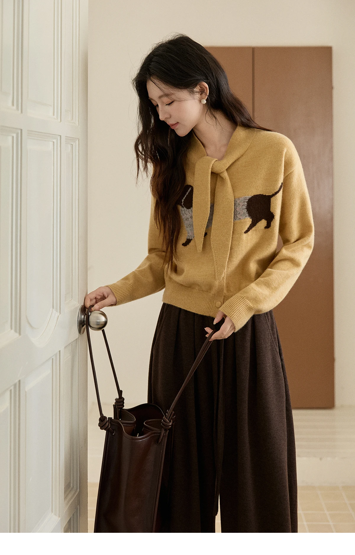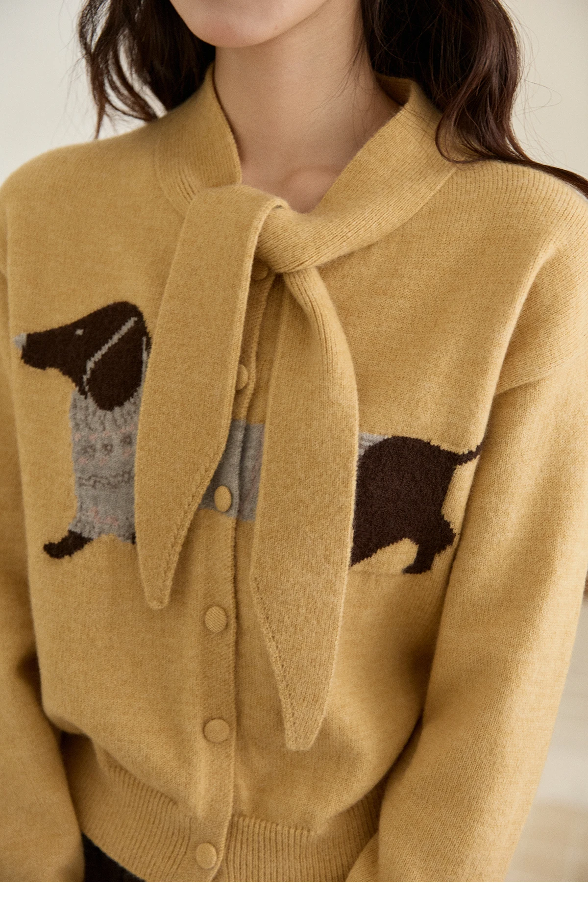 MISHOW Women's Pink Knit Cardigan 2025 Autumn Winter Dachshund Pattern Bow Collar Sweaters Single-breasted Loose Tops MXE94Z2997