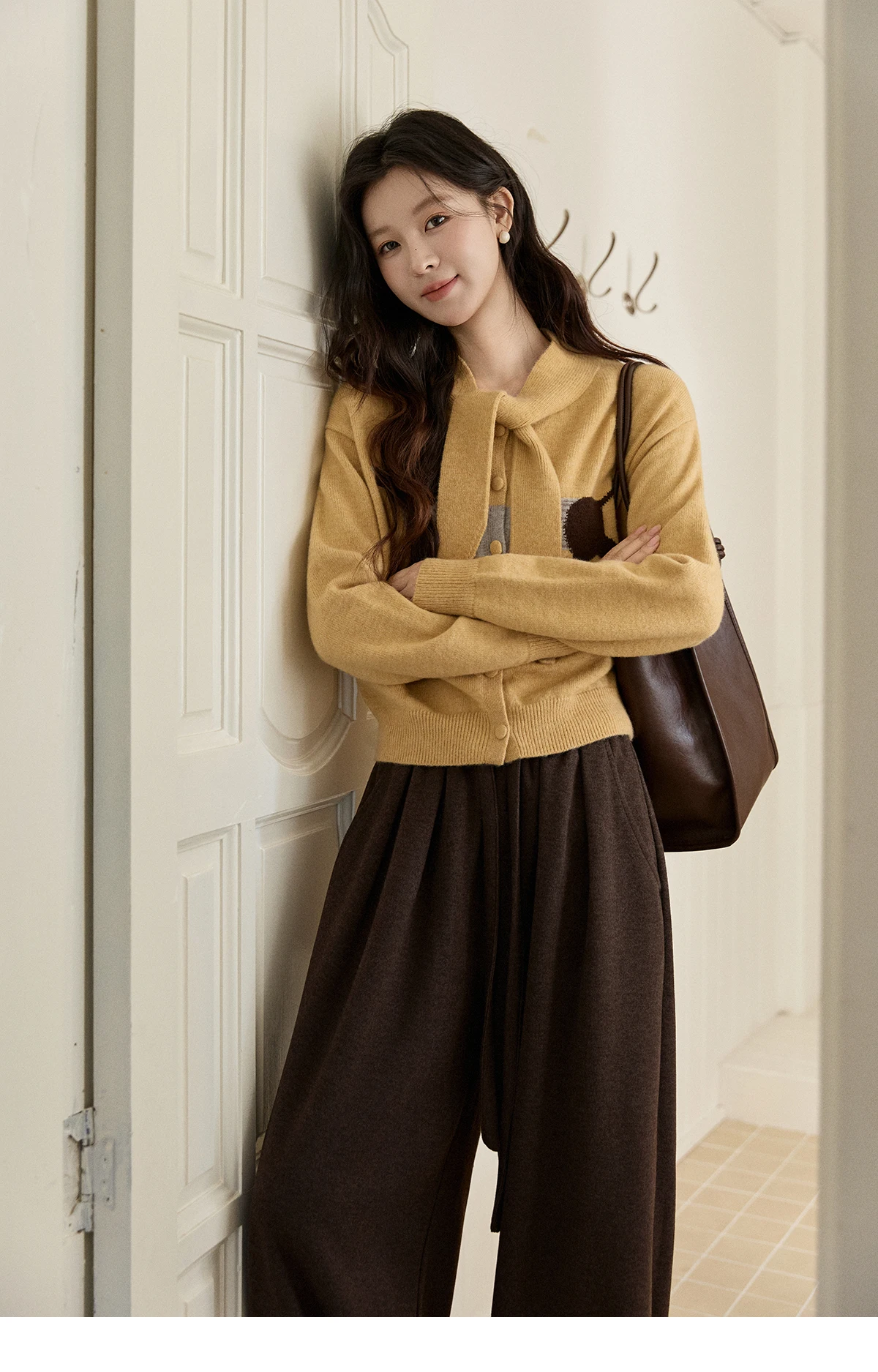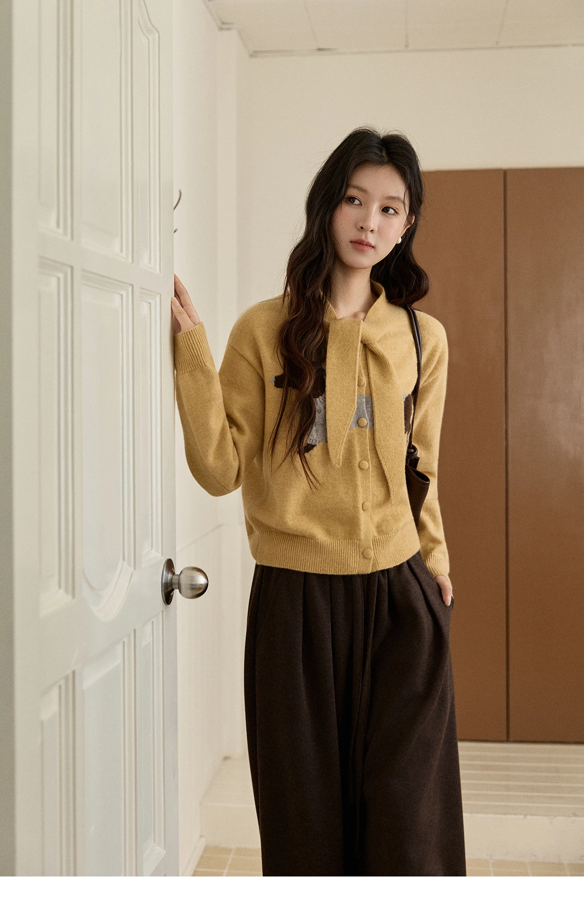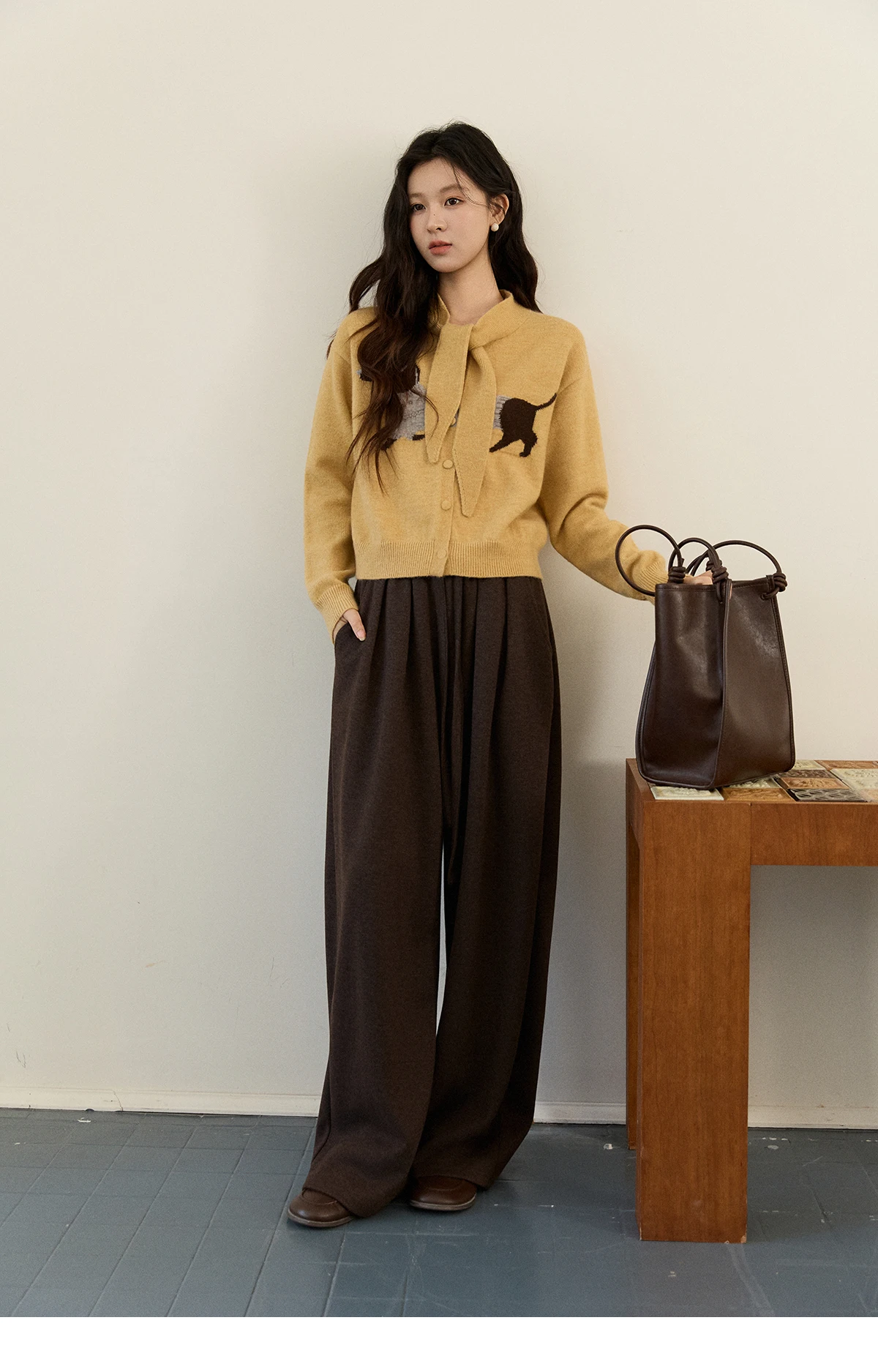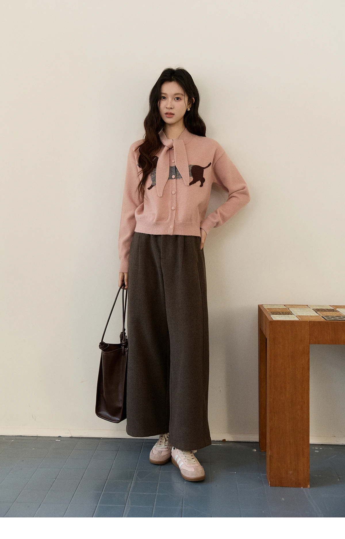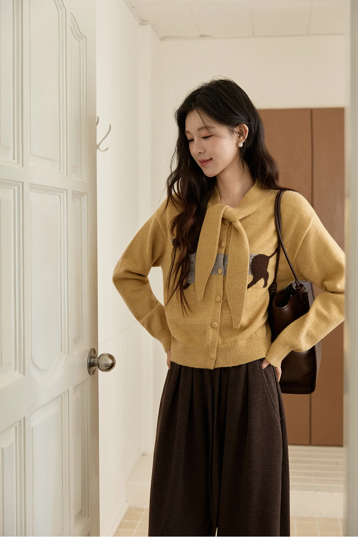 MISHOW Women's Pink Knit Cardigan 2025 Autumn Winter Dachshund Pattern Bow Collar Sweaters Single-breasted Loose Tops MXE94Z2997
