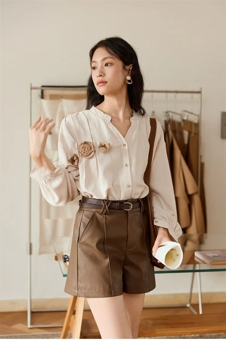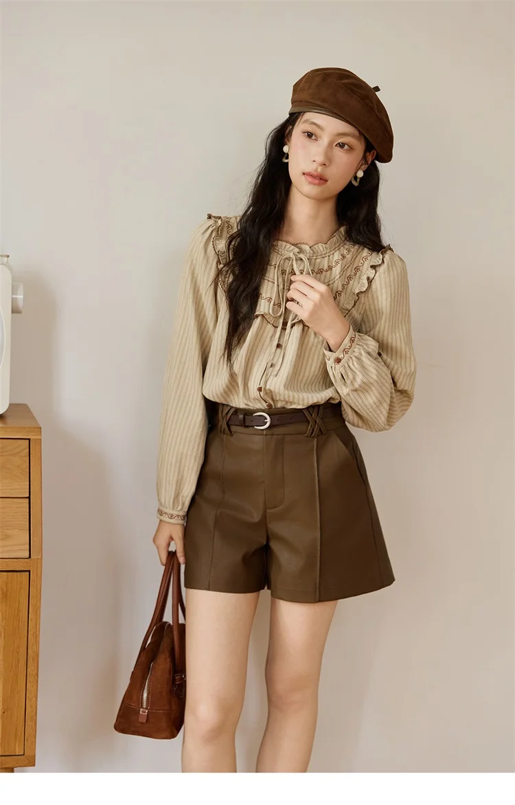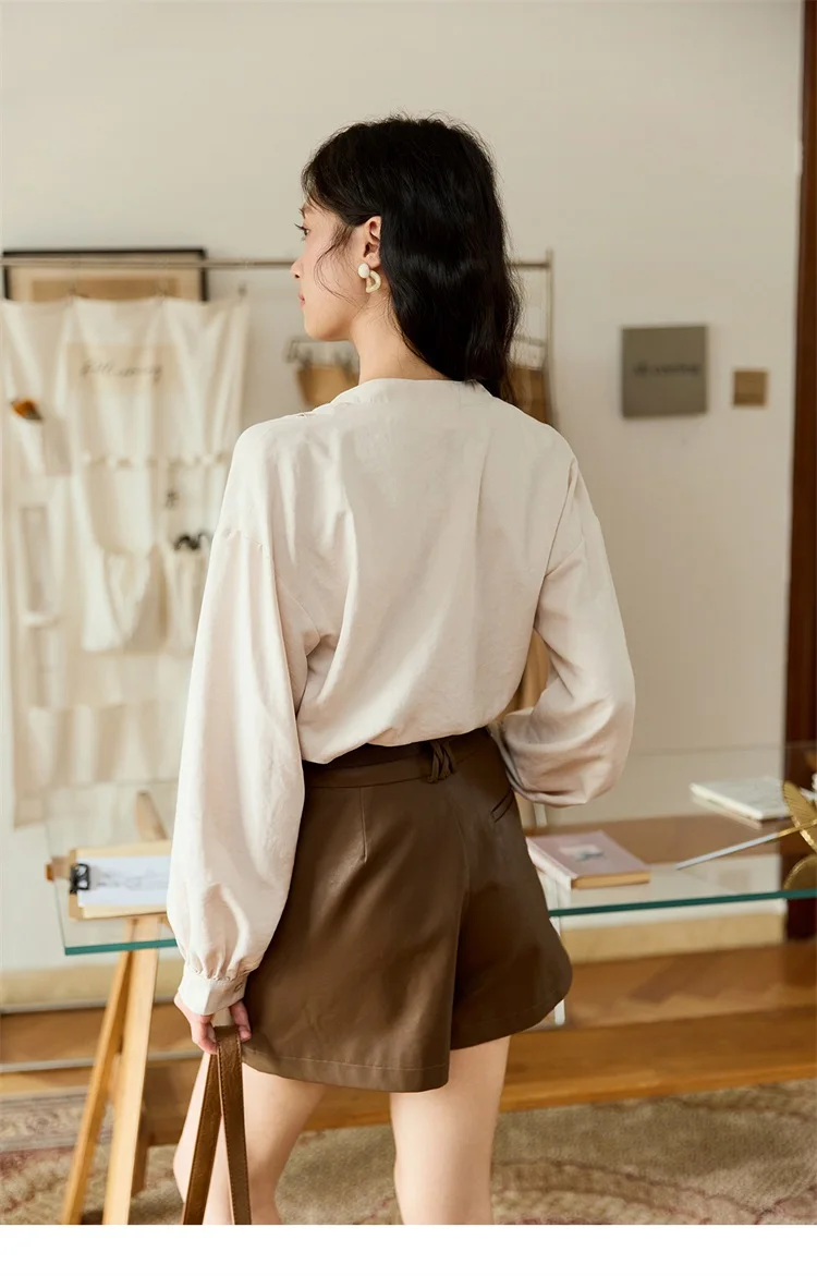 MISHOW Women's PU Leather Shorts Autumn 2025 Slanted Pocket Versatile Short Pants A-line Waist Shorts Excluding Belt MXE48K1086