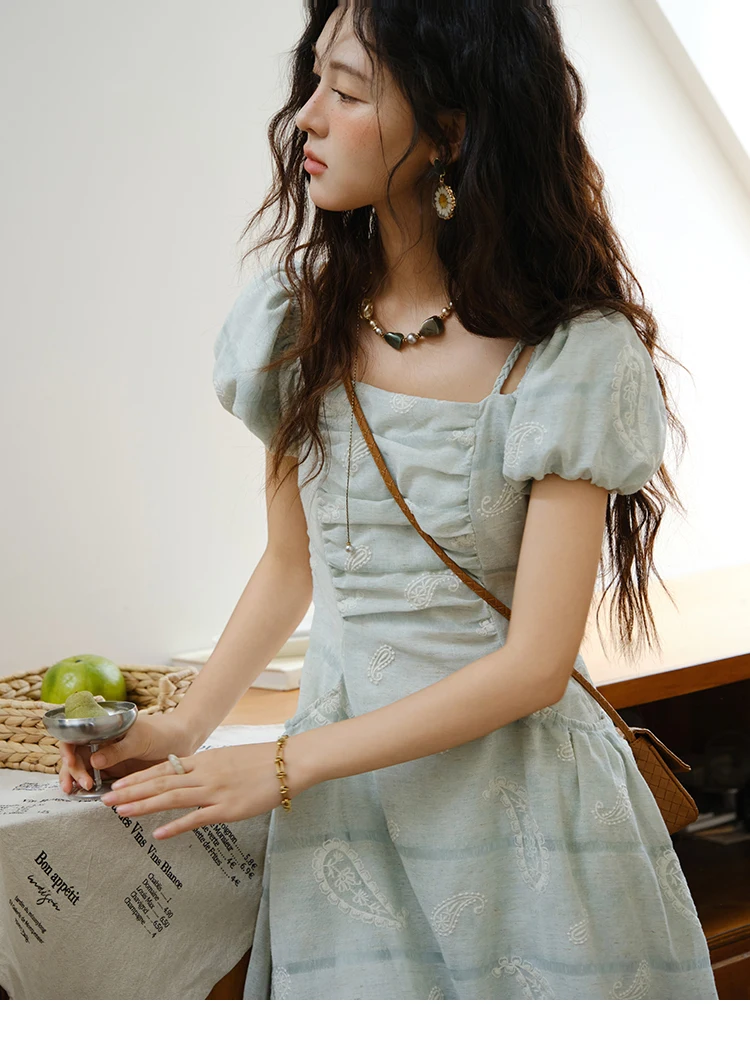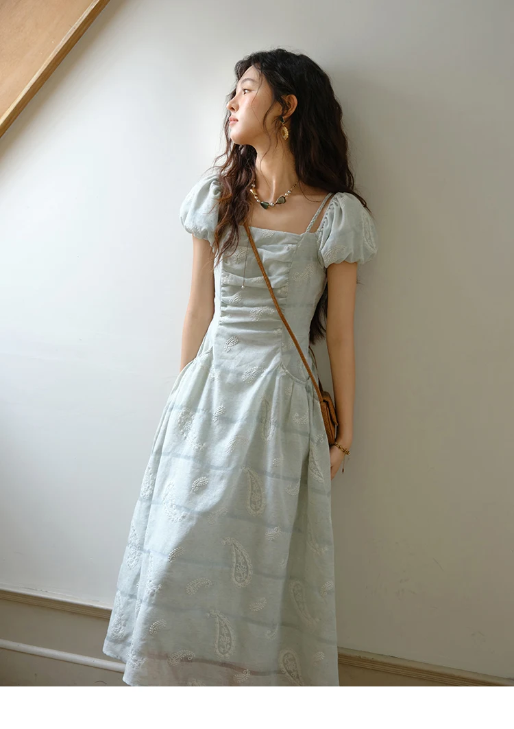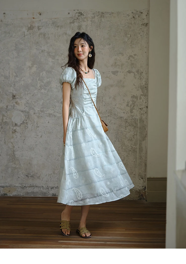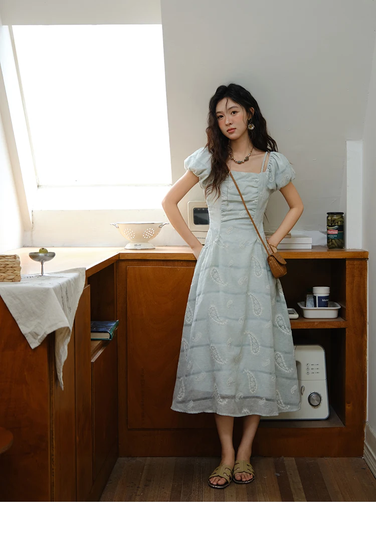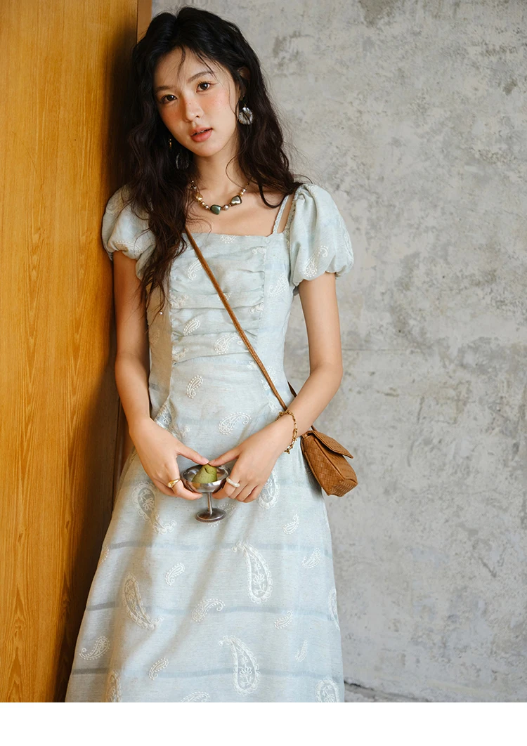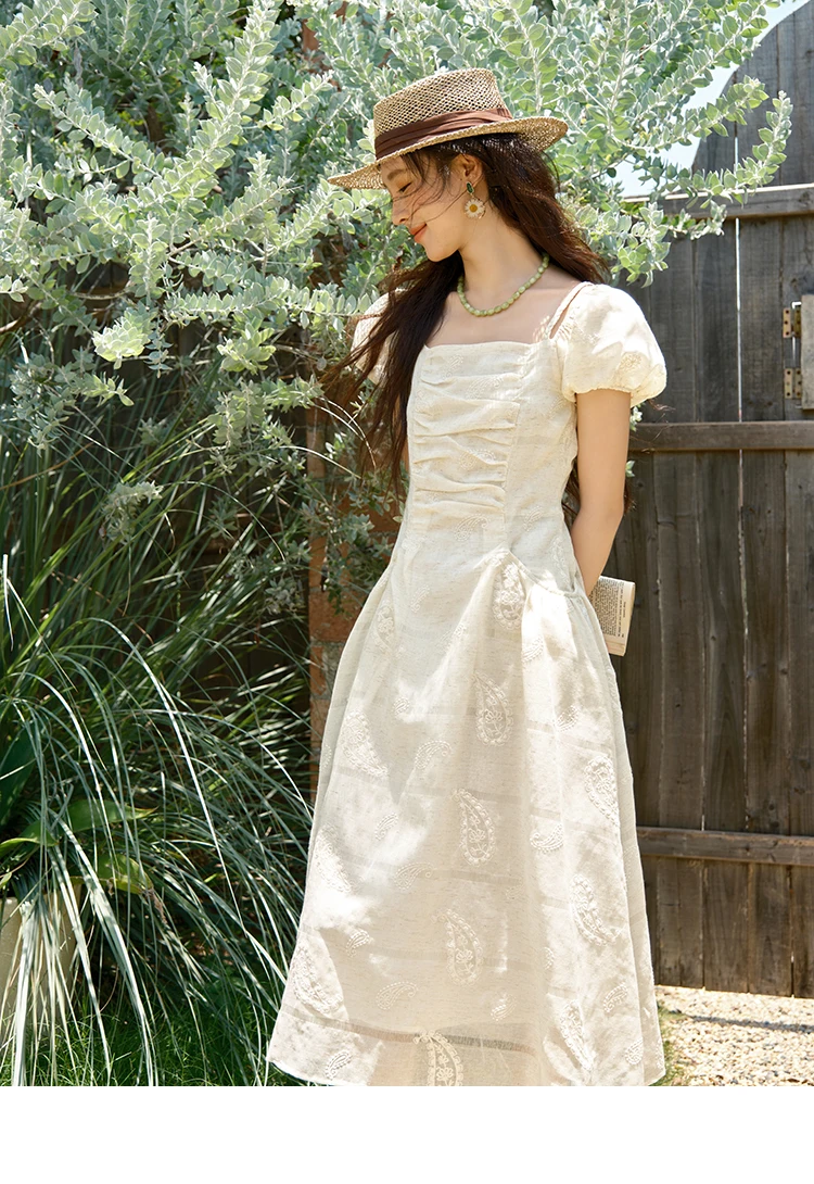 MISHOW Women's Puff Sleeve Dress 2025 Summer Fashion Paisley Embroidery Lady Pocket Dresses Vacation Women's Clothing MXE34L2265