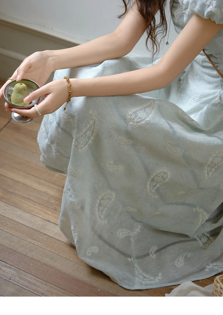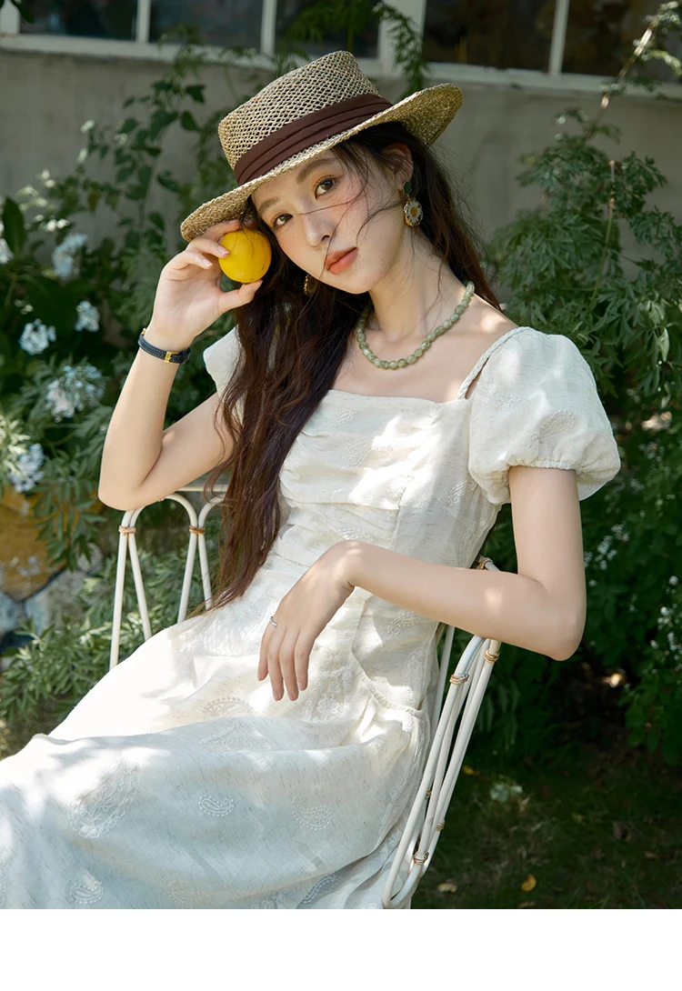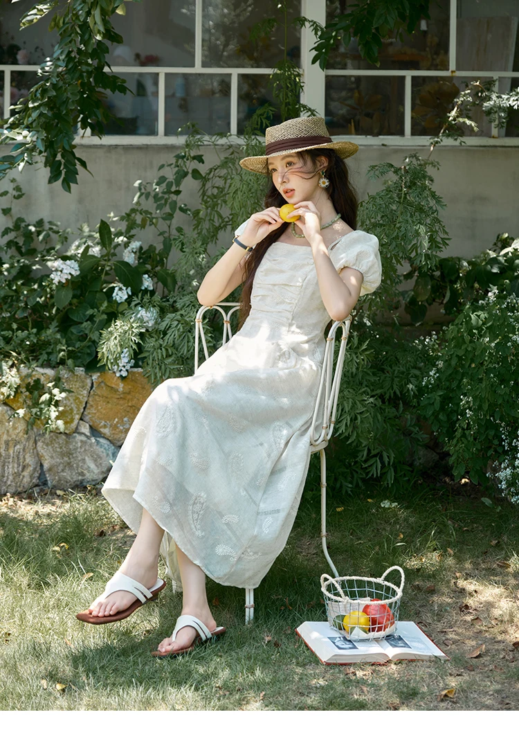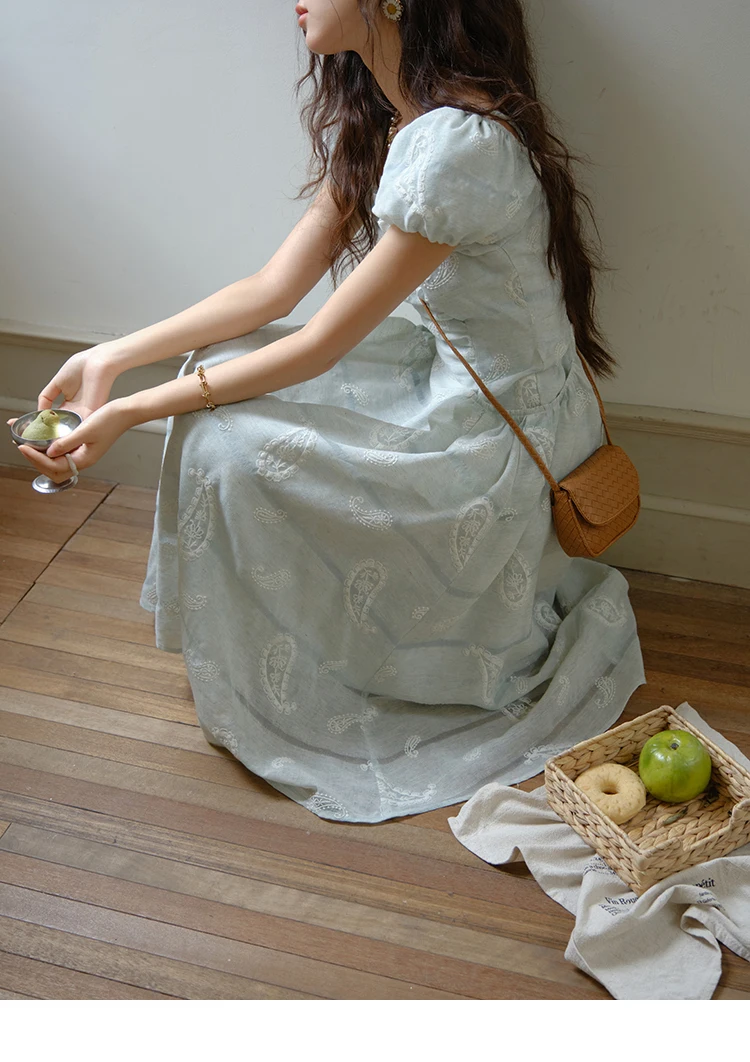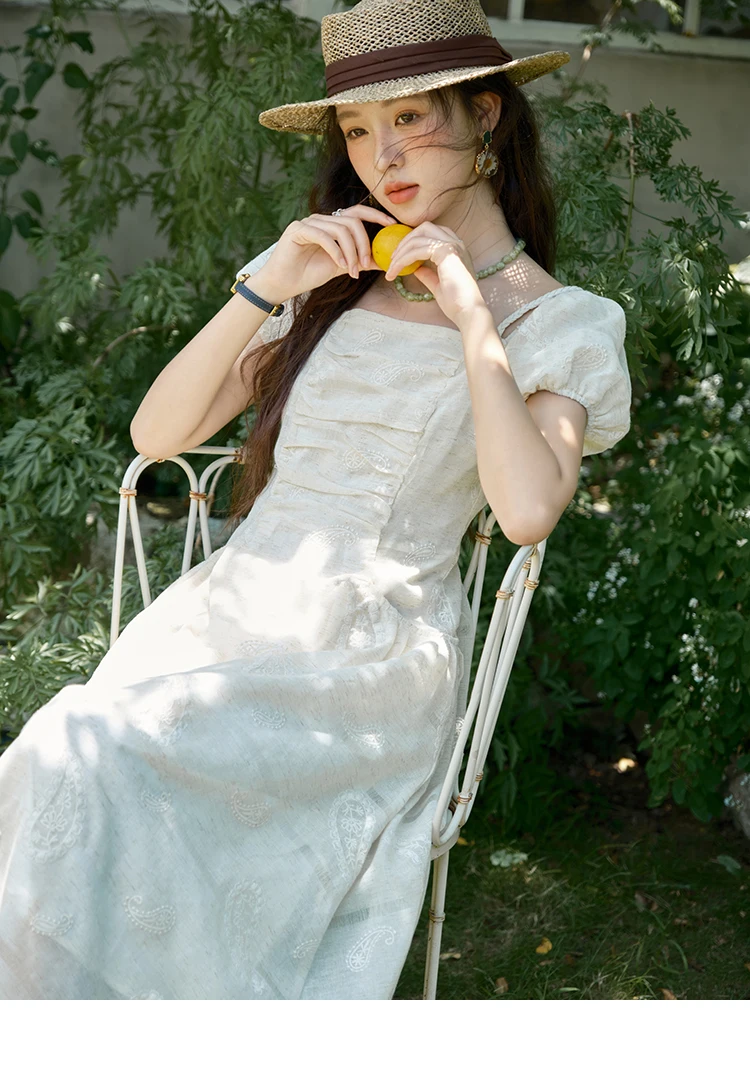 MISHOW Women's Puff Sleeve Dress 2025 Summer Fashion Paisley Embroidery Lady Pocket Dresses Vacation Women's Clothing MXE34L2265
