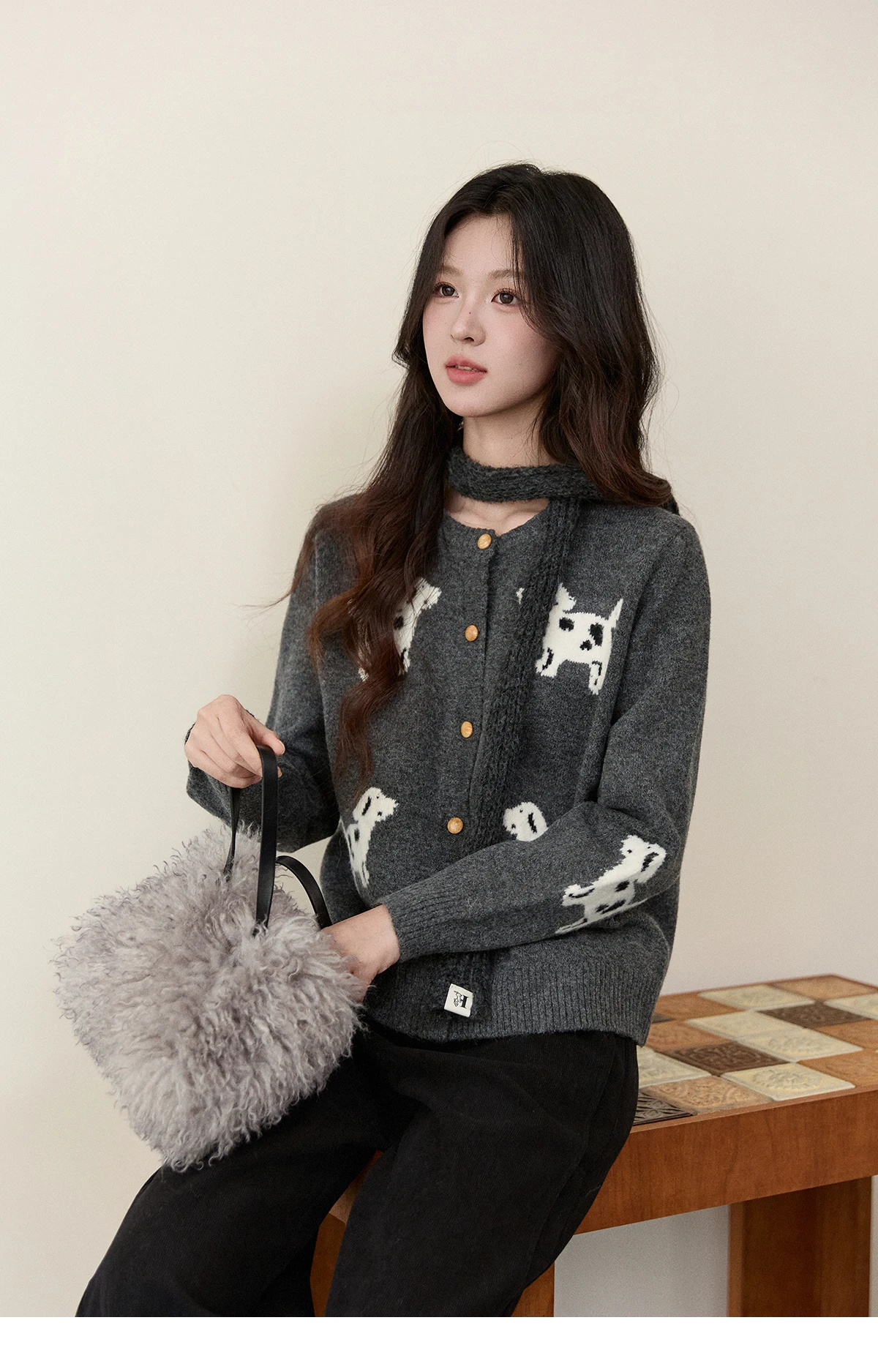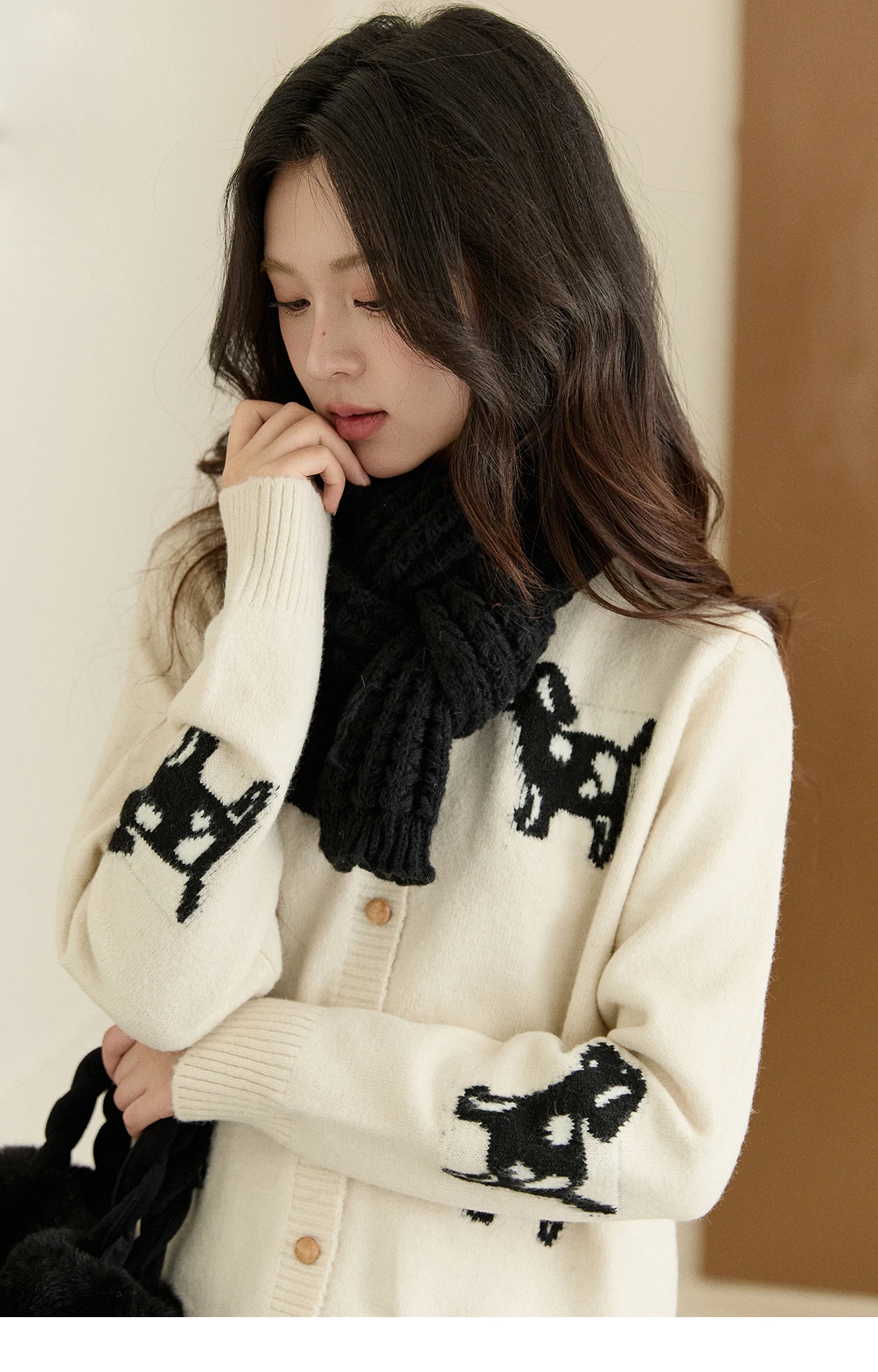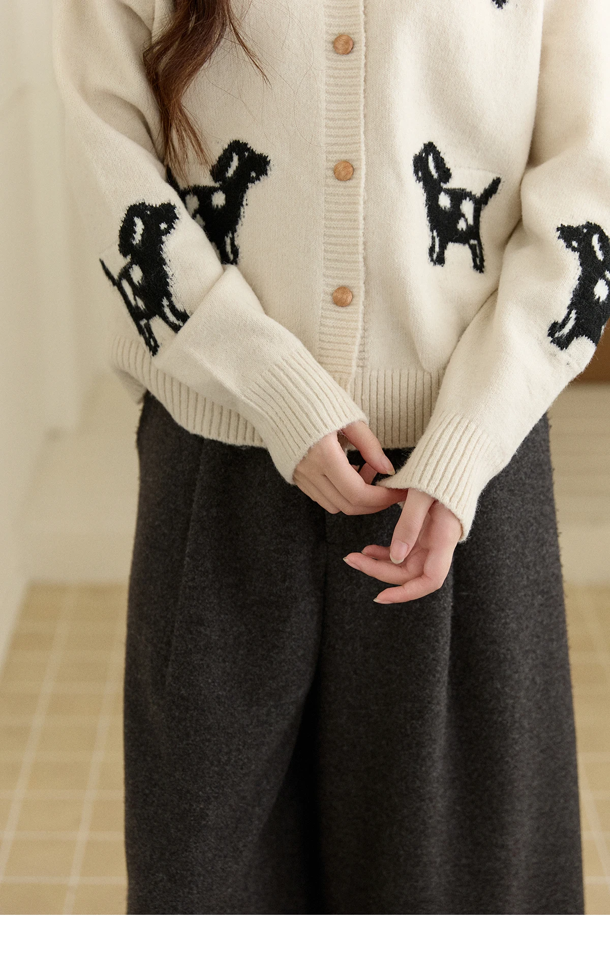 MISHOW Women's Puppy Jacquard Knit Cardigan 2025 Winter Single-breasted Crew Neck Top Warm Loose Sweaters Office Lady MXE93Z2950