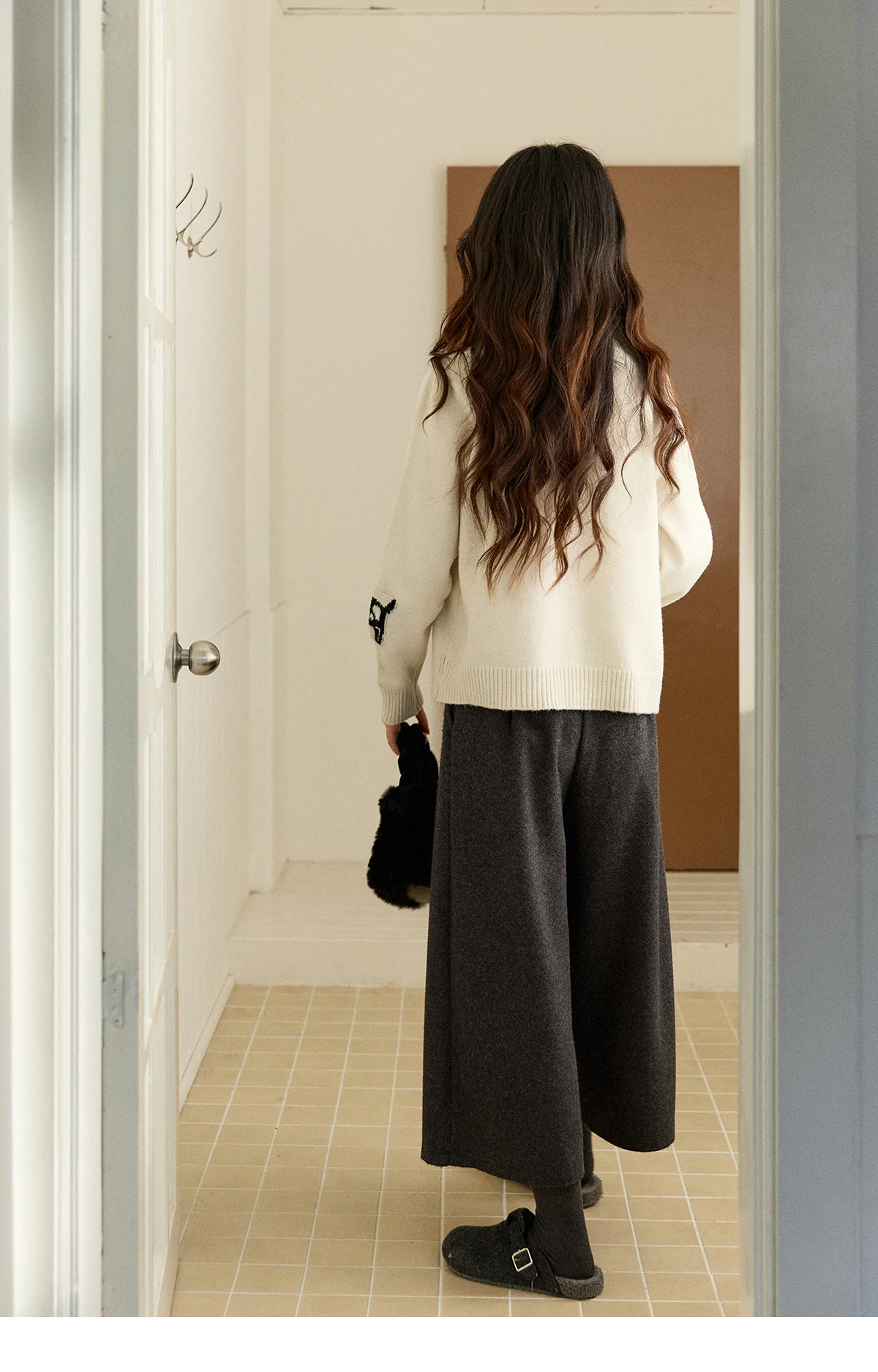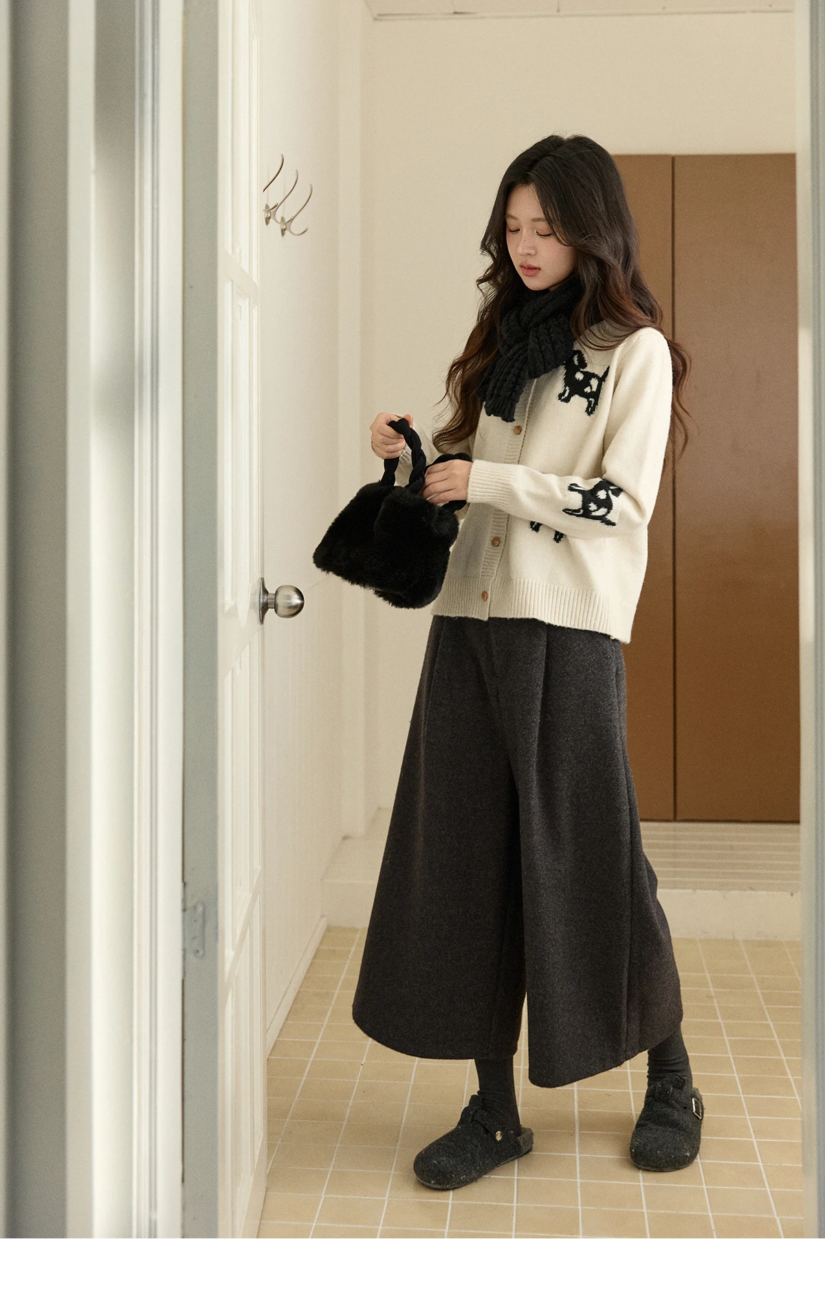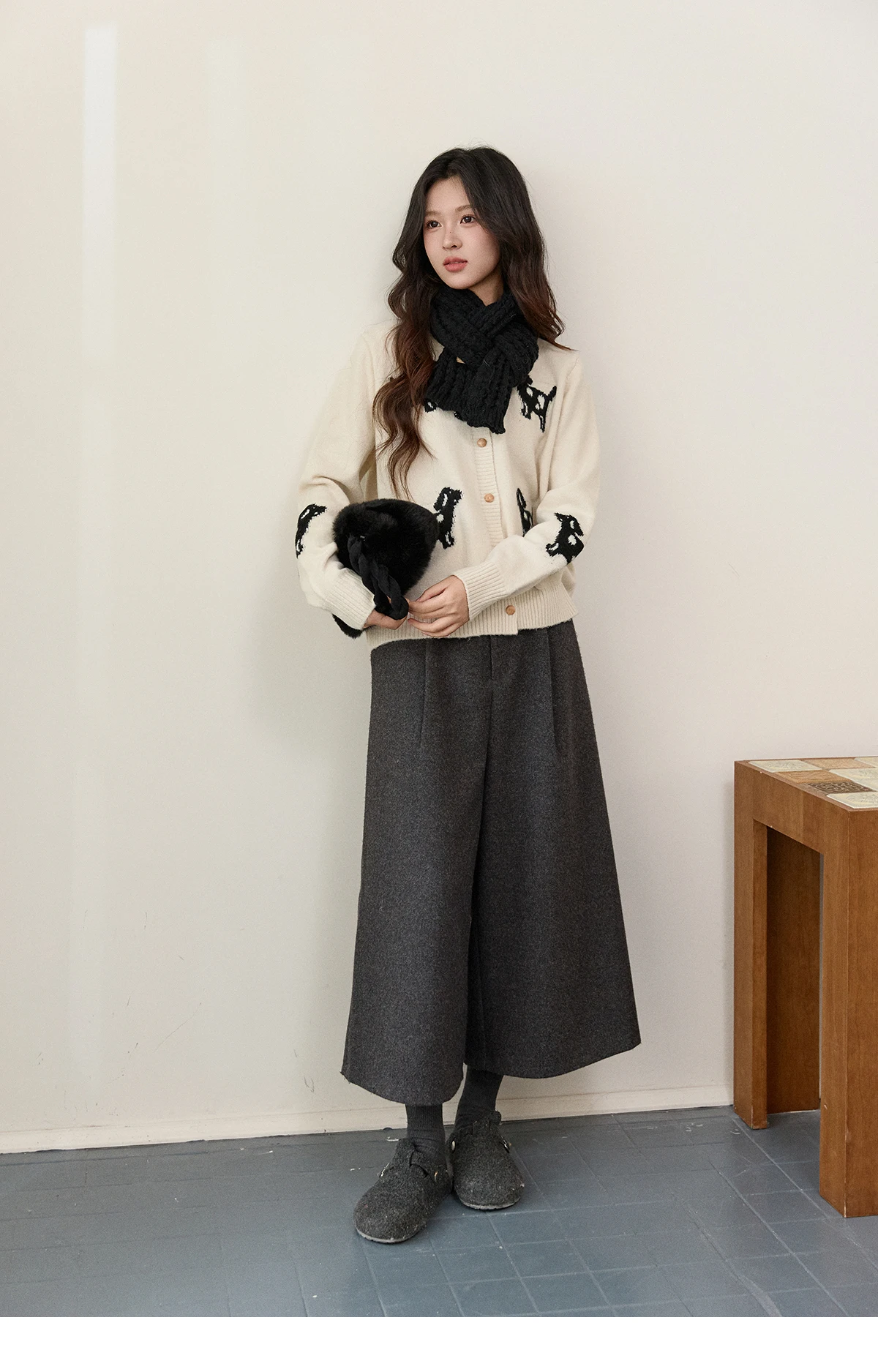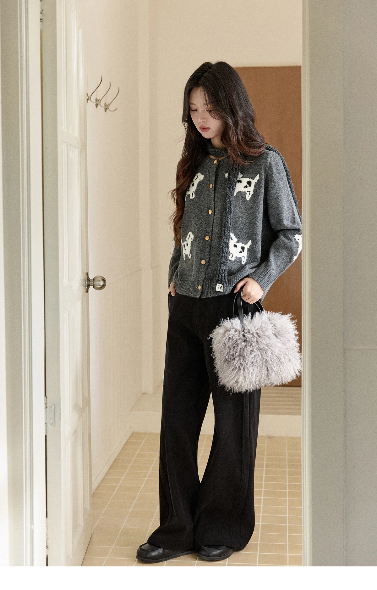 MISHOW Women's Puppy Jacquard Knit Cardigan 2025 Winter Single-breasted Crew Neck Top Warm Loose Sweaters Office Lady MXE93Z2950
