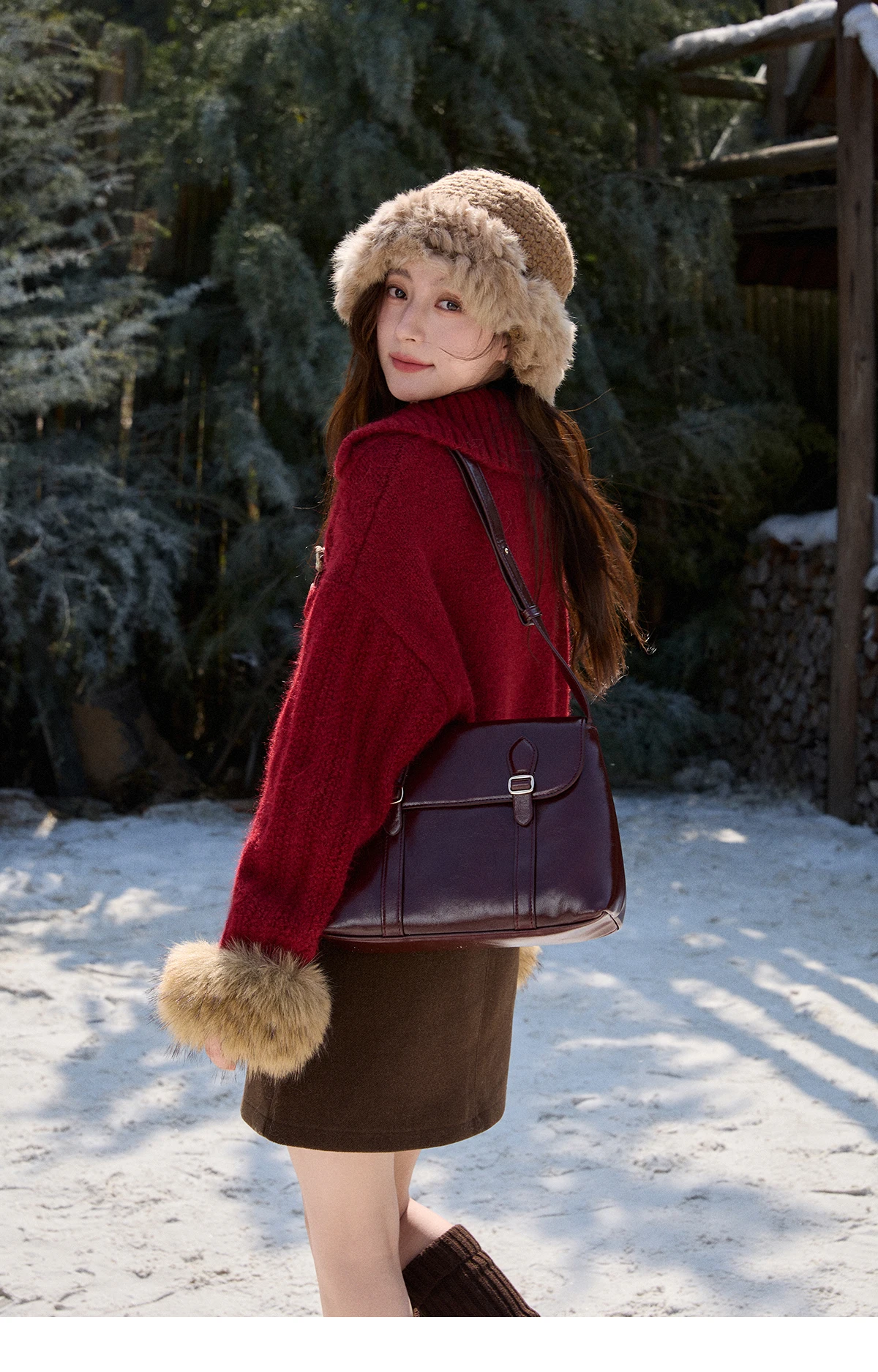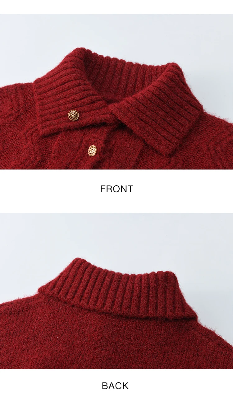 MISHOW Women's Red Knitted Cardigan Autumn Winter Cable Knitted Stand Collar Single-breasted Warm Loose Outerwear MXE92Z2827