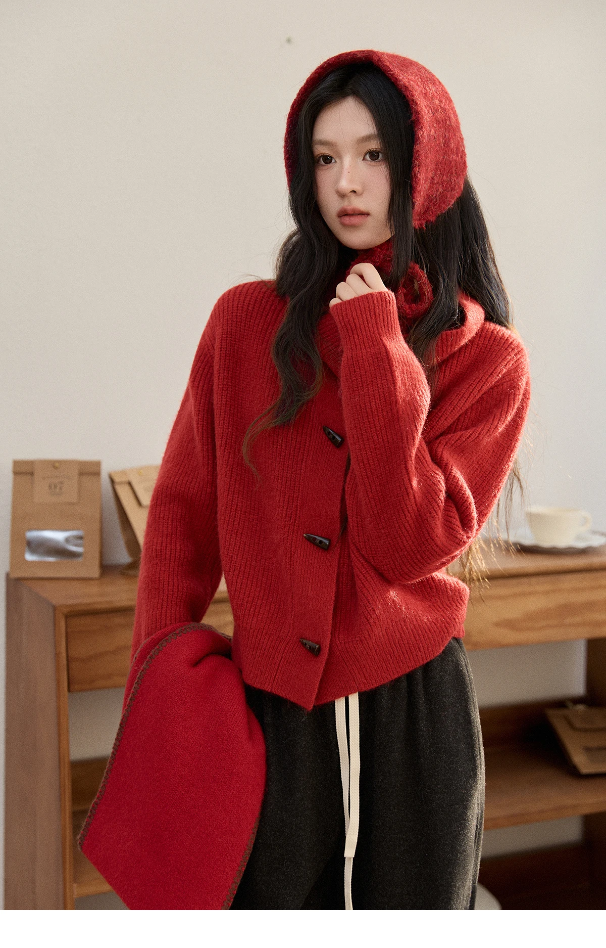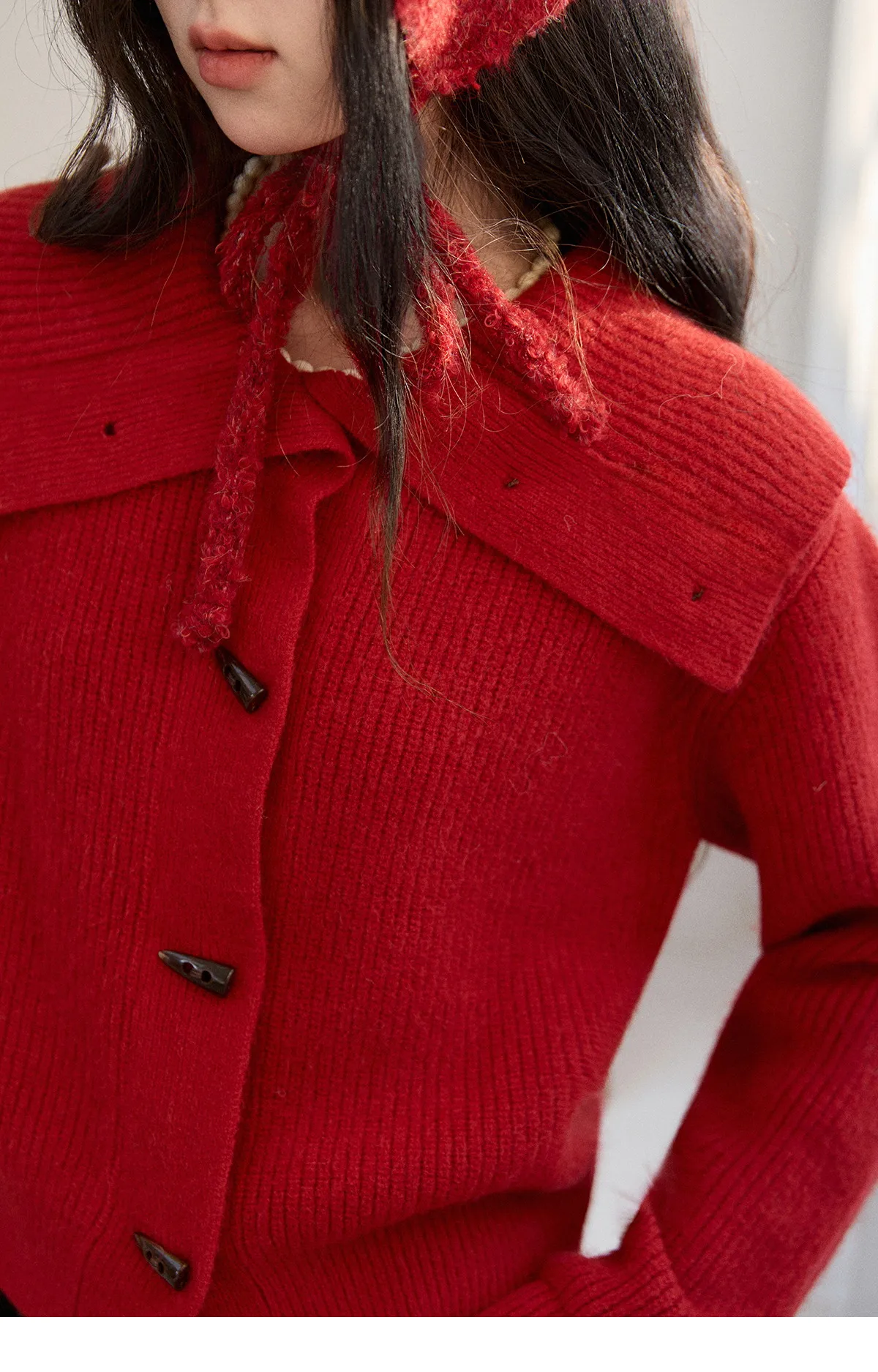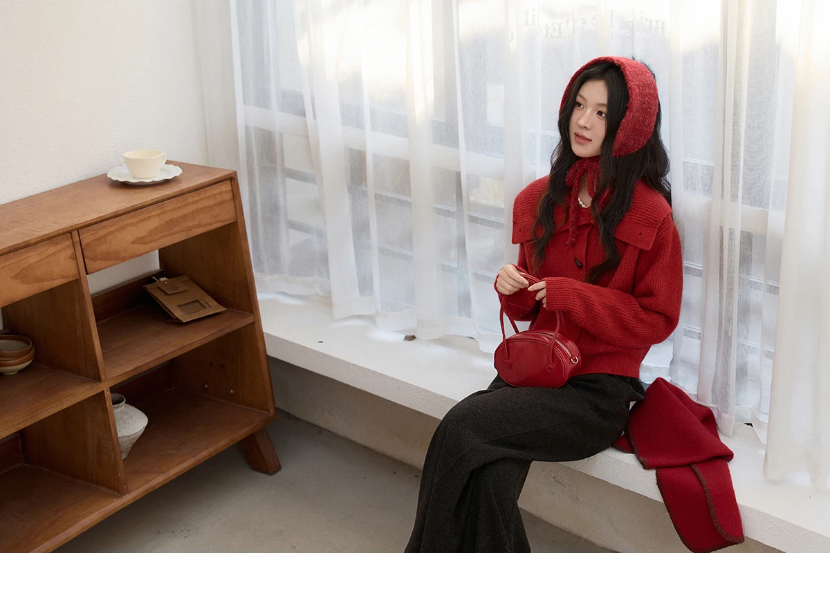 MISHOW Women's Retro Red Bull Horn Button Sweater 2025 Winter Arctic Velvet Warm Knitted Sweater Excluding Headscarf MXE90Z2819