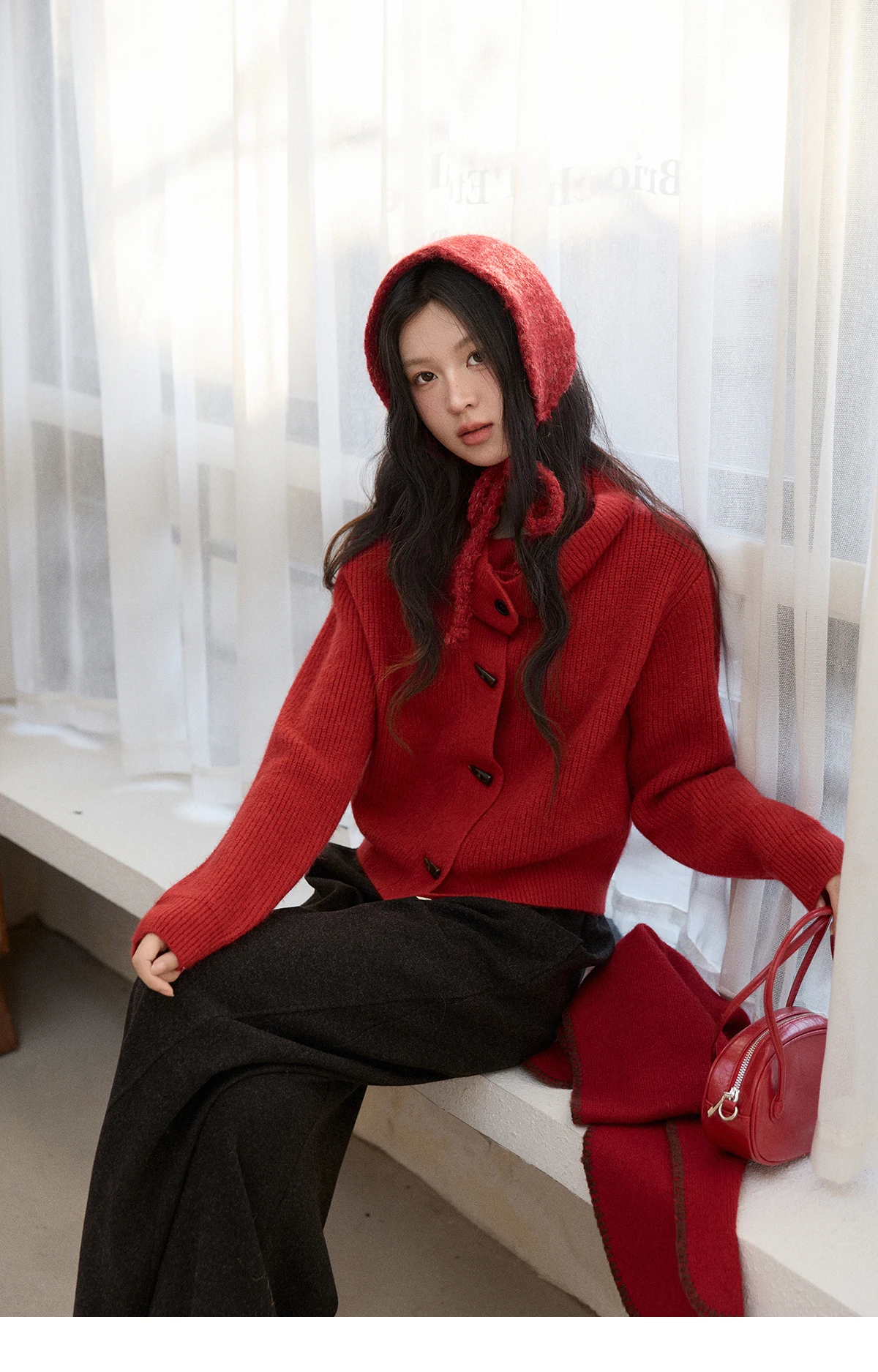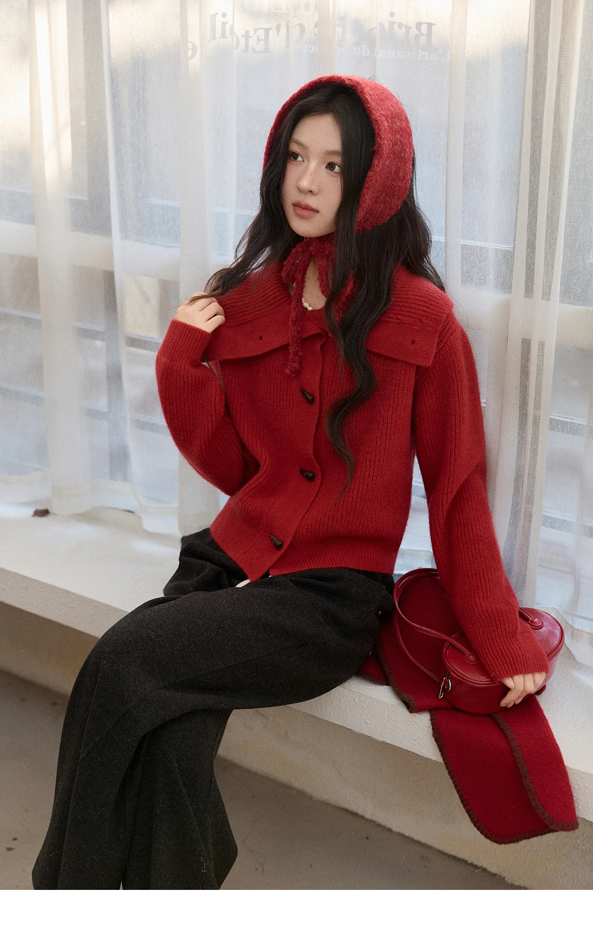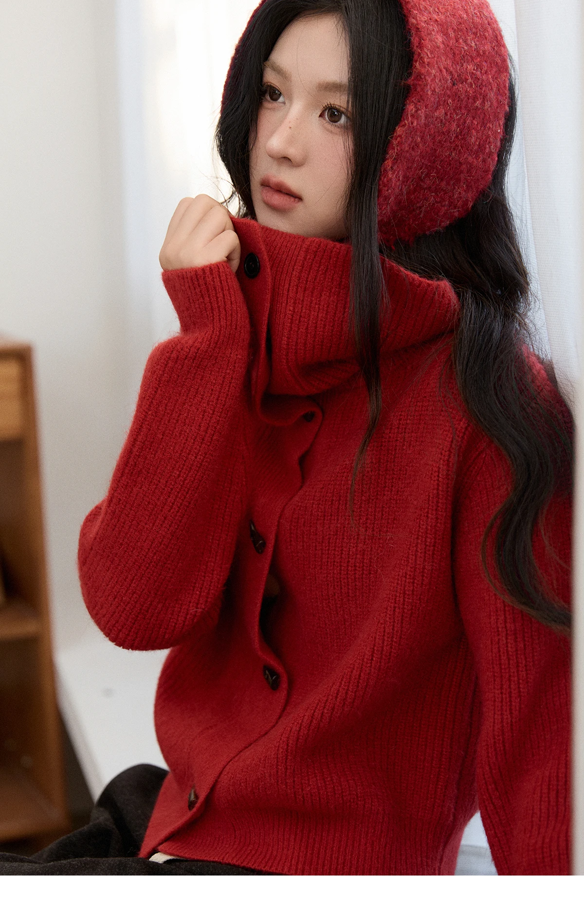 MISHOW Women's Retro Red Bull Horn Button Sweater 2025 Winter Arctic Velvet Warm Knitted Sweater Excluding Headscarf MXE90Z2819
