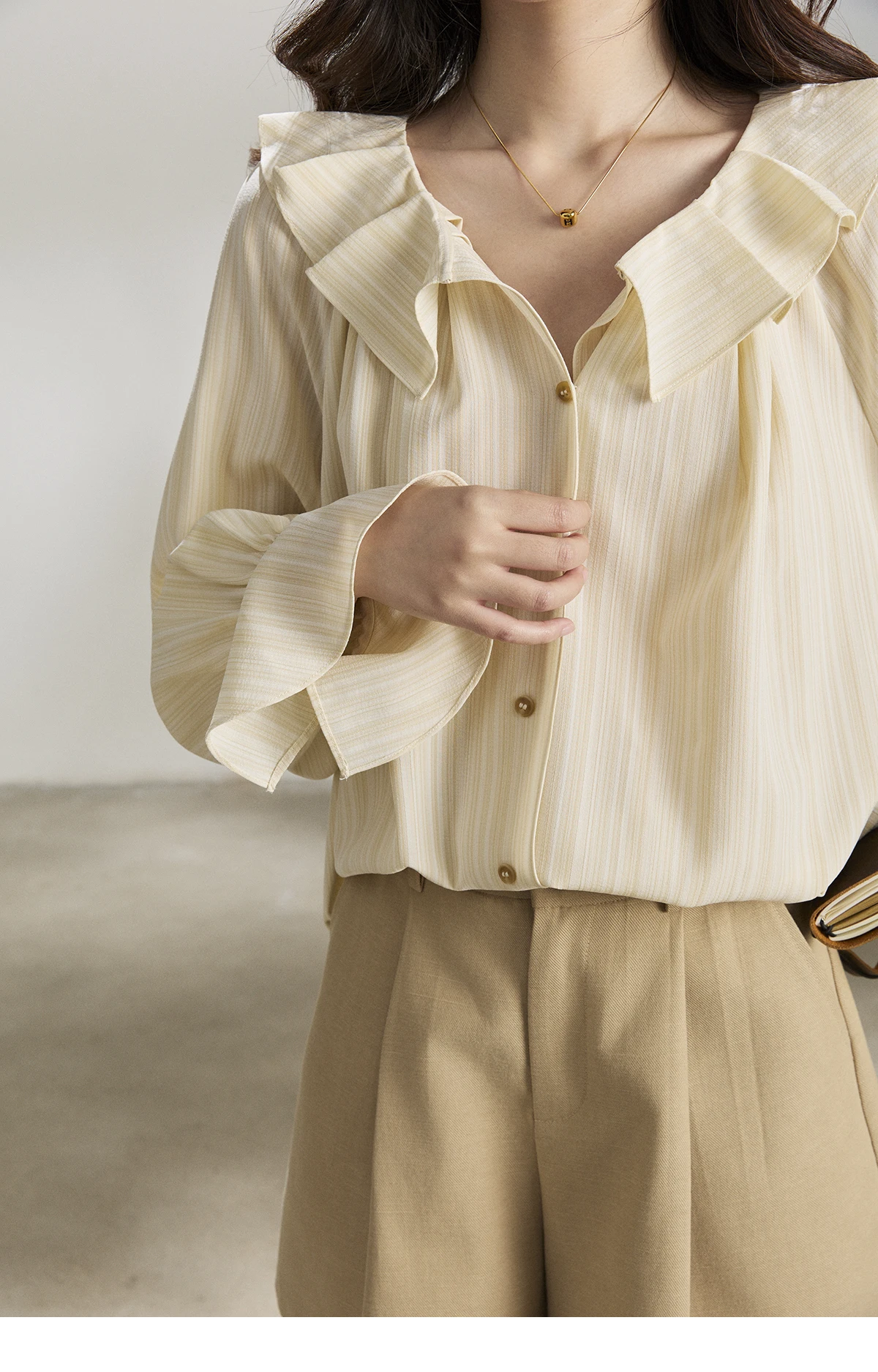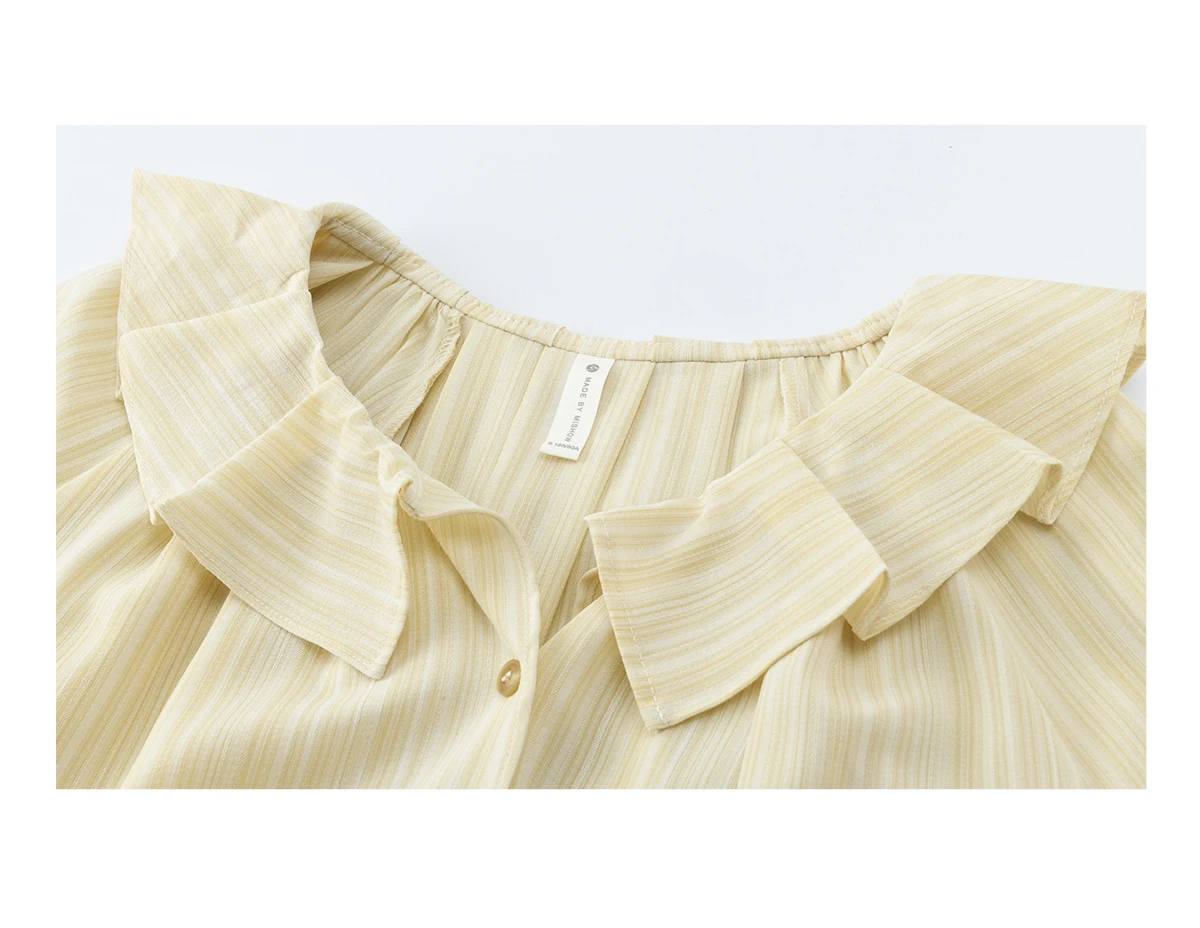 MISHOW Women's Ruffled Collar Striped Shirt 2026 Spring Flare Sleeve Elegant Casual Loose Long Sleeve Top Office Lady MXF13C2438