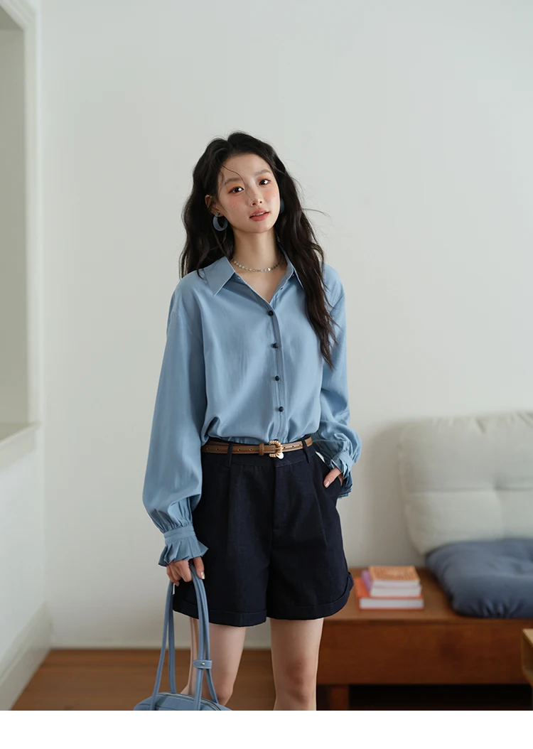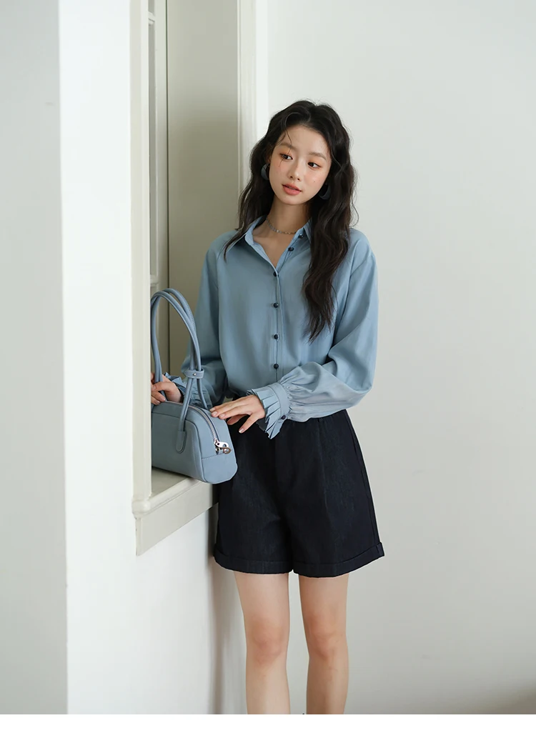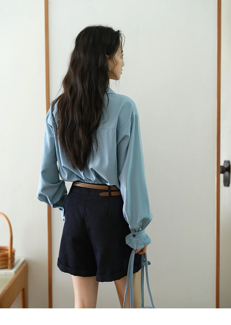MISHOW Women's Shirts 2025 Autumn Color Blocking Buttons Pleated Cuffs Loose Top Female Solid Lapel Commuting Shirts MXE41C2352