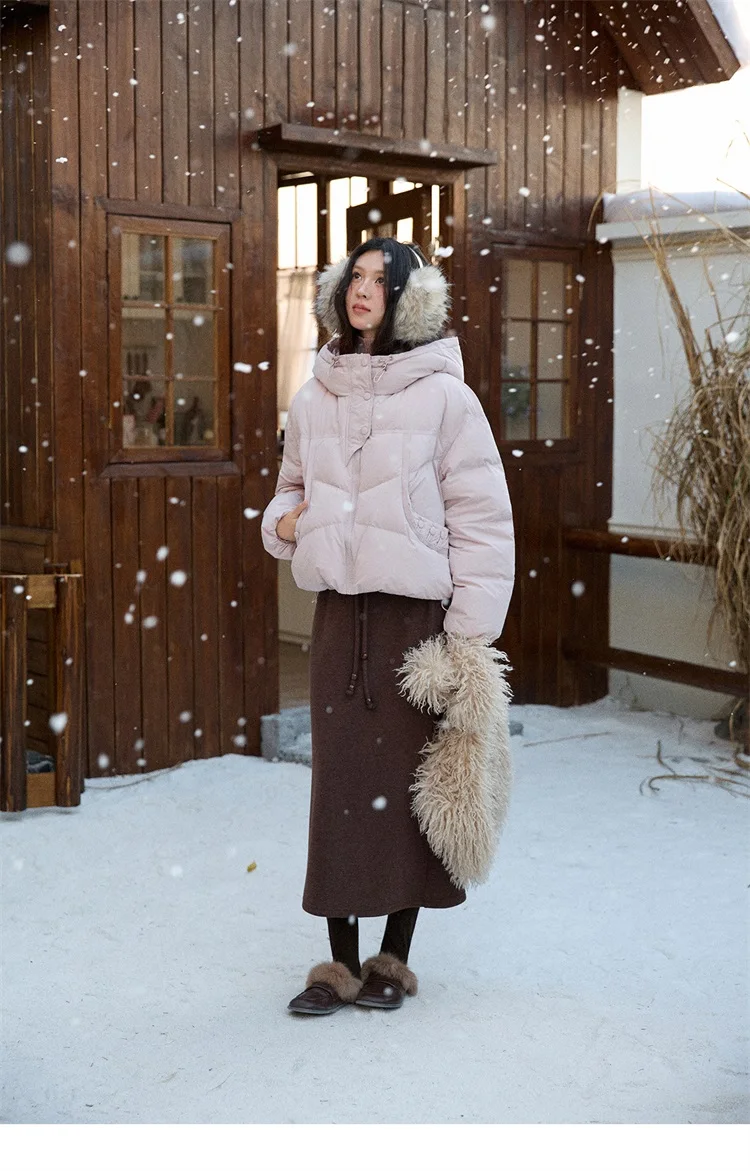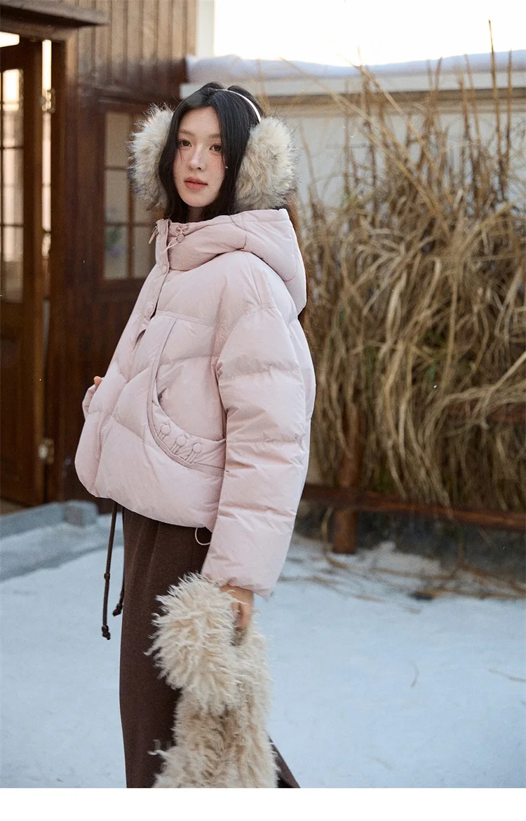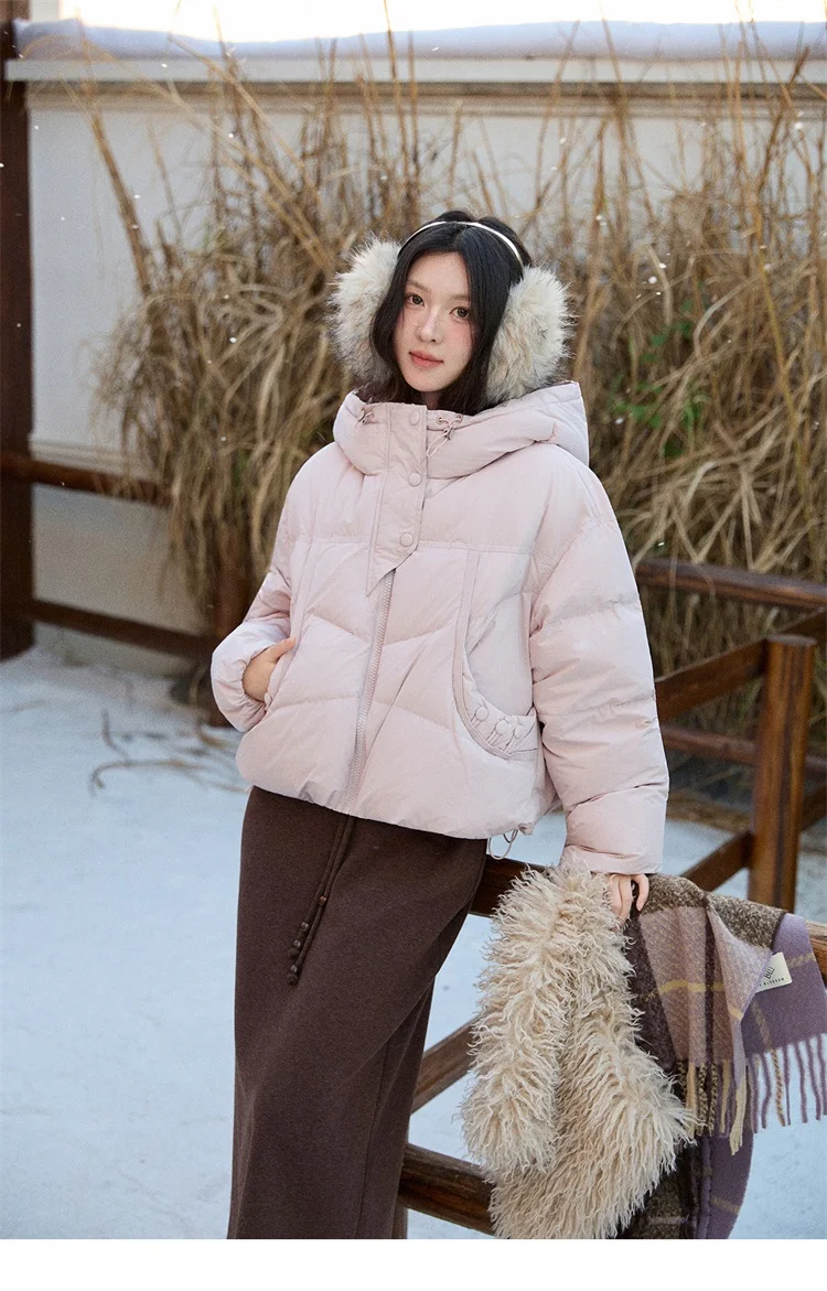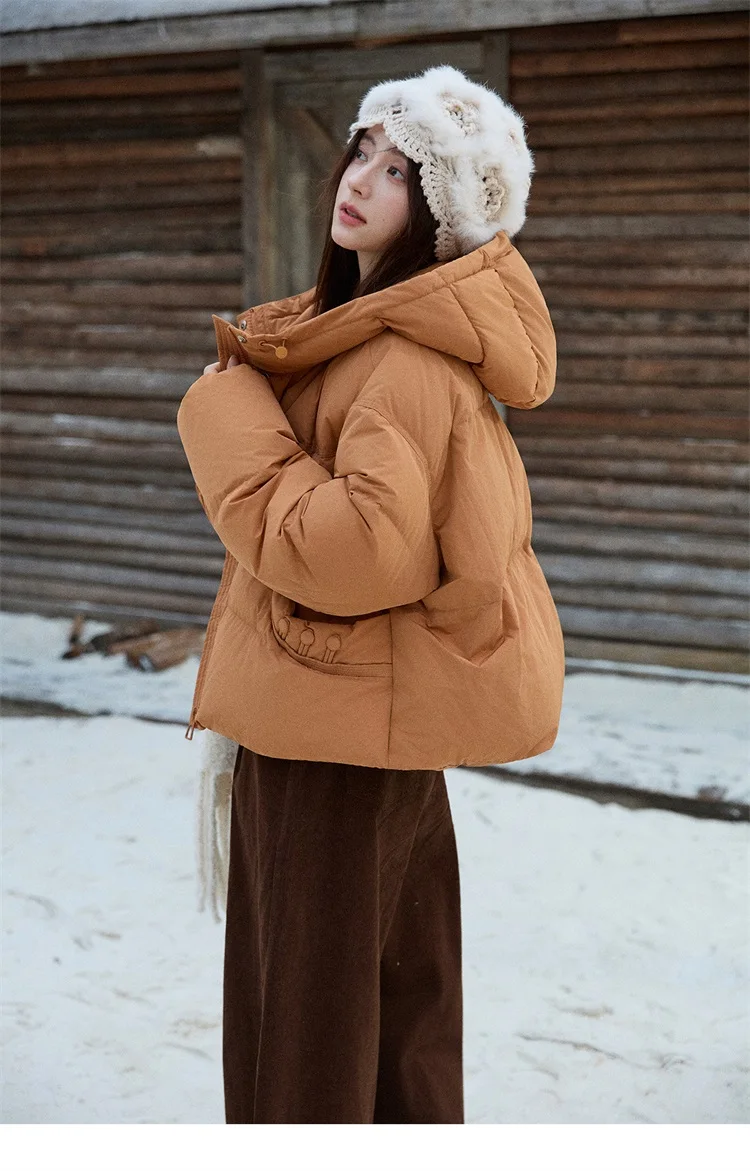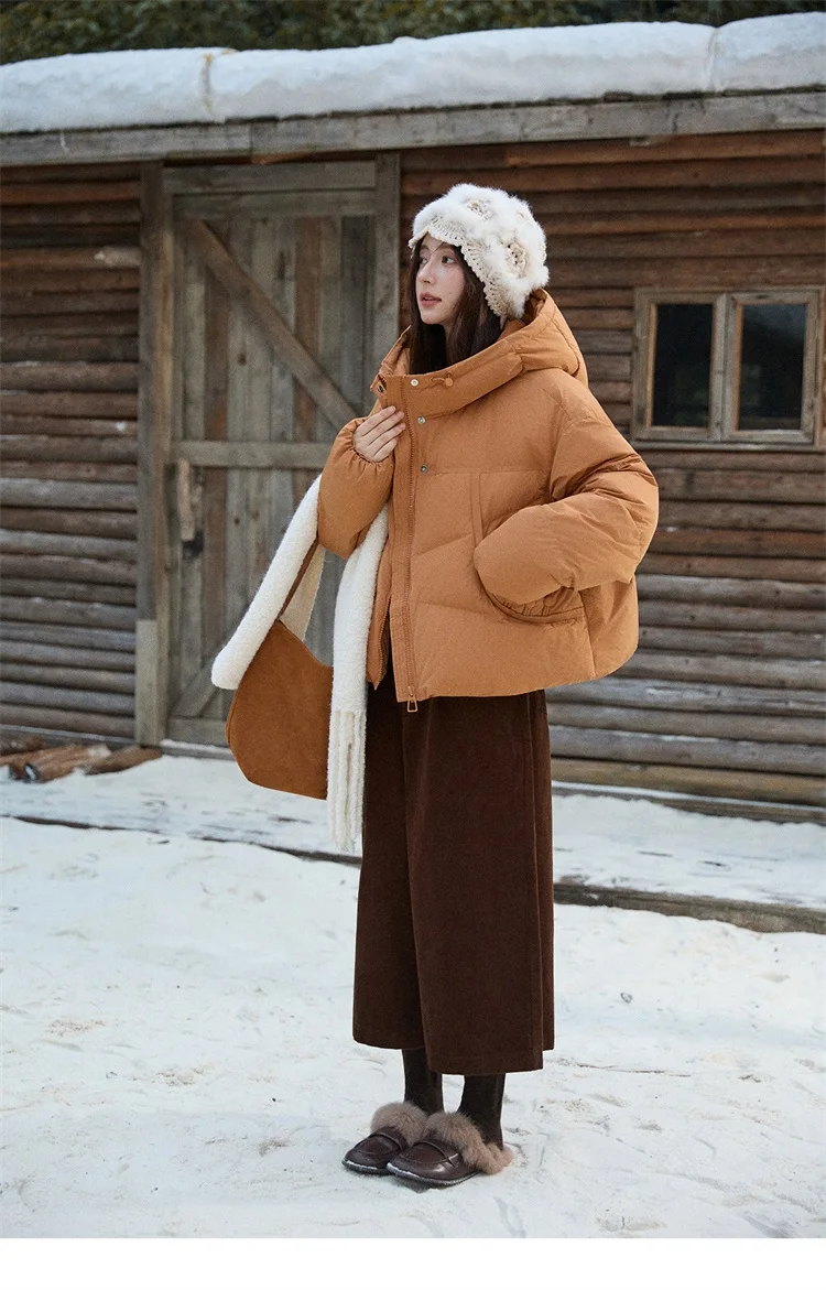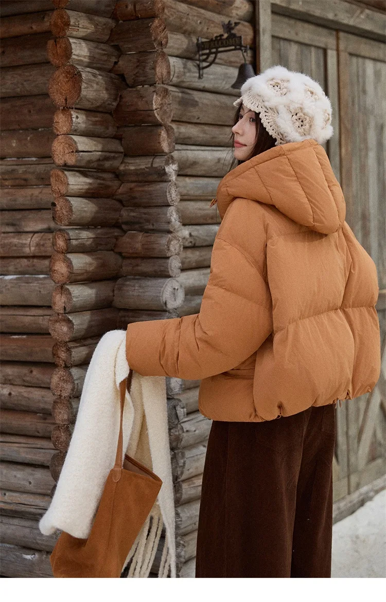MISHOW Women's Short Coat with 90% White Duck Down Filling Windproof Down-proof Hooded Jacket Lightweight Warm Coat MXE51Y0080