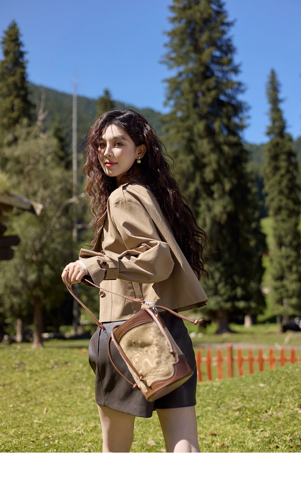 MISHOW Women's Short Fragrant Windbreaker Jacket 2024 Autumn Korean Stand Collar Double Row Placke Trench Streetwear MXD42W0386