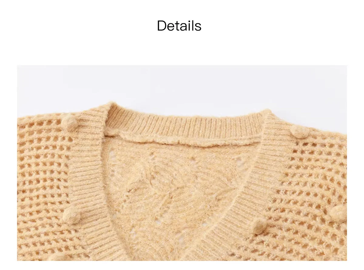 MISHOW Women's Solid Hollow-out Knit Thin Cardigan 2026 Spring V-Neck Bobble Knit tops Casual Loose Knitted Sweater MXF108Z1020