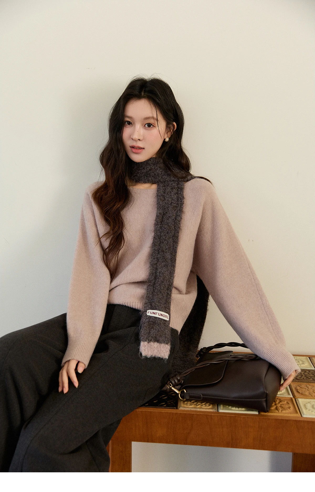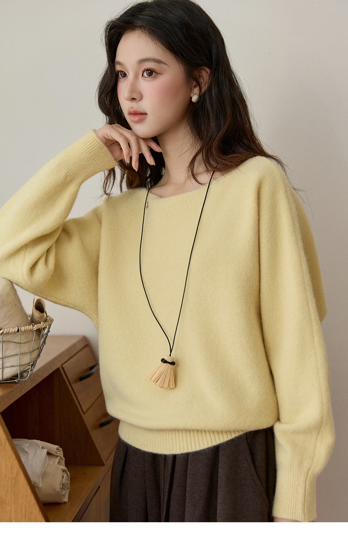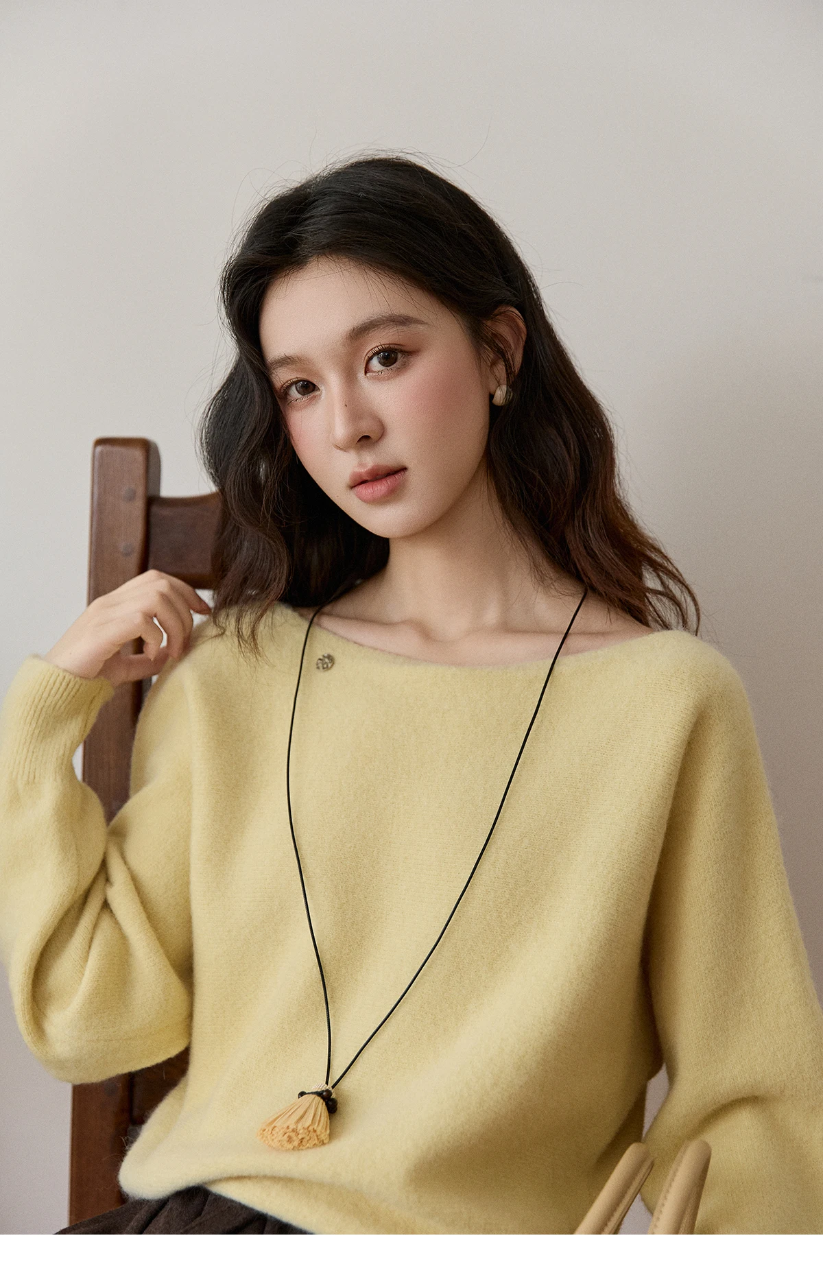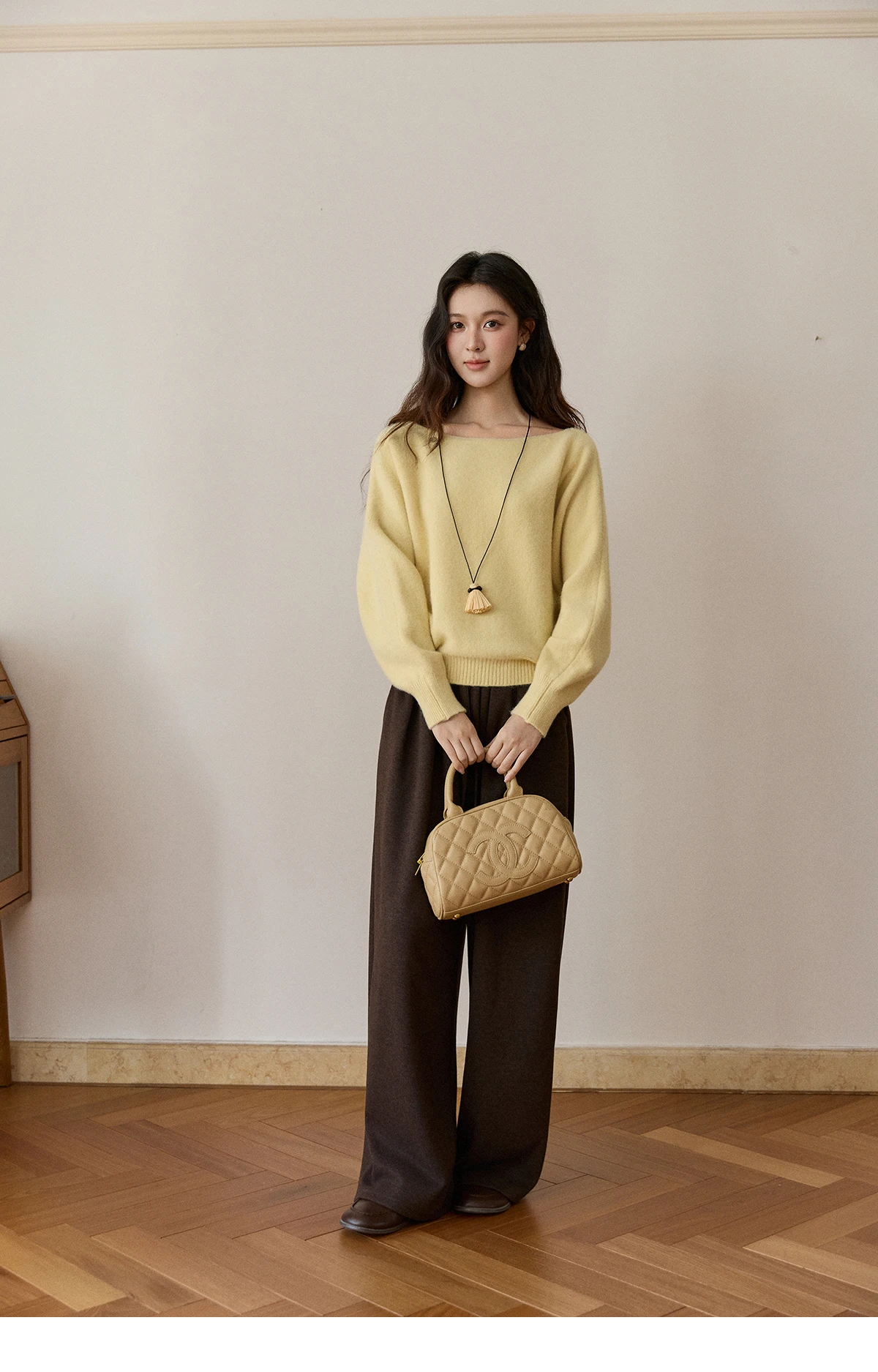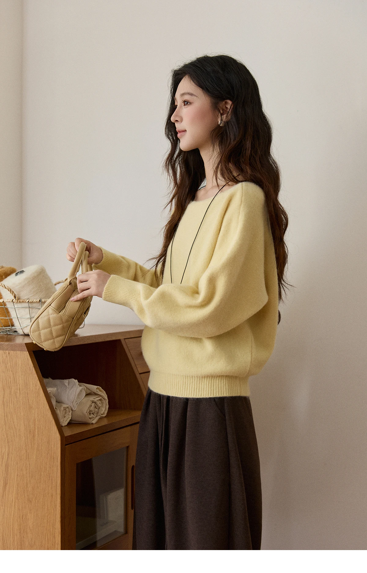 MISHOW Women's Solid Knitted Sweater 2025 Autumn Winter Boat Neck Lantern Sleeve Loose Sweater Soft Warm Pullover Top MXE94Z2984
