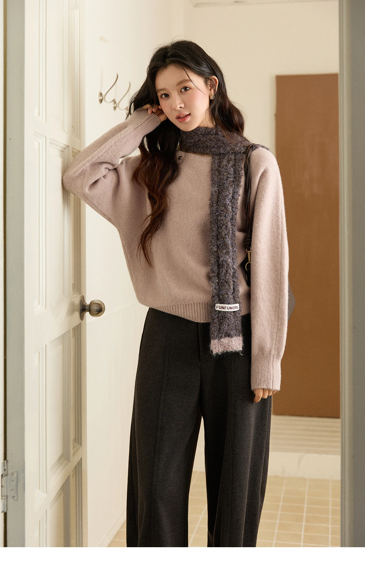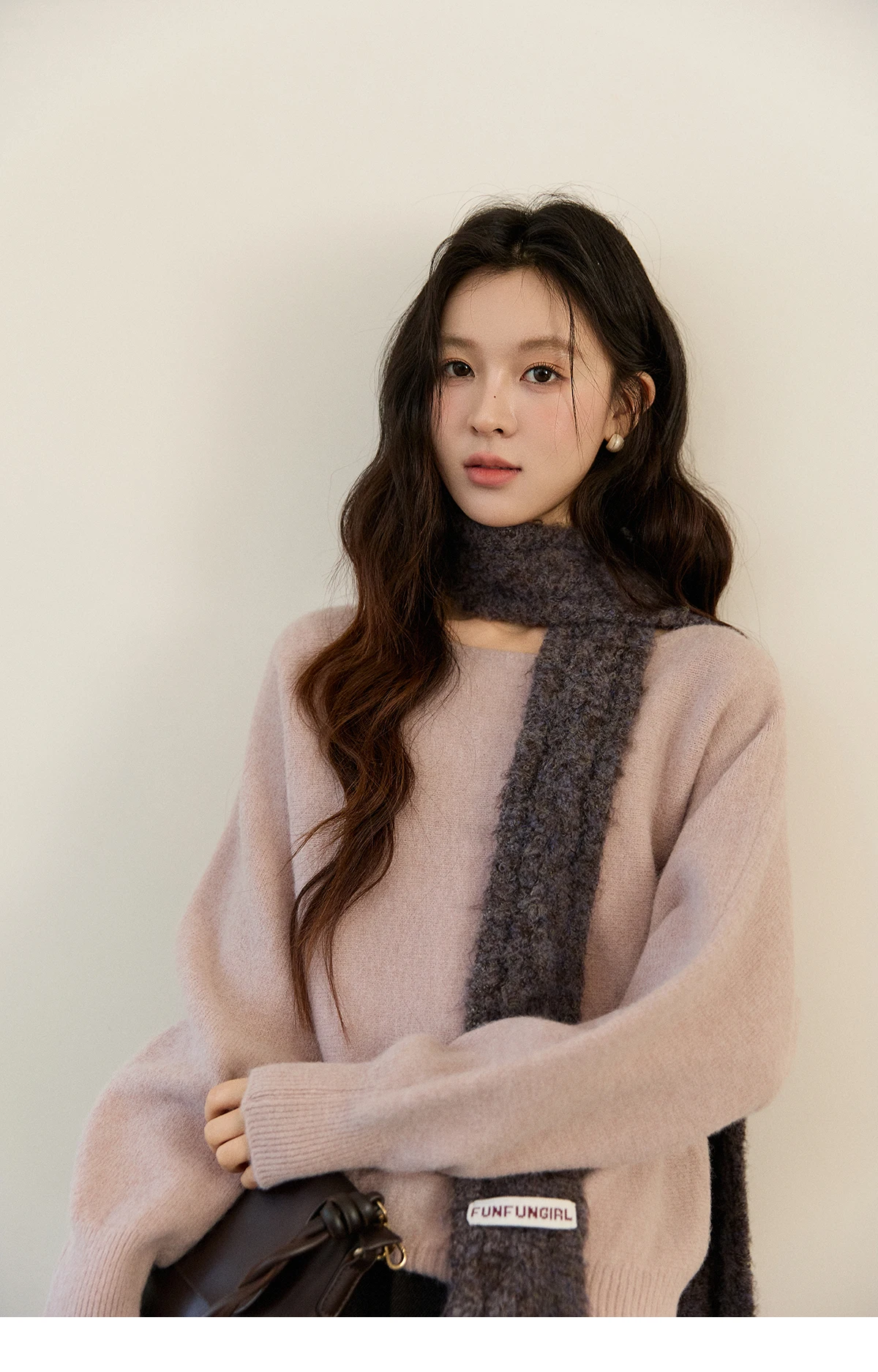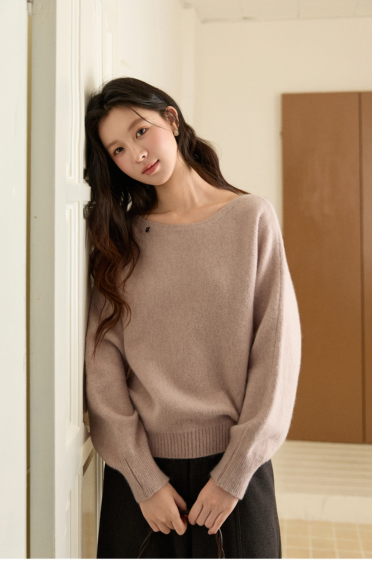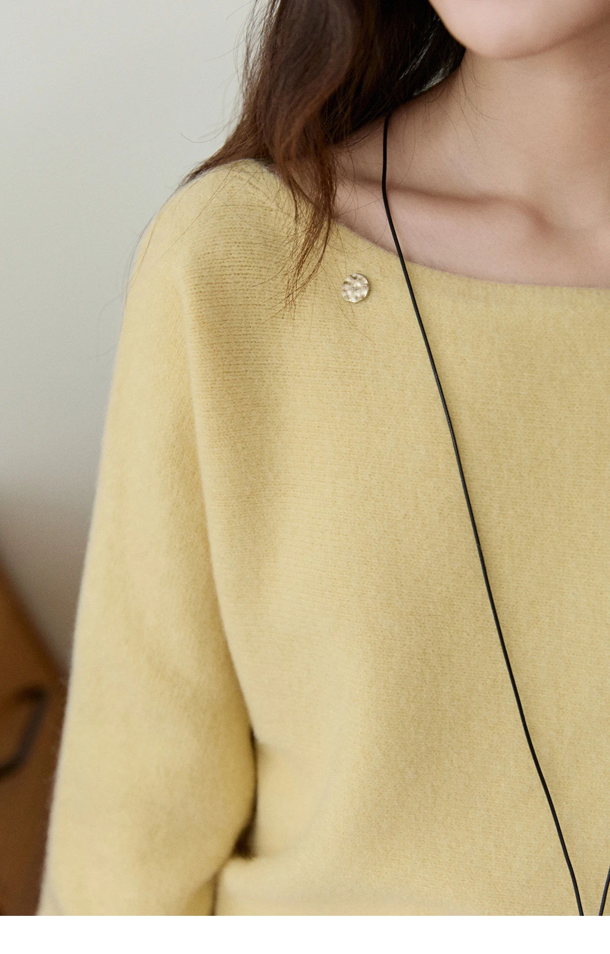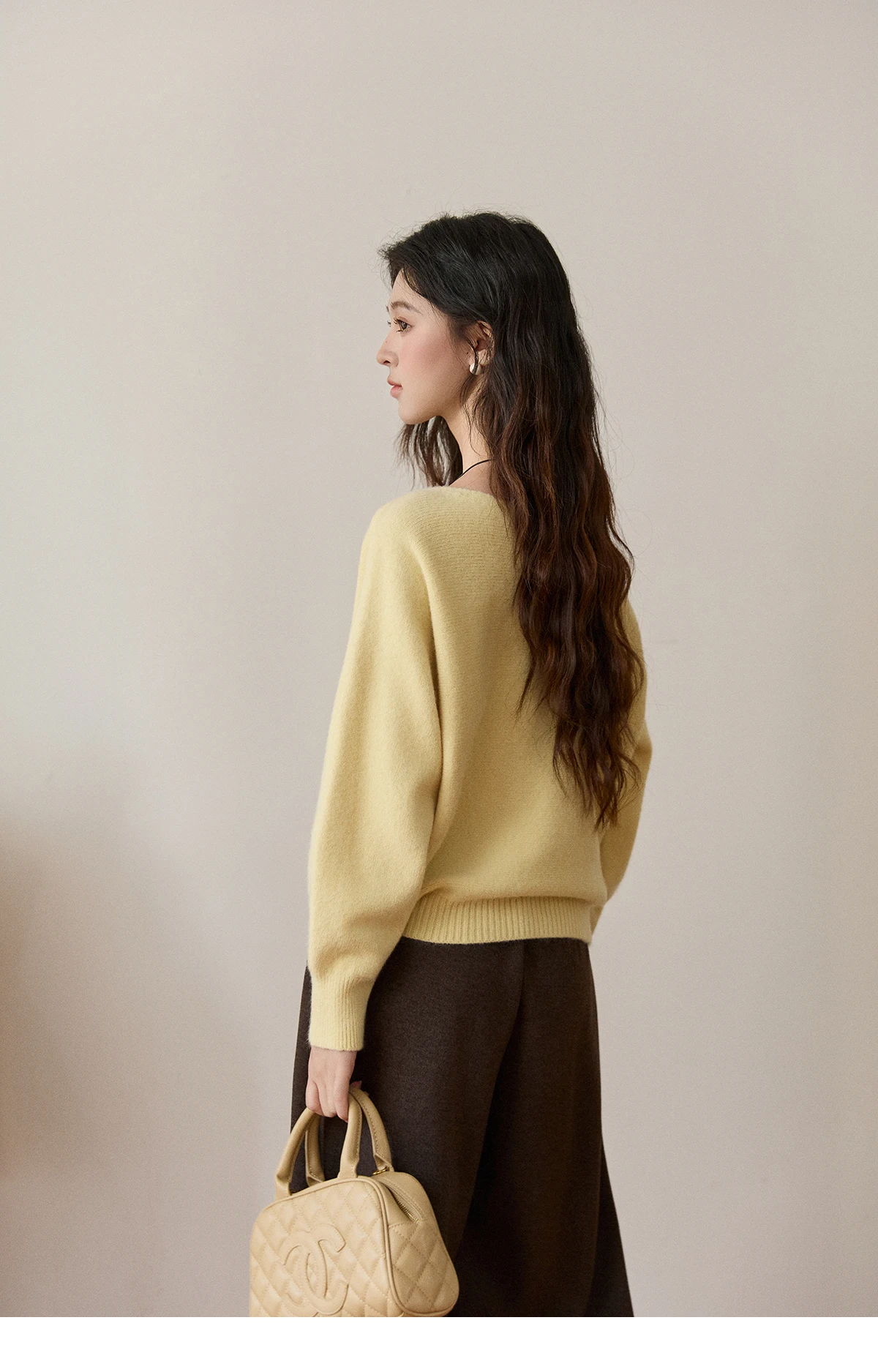 MISHOW Women's Solid Knitted Sweater 2025 Autumn Winter Boat Neck Lantern Sleeve Loose Sweater Soft Warm Pullover Top MXE94Z2984