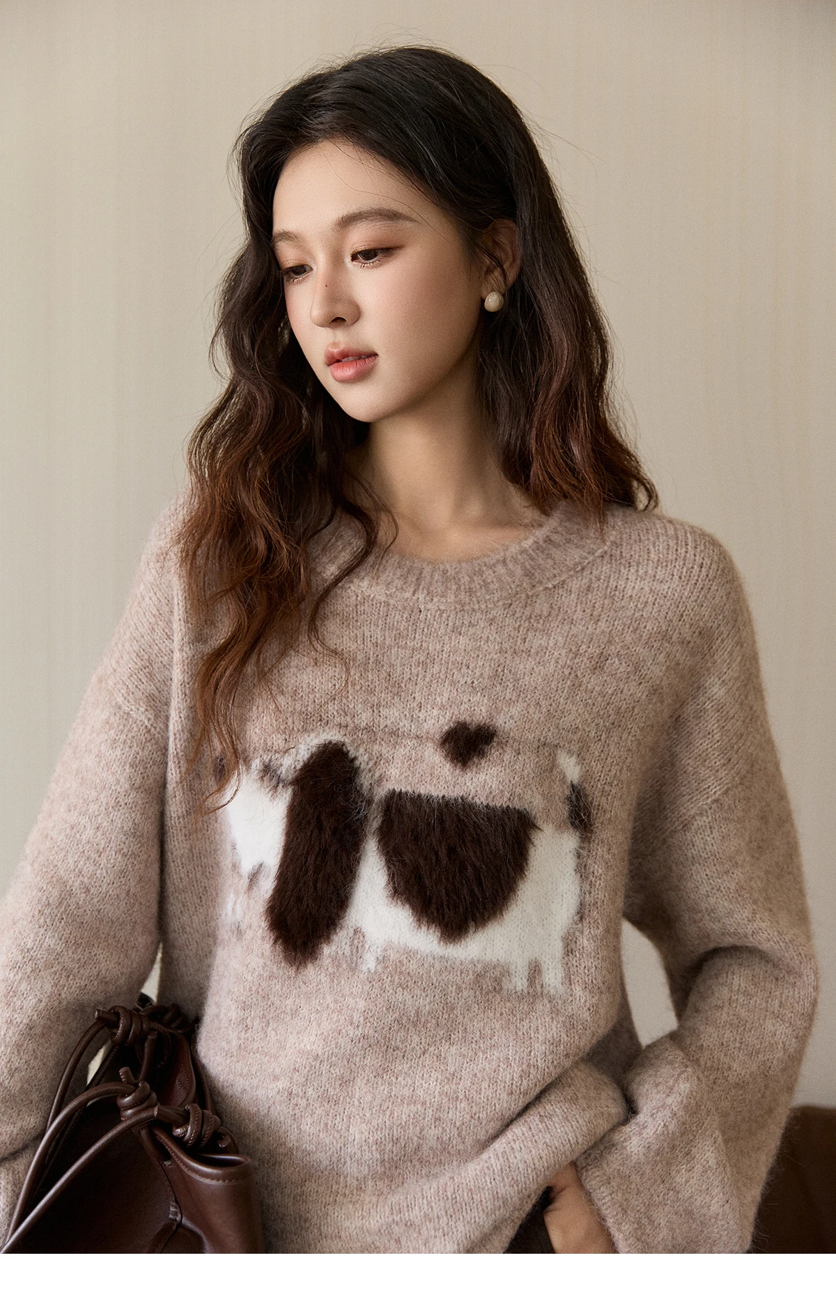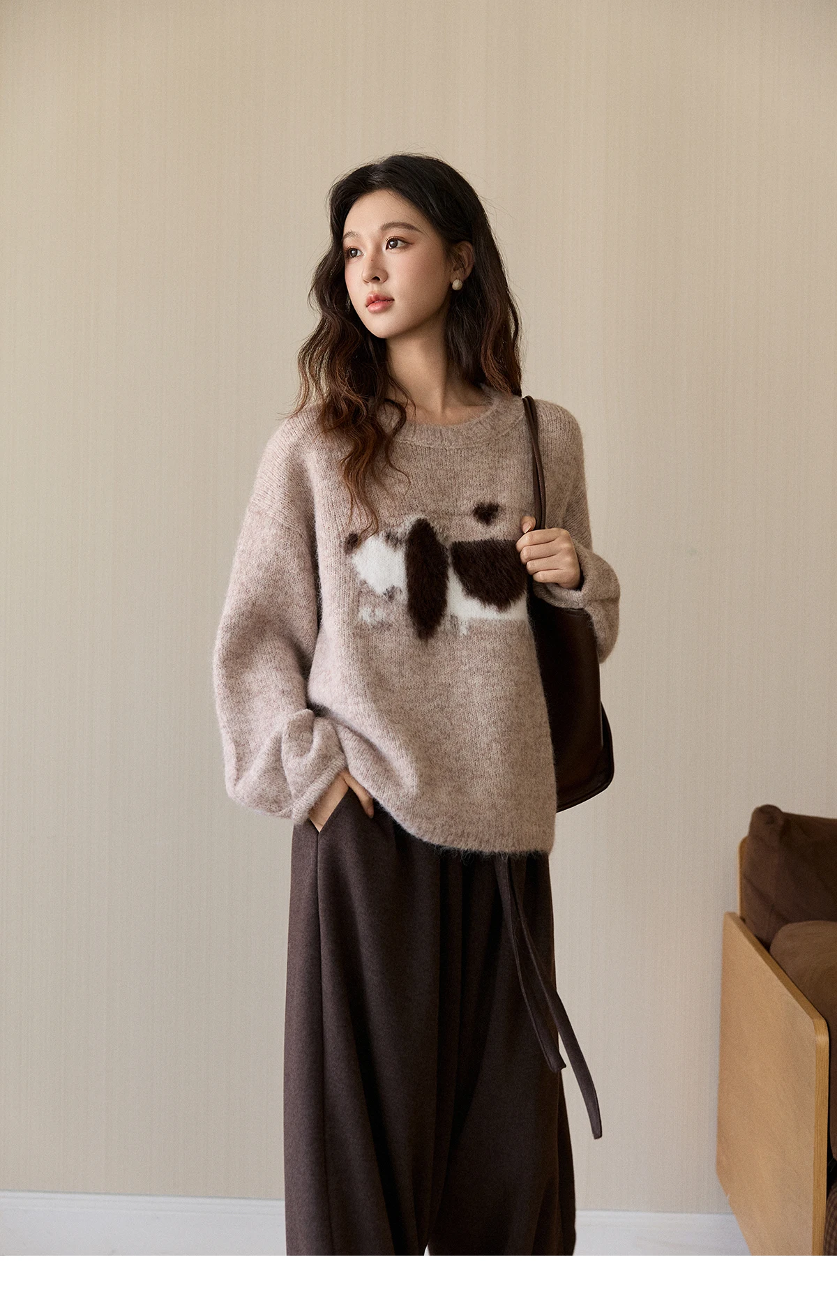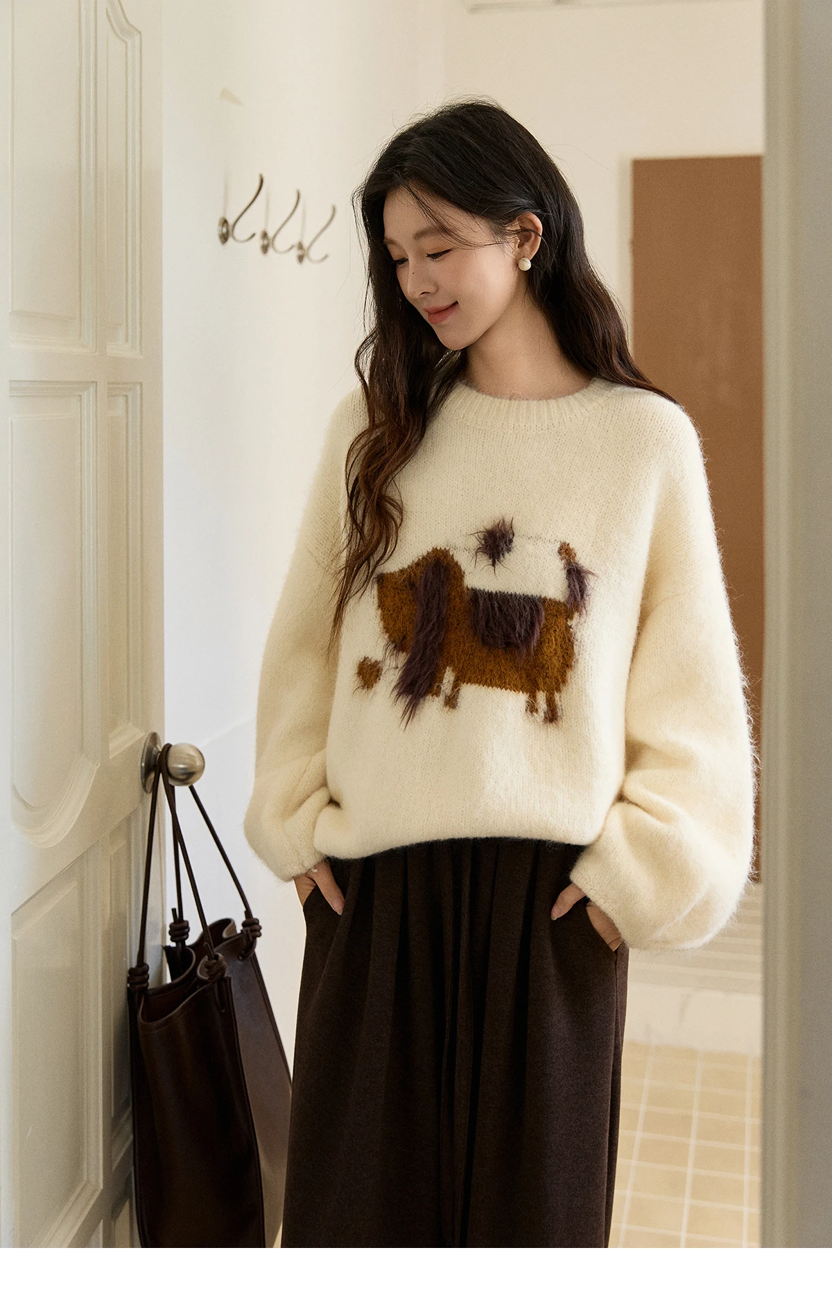 MISHOW Women's Solid Knitted Sweater 2025 Autumn Winter Dog Pattern Jacquard Crew Neck Fluffy Warm Loose Pullover Top MXE94Z2988