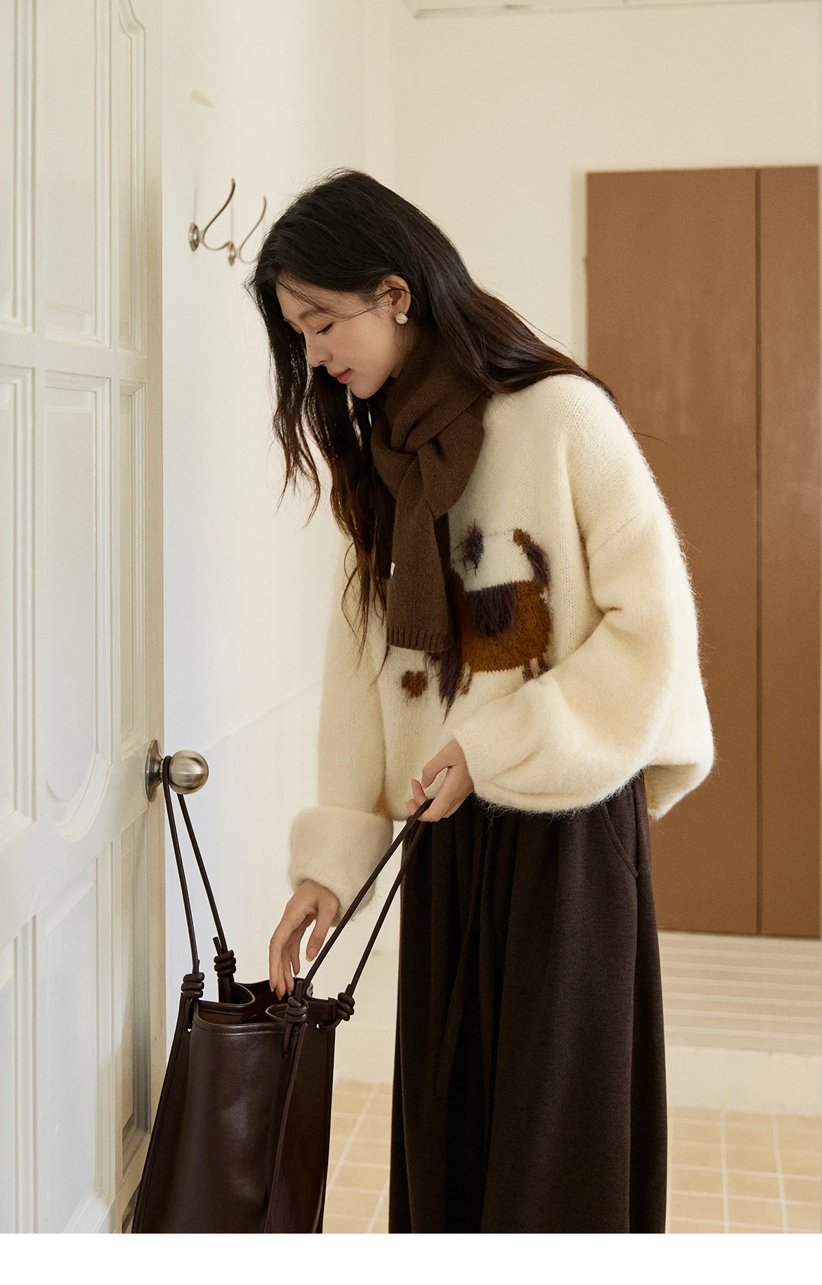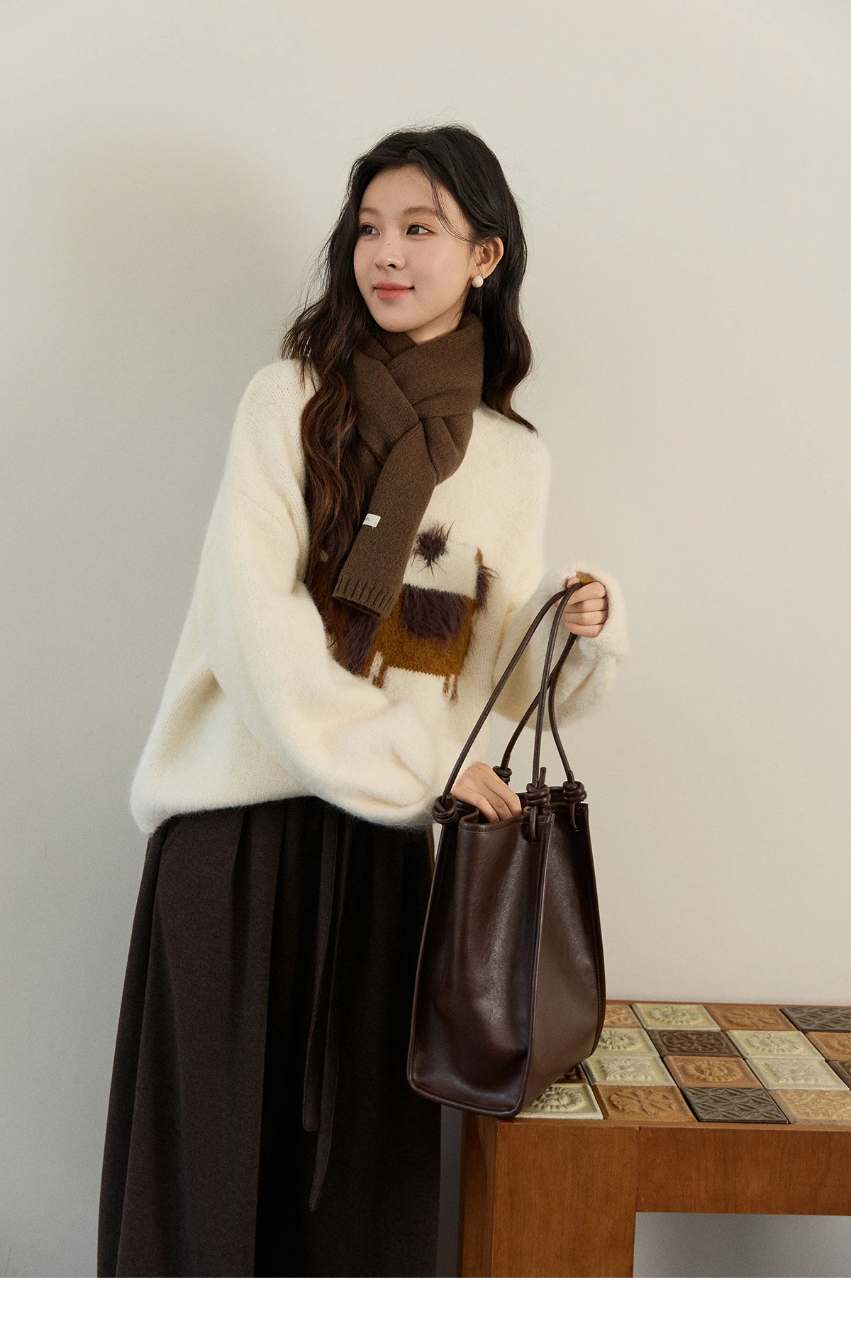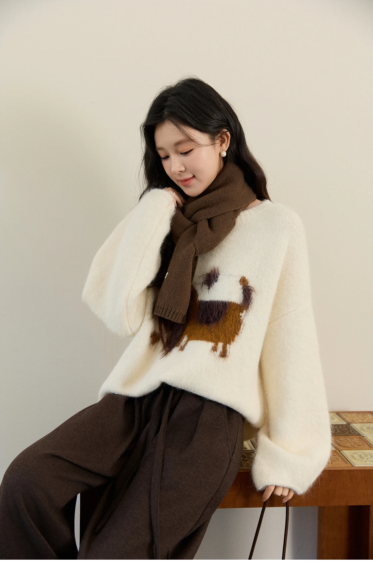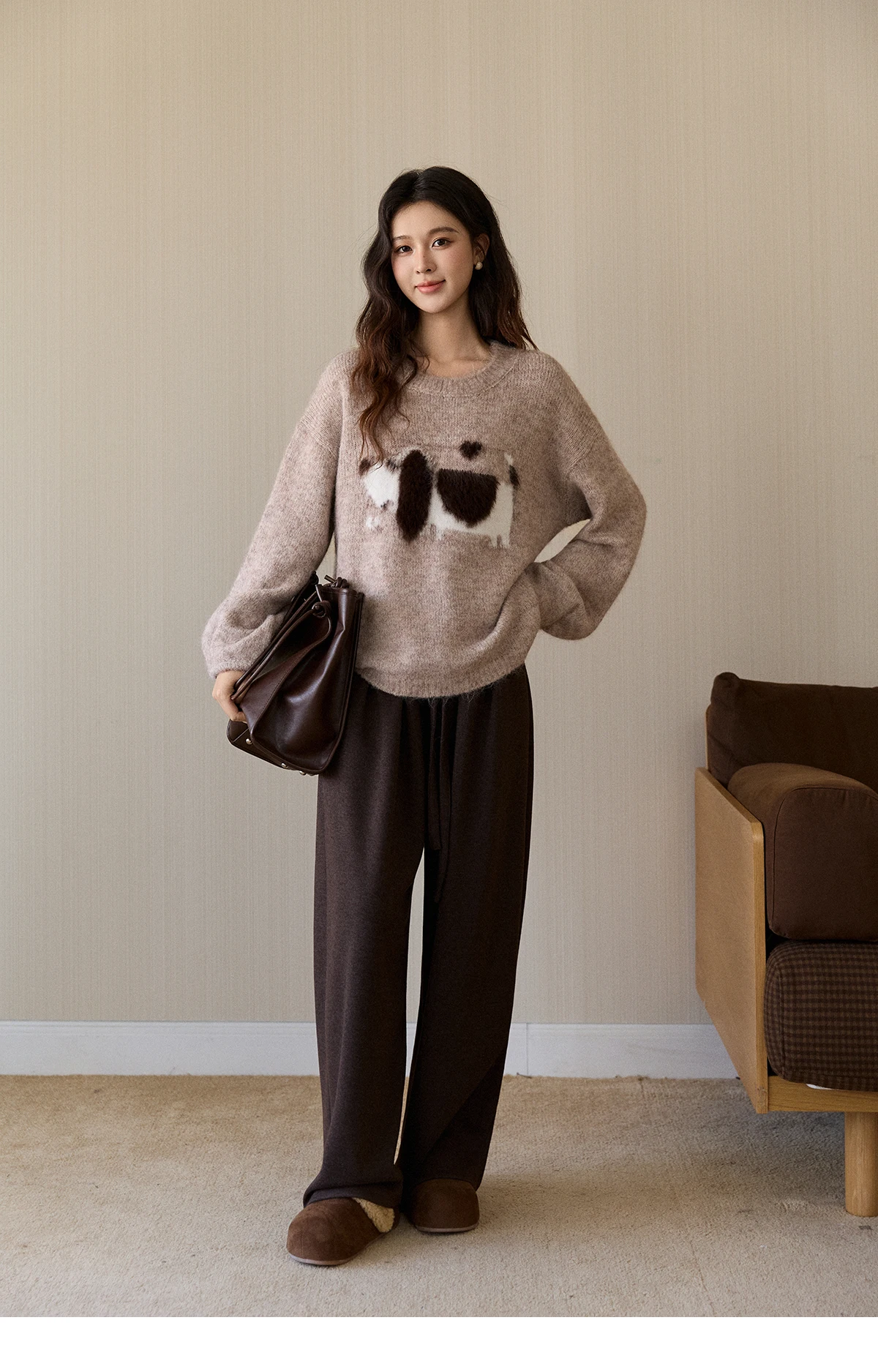 MISHOW Women's Solid Knitted Sweater 2025 Autumn Winter Dog Pattern Jacquard Crew Neck Fluffy Warm Loose Pullover Top MXE94Z2988