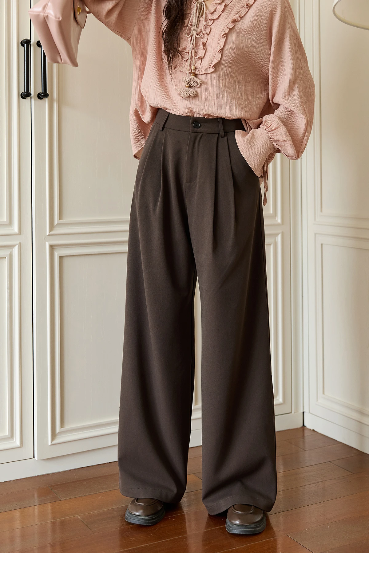 MISHOW Women's Solid Wide-leg Pants 2025 Autumn Fashion Minimalist High-waisted Loose Trousers Commute Pockets Pants MXE46K1090