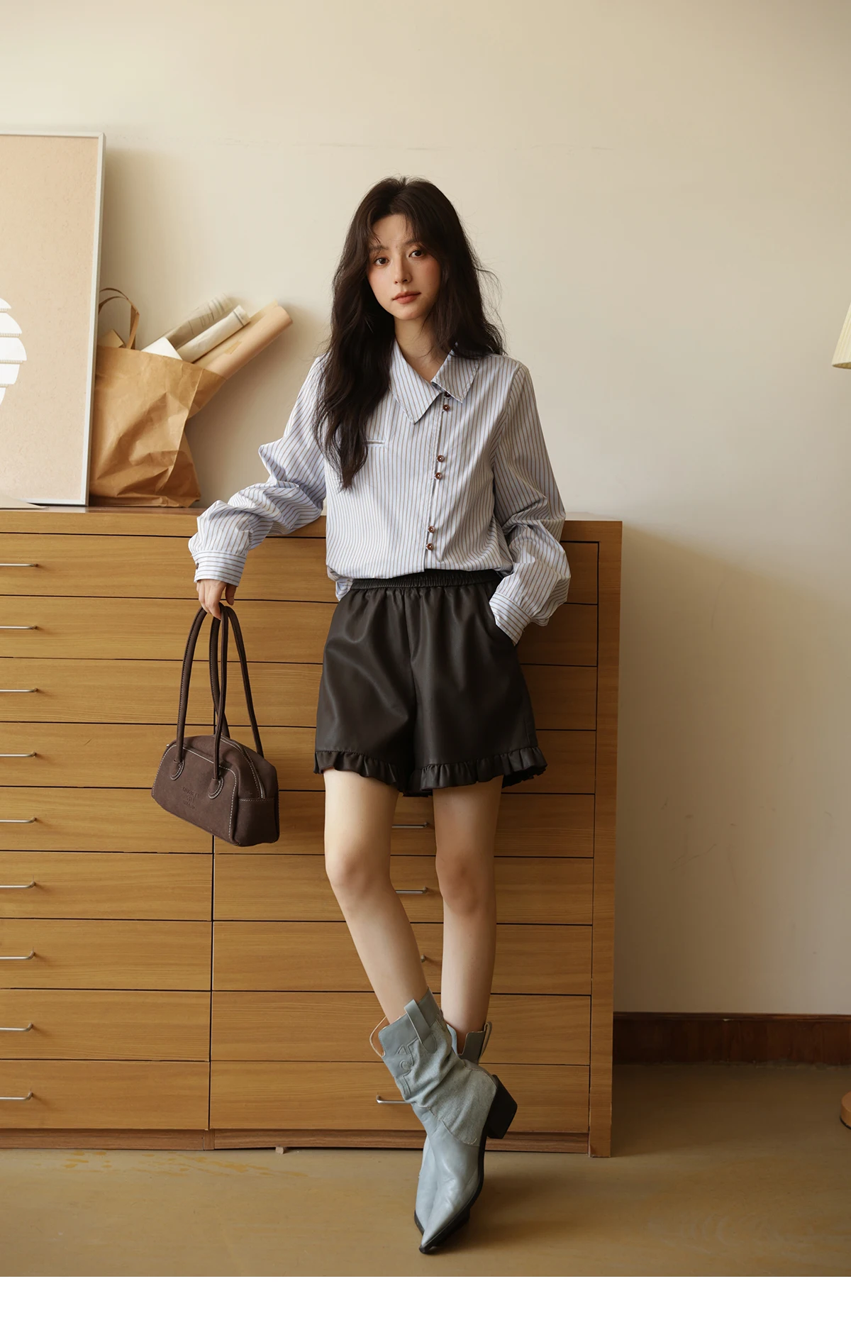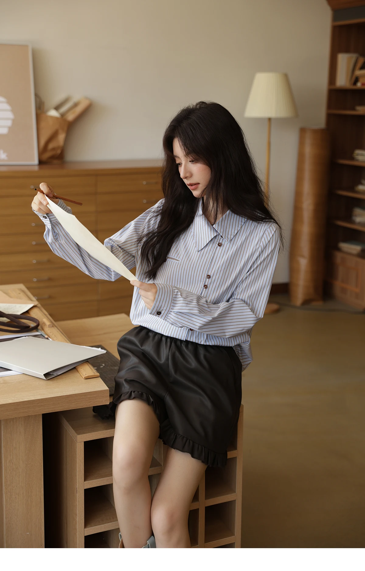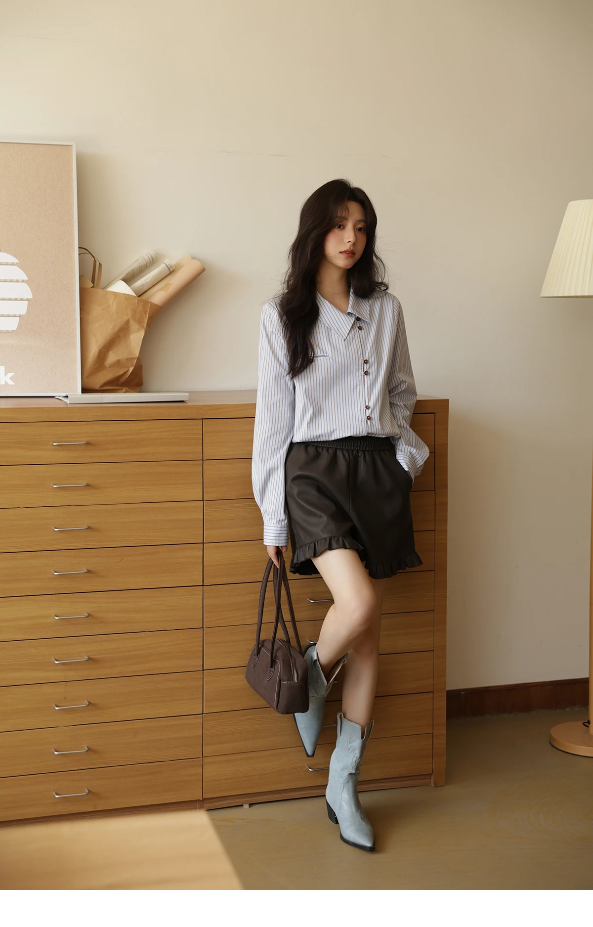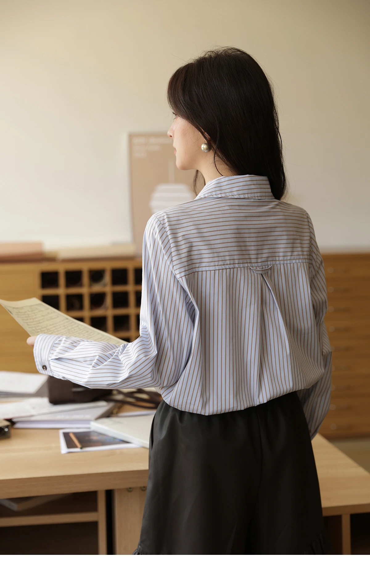 MISHOW Women's Striped Asymmetric Shirt 2025 Autumn New Arrival Vintage Loose Long Sleeve Tops Commuter Woman Clothes MXE42C2375