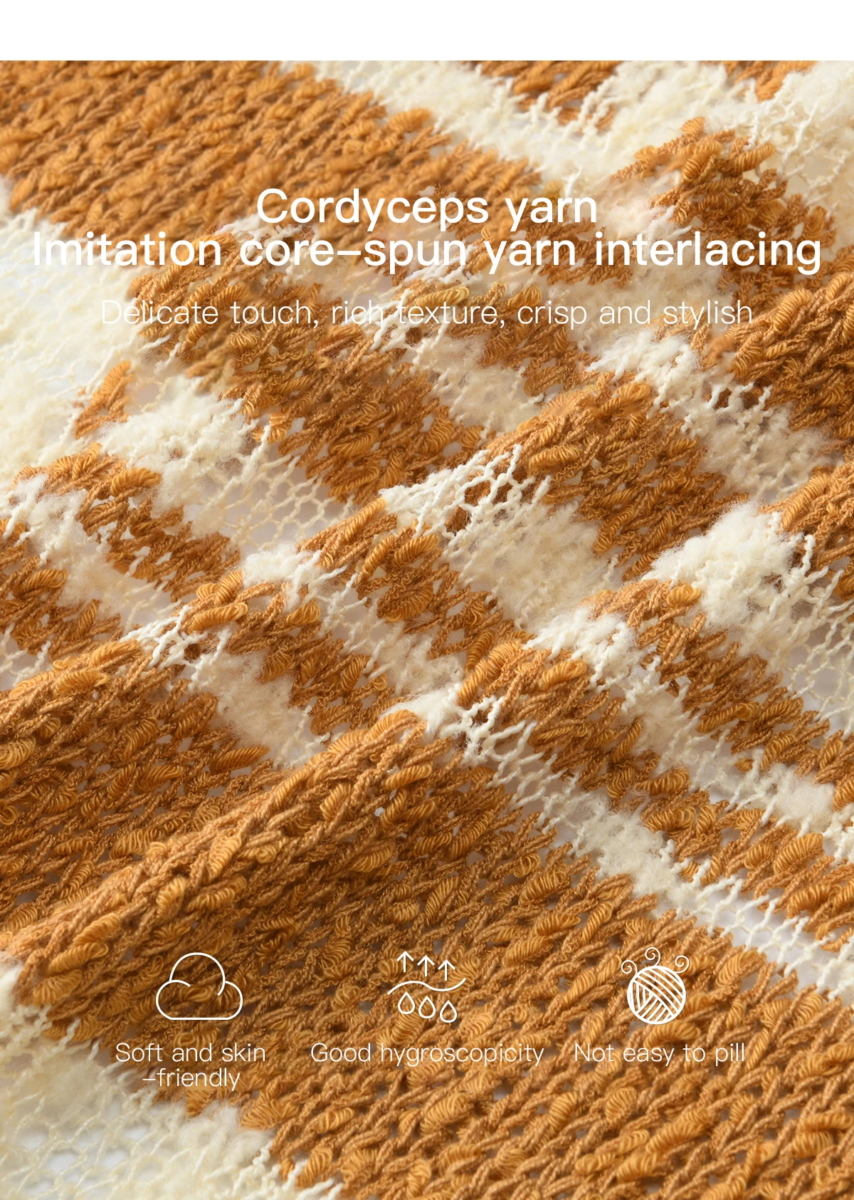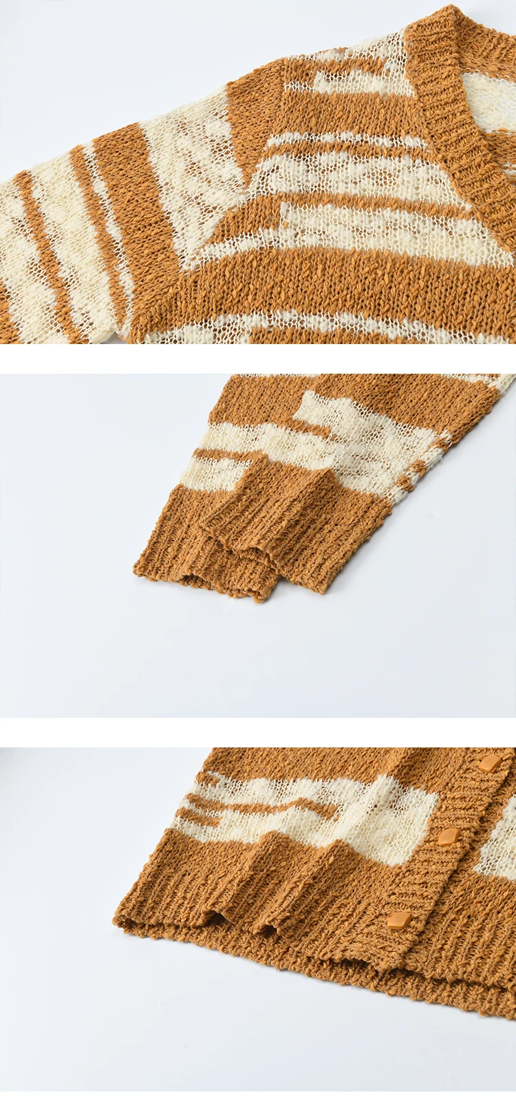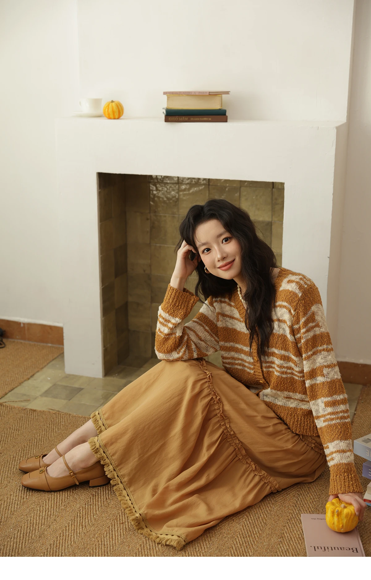 MISHOW Women's Striped Cardigan 2025 Autumn New Retro Yellow V-neck Long Sleeves Single-breasted Short Sweater Coats MXE44Z2516