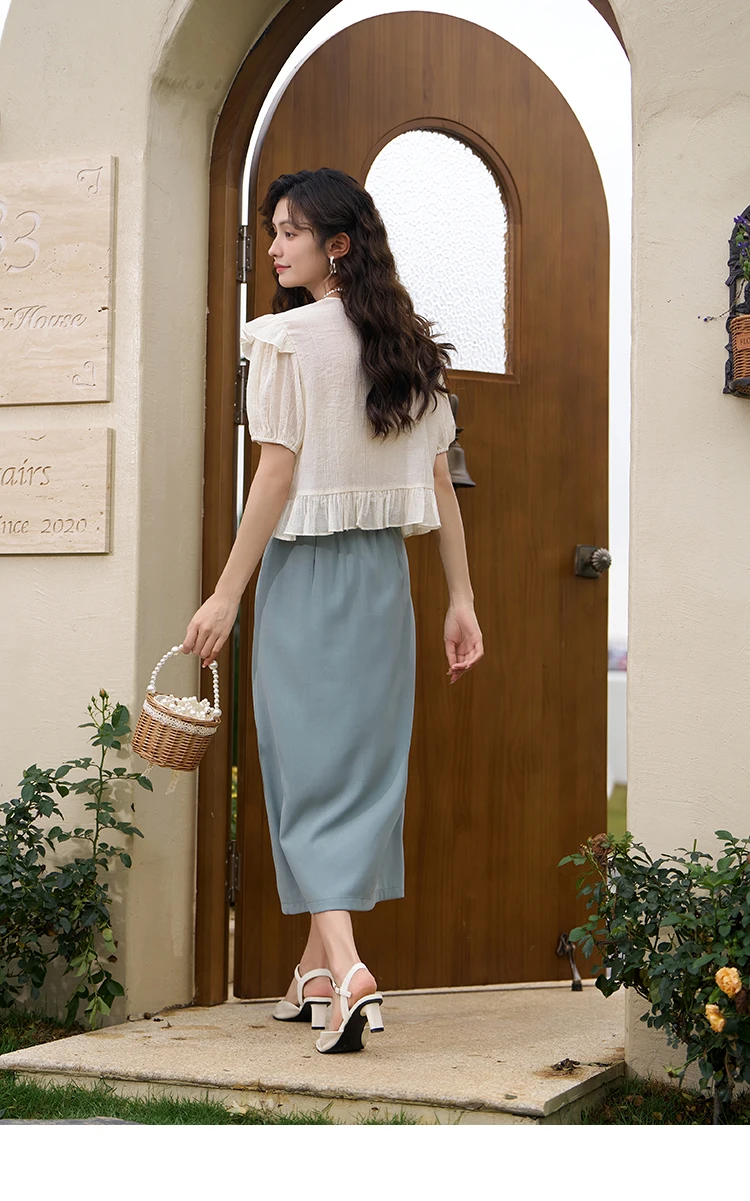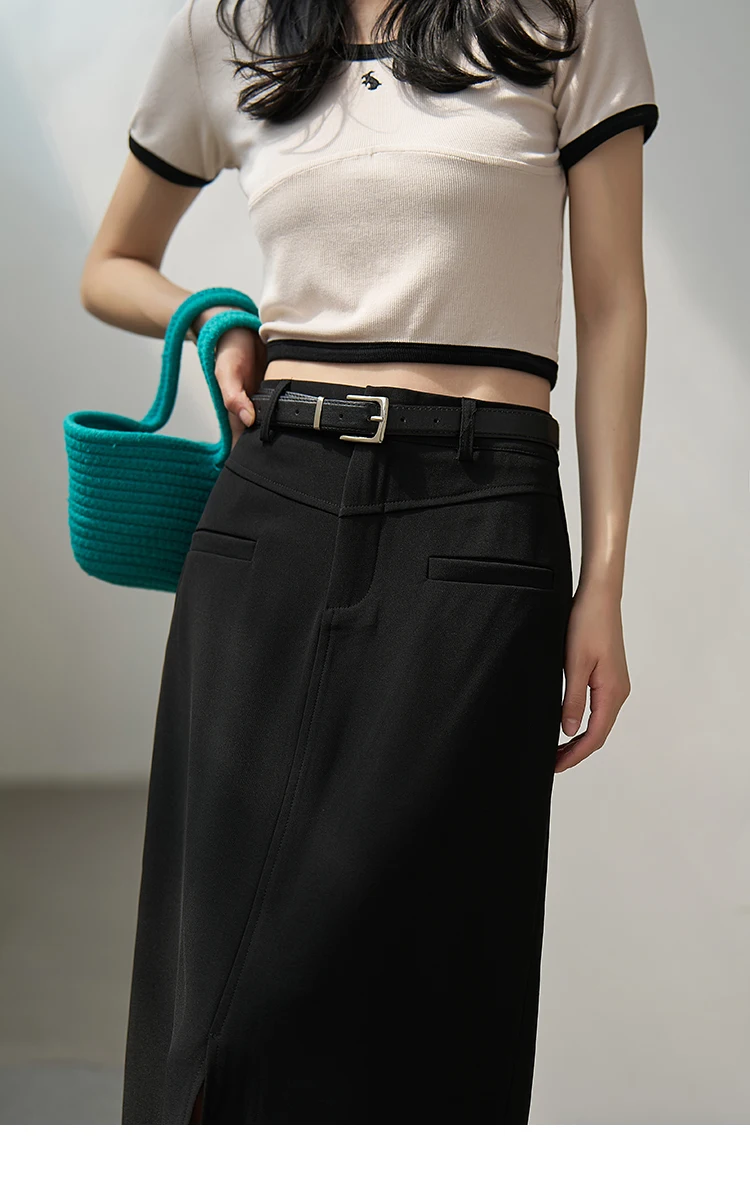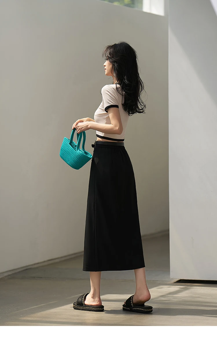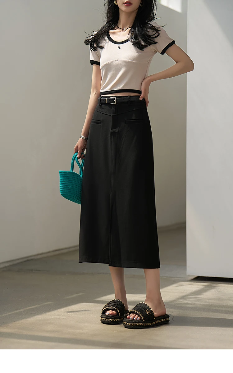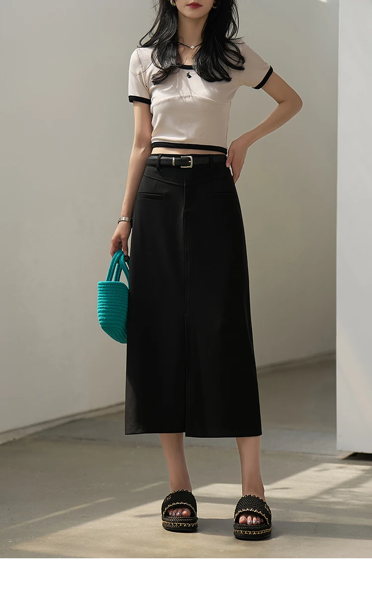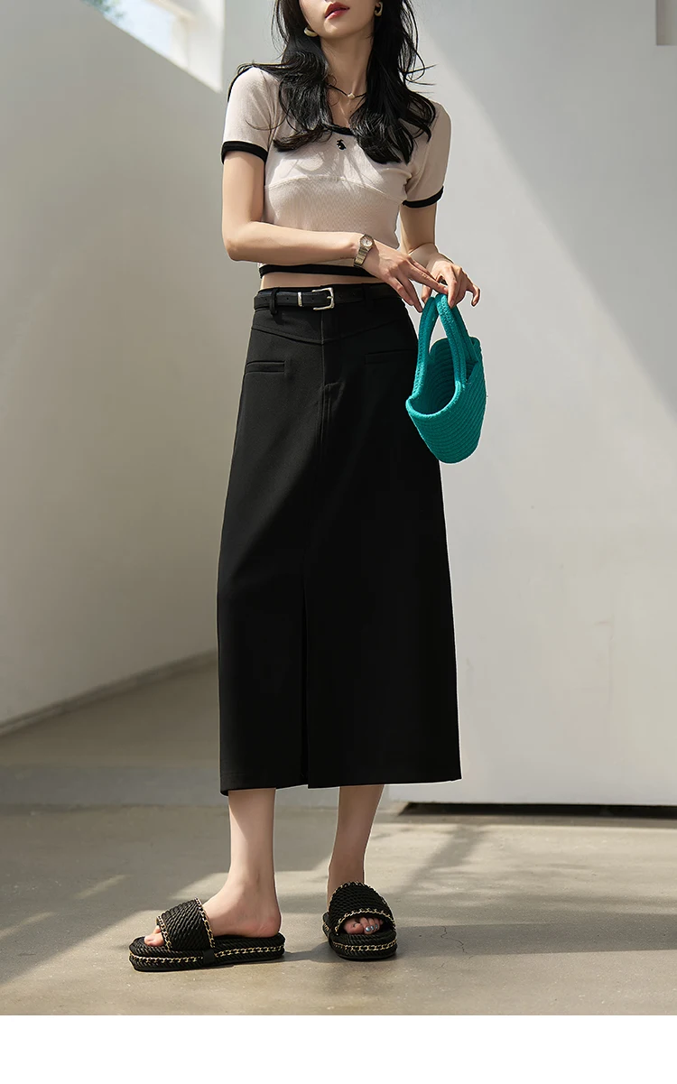 MISHOW Women's Suit Straight Midi Skirt 2025 Summer High Waist Slim Solid Front Fork Female Rear Elastic Waist Skirts MXC15B0026