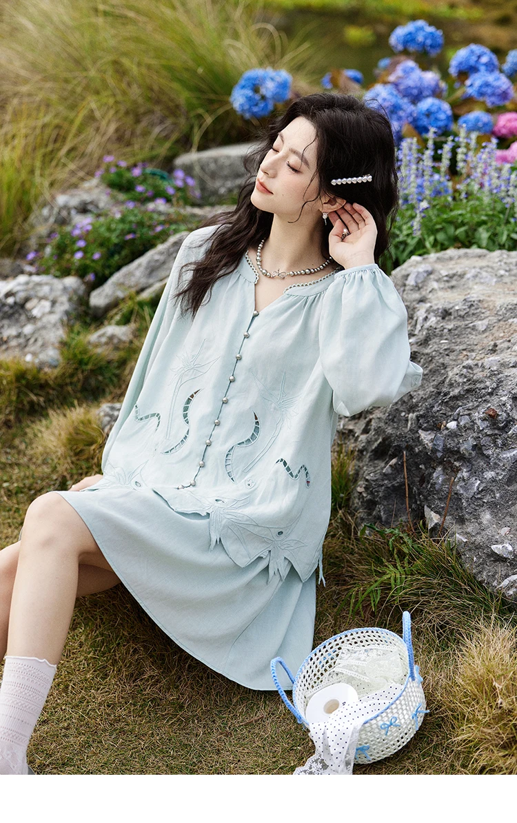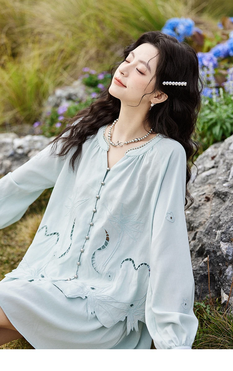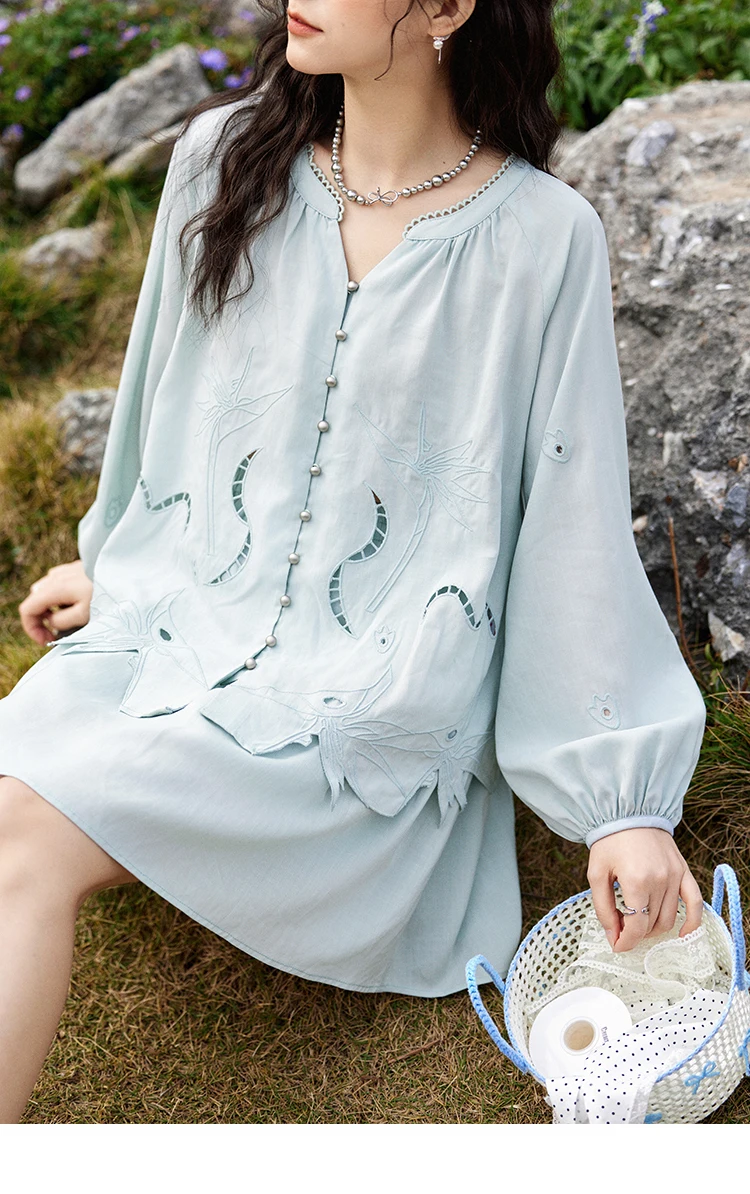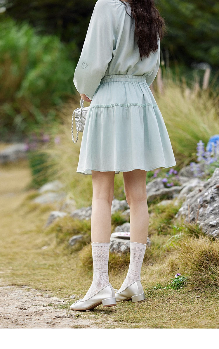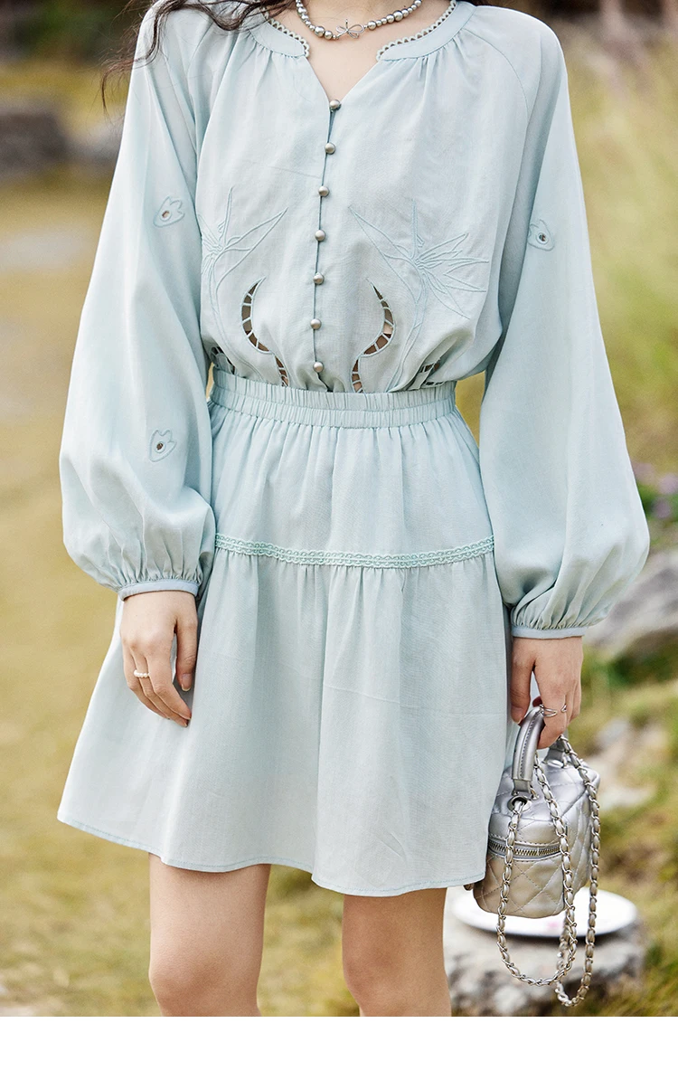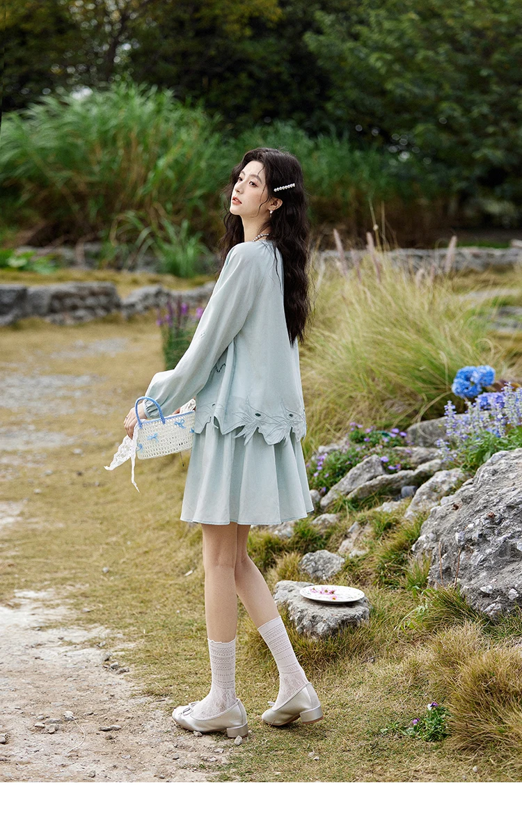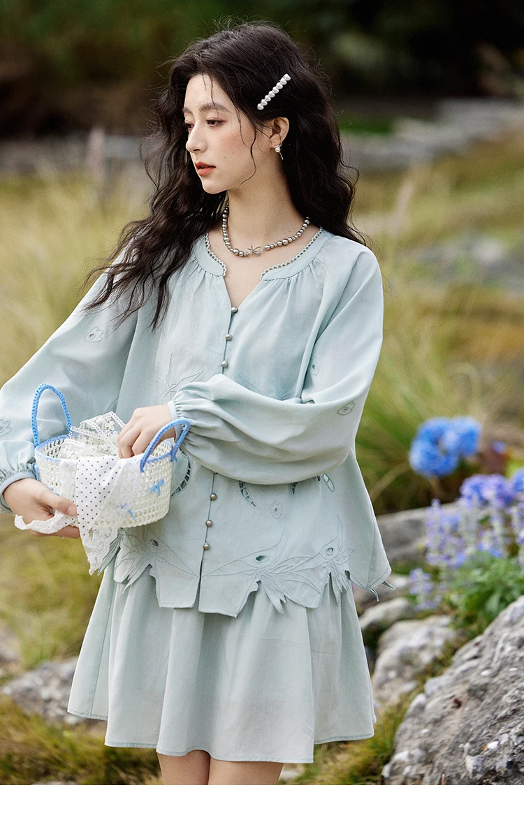 MISHOW Women's Sweet Blouses A-line Skirts Set Vintage Hollow Out Embroidery Loose Shirt Solid Skirt Two-piece Set MXE12T0455