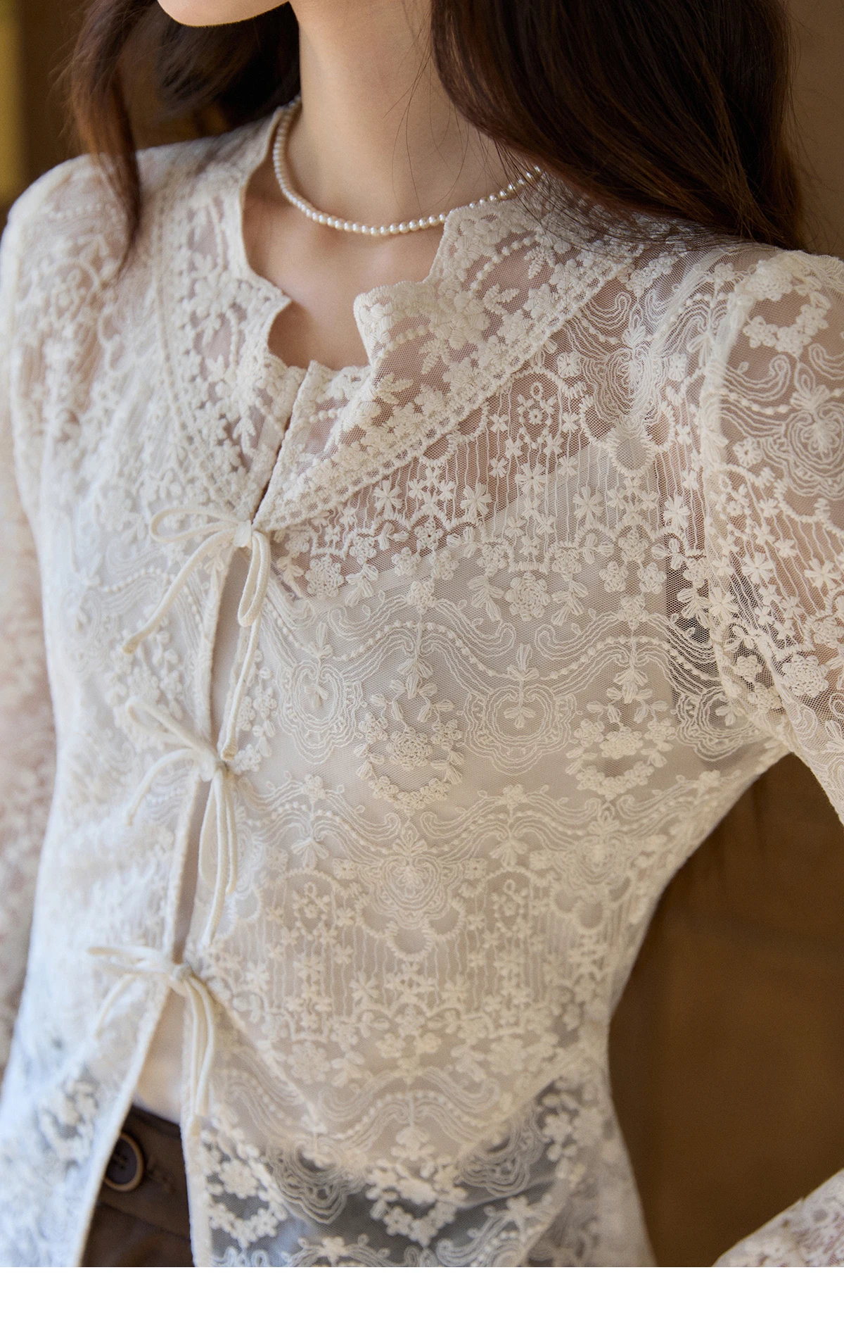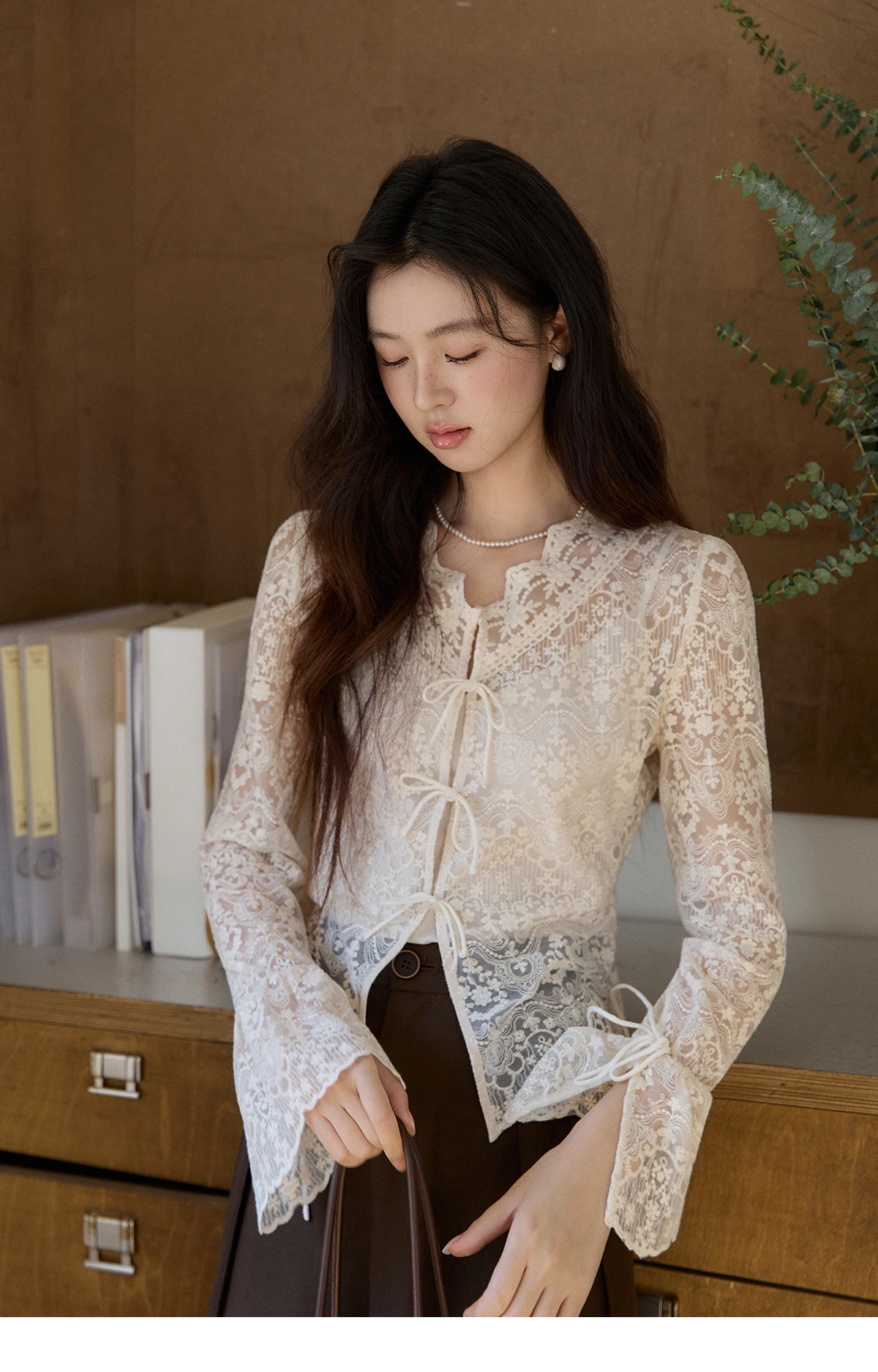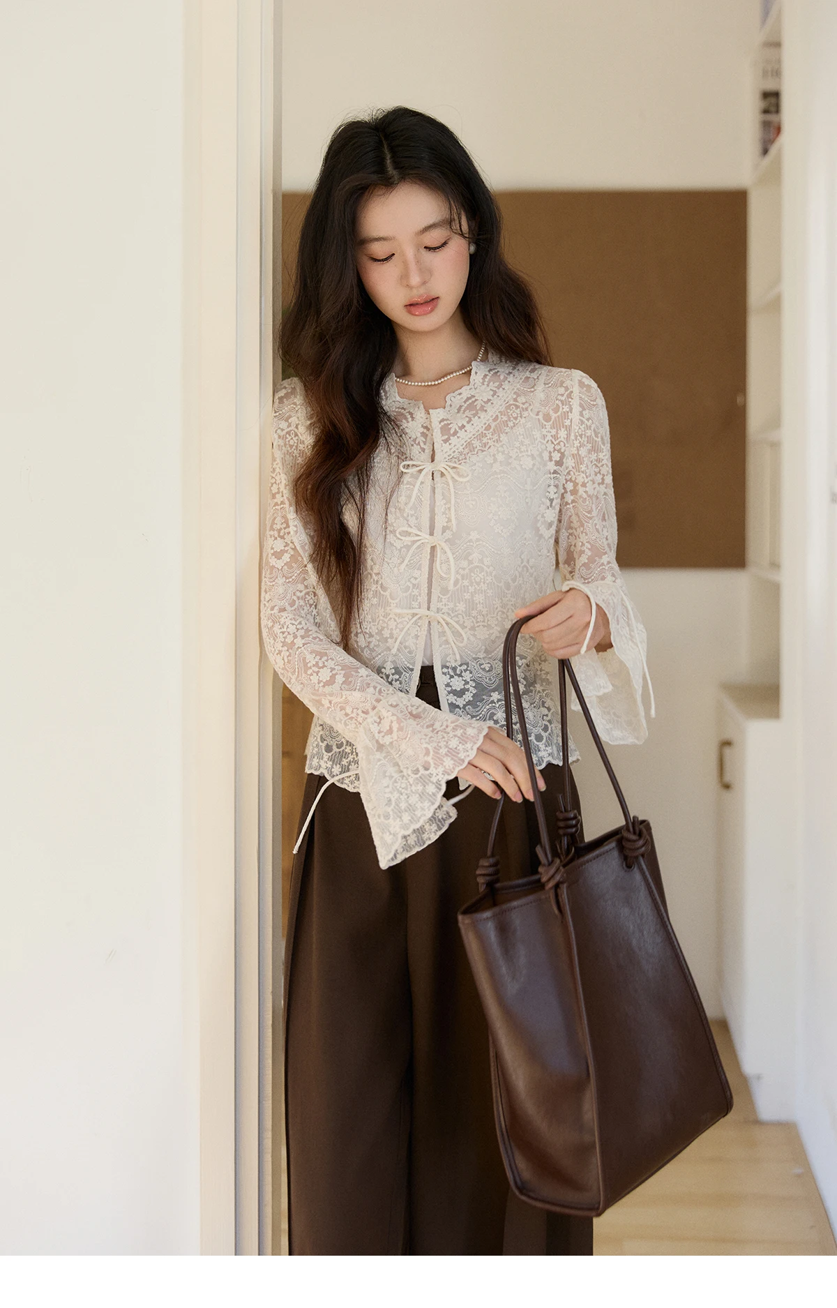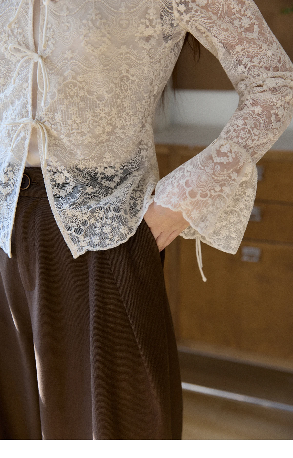 MISHOW Women's Sweet Lace Top Camisole Set Spring Tie Front Flare Sleeve Sheer Casual Elegant Two-Piece Knitwear MXF108X1001