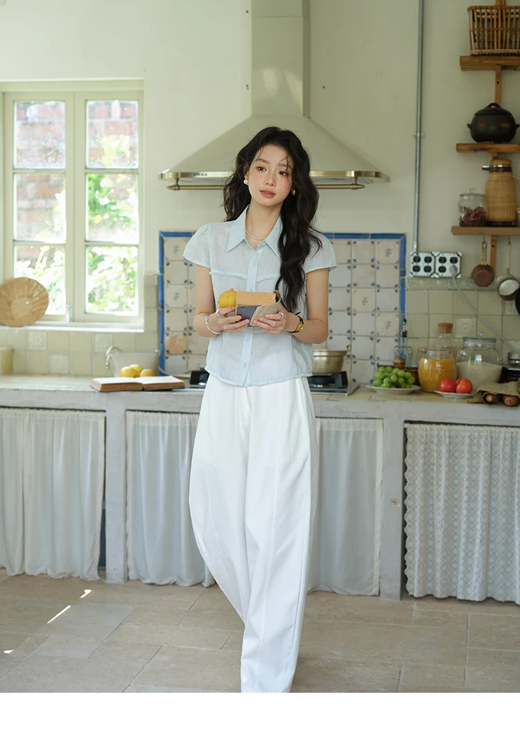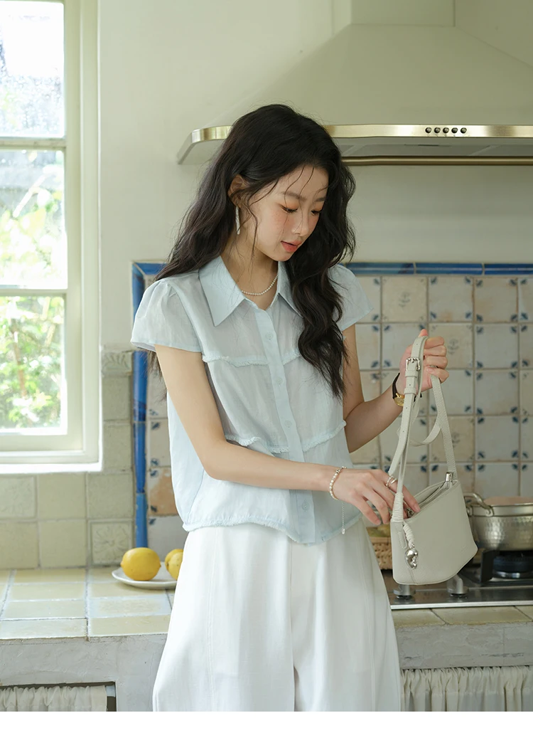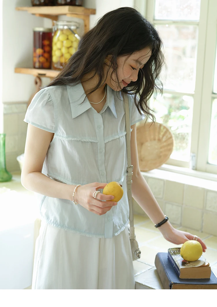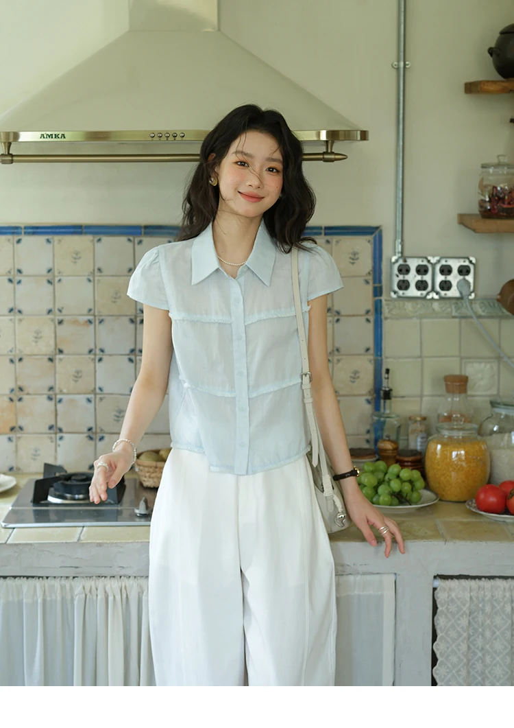 MISHOW Women's Turn-down Collar Button Casual Shirt 2025 Summer New Ladies Wear Edge Splicing Commut Short Sleeve Top MXE39C2363