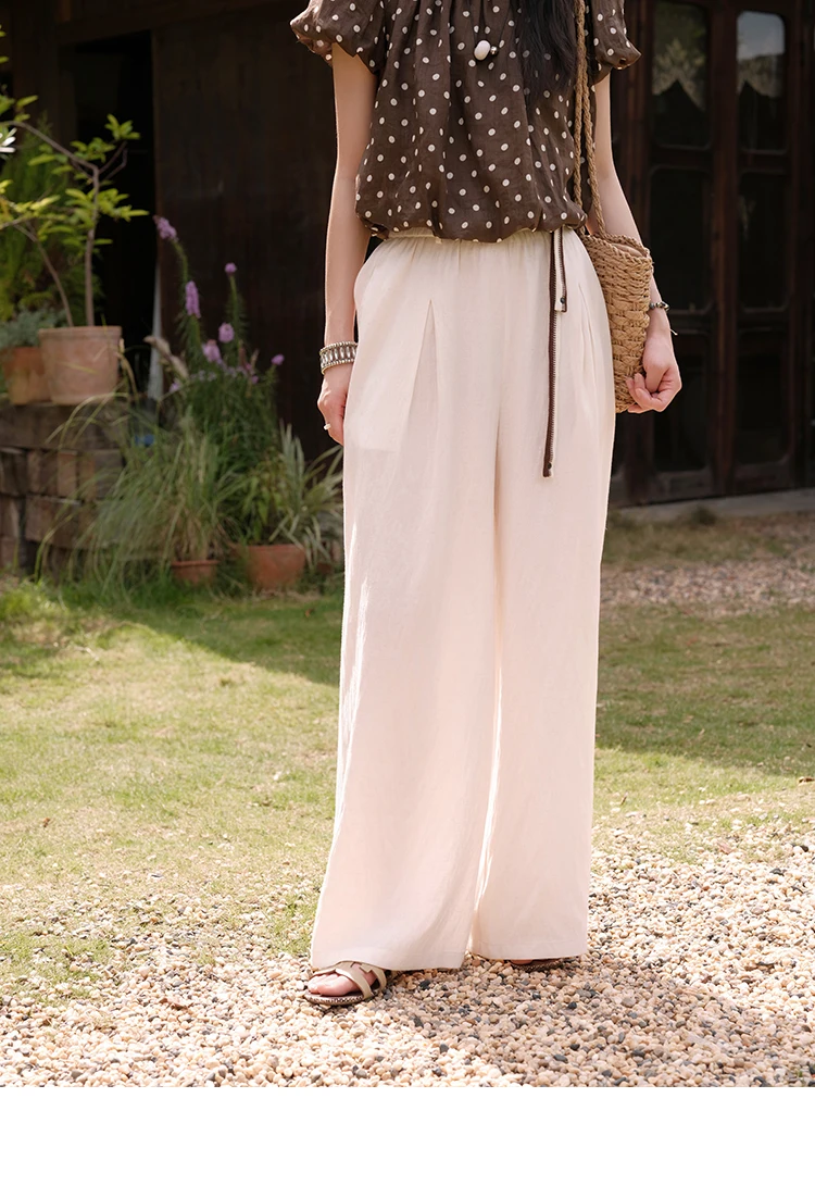 MISHOW Women's Two-Piece Set Fashion Polka Dot One Shoulder Puff Sleeve Blouse Summer 2025 Casual Wide Leg Pants Set MXE38T0683