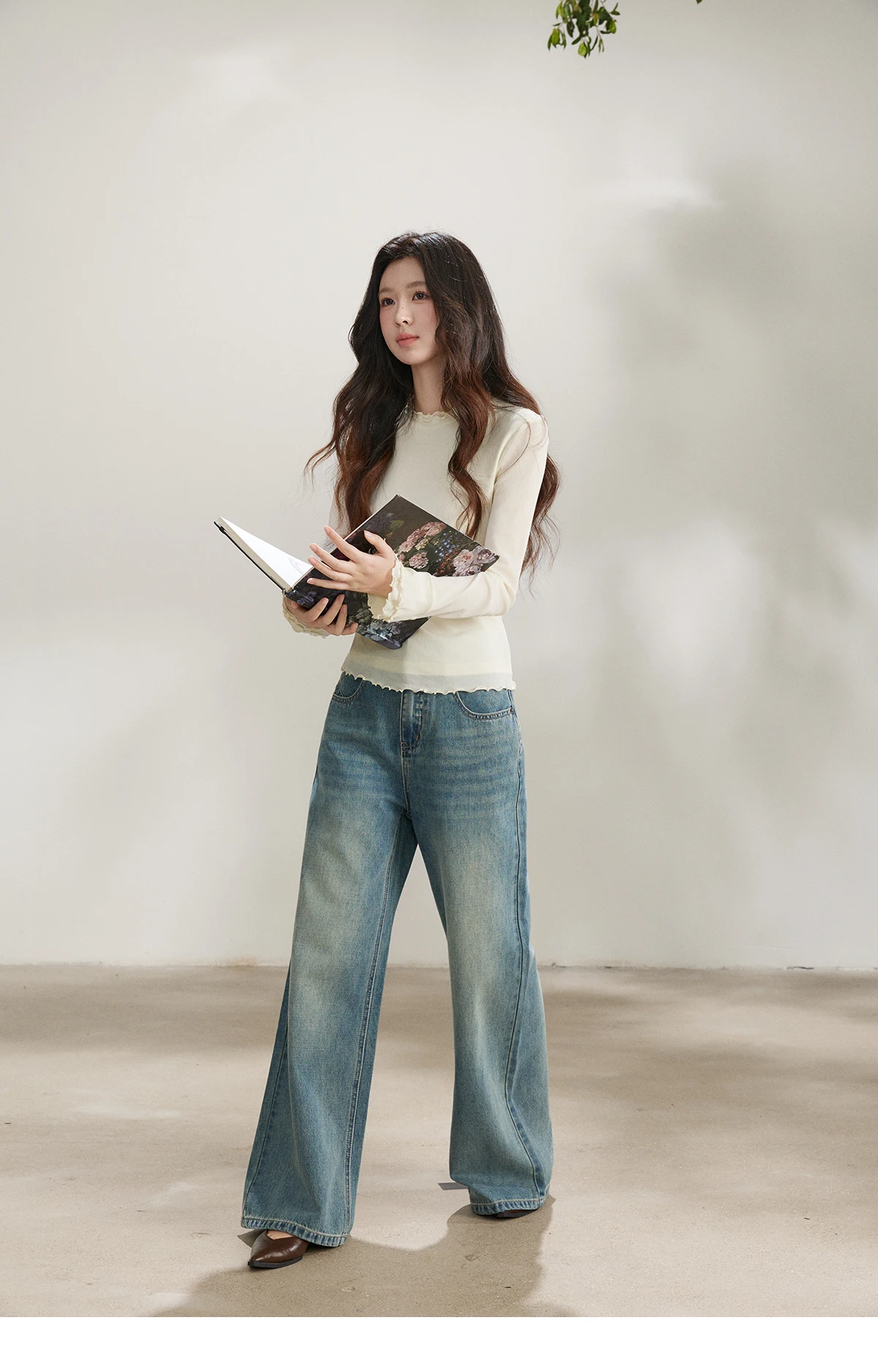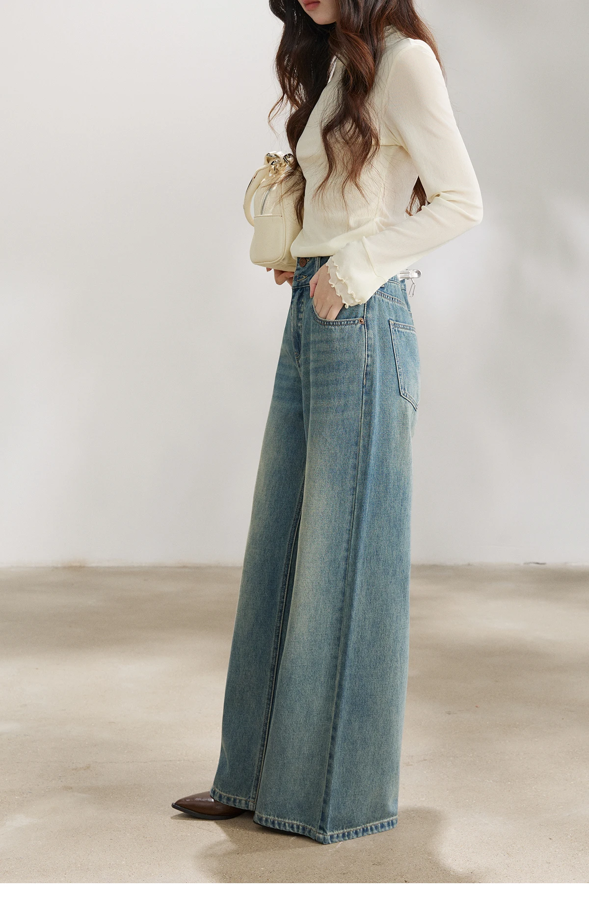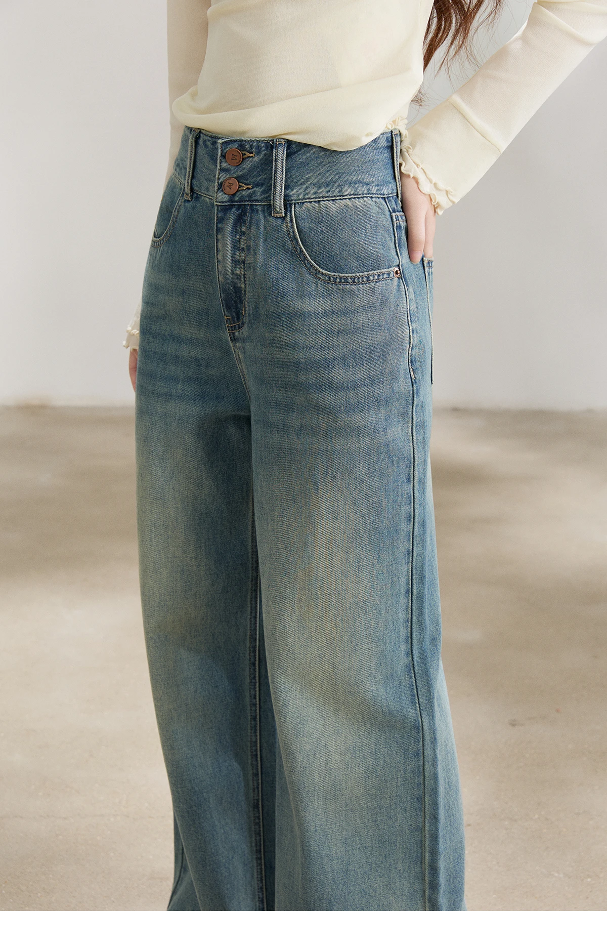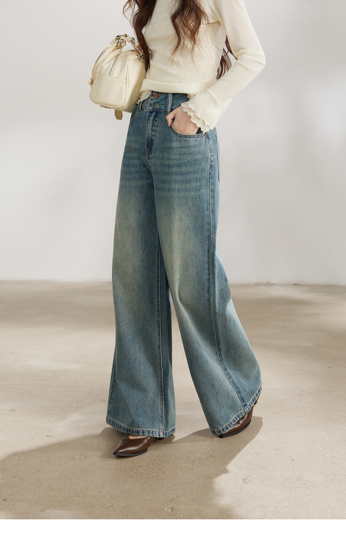 MISHOW Women's Vintage Blue Wide Leg Jeans Spring High Waist Cotton Pants Two-button Loose Casual Denim Trousers MXF108K1005