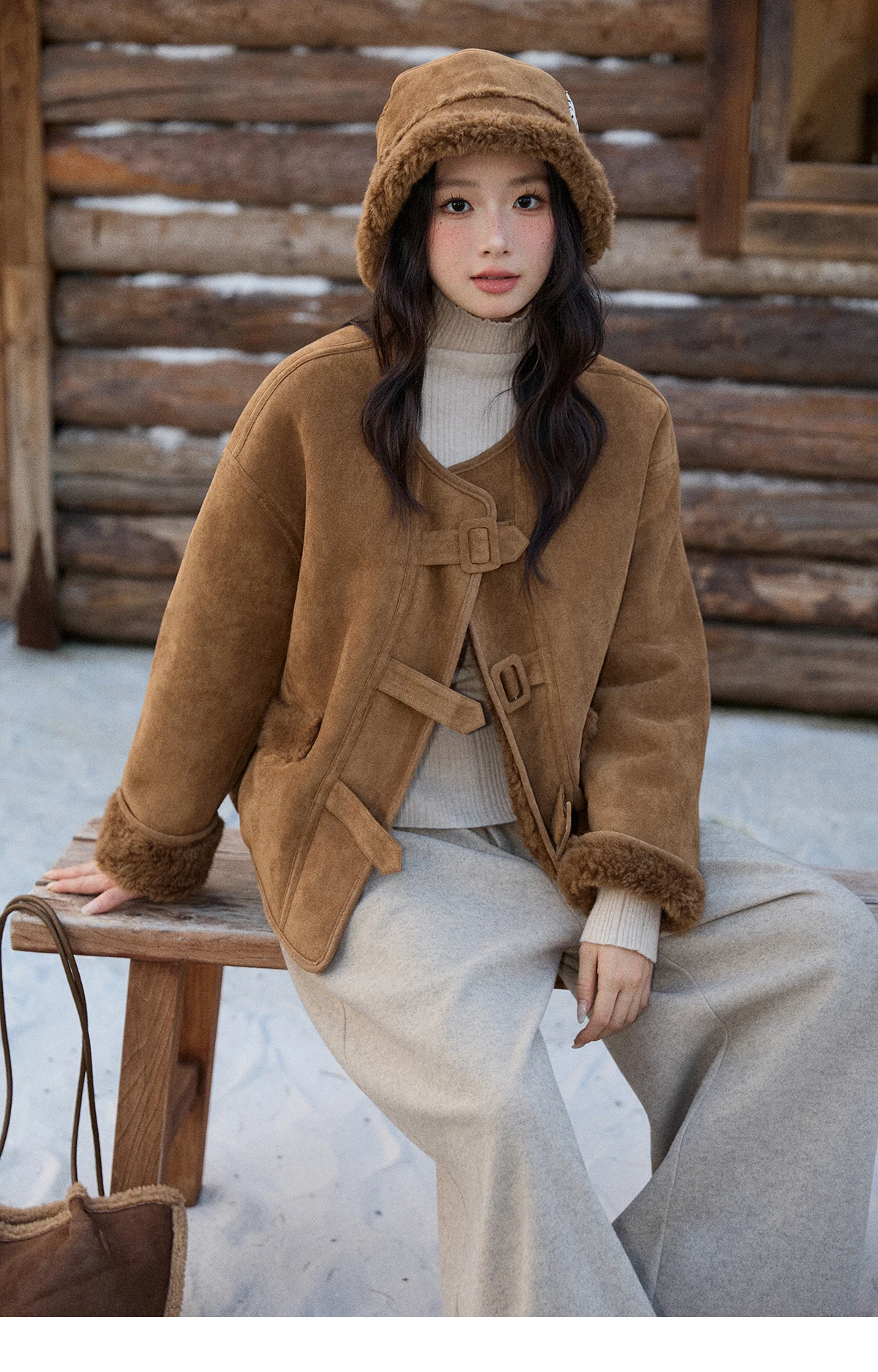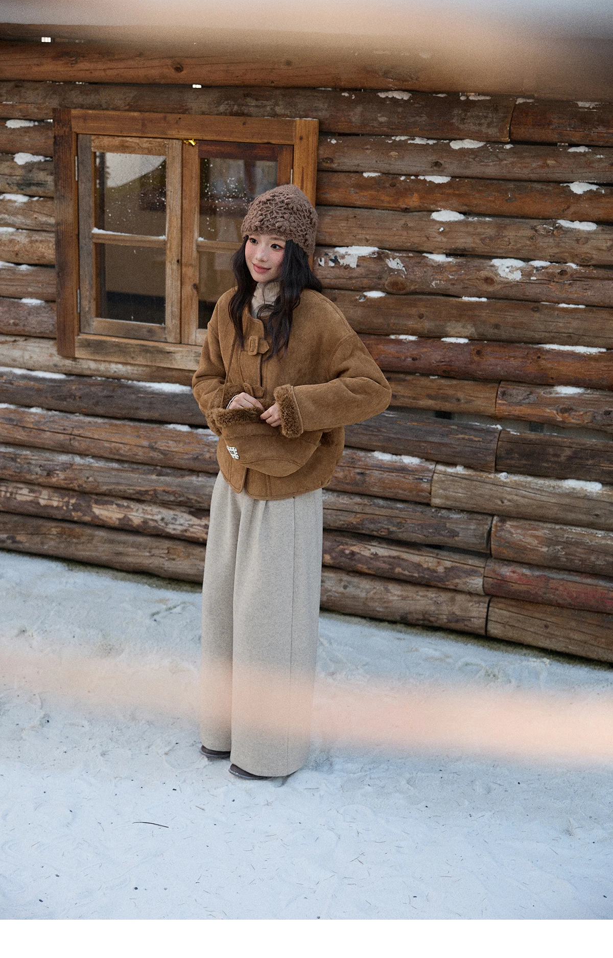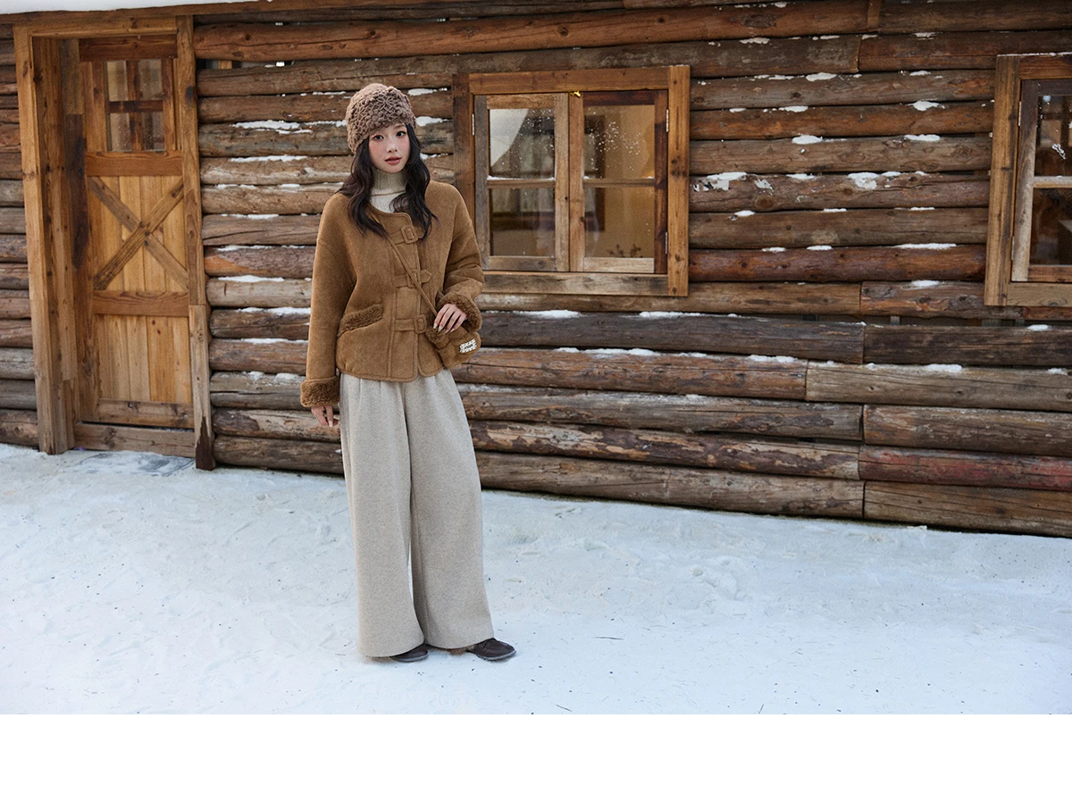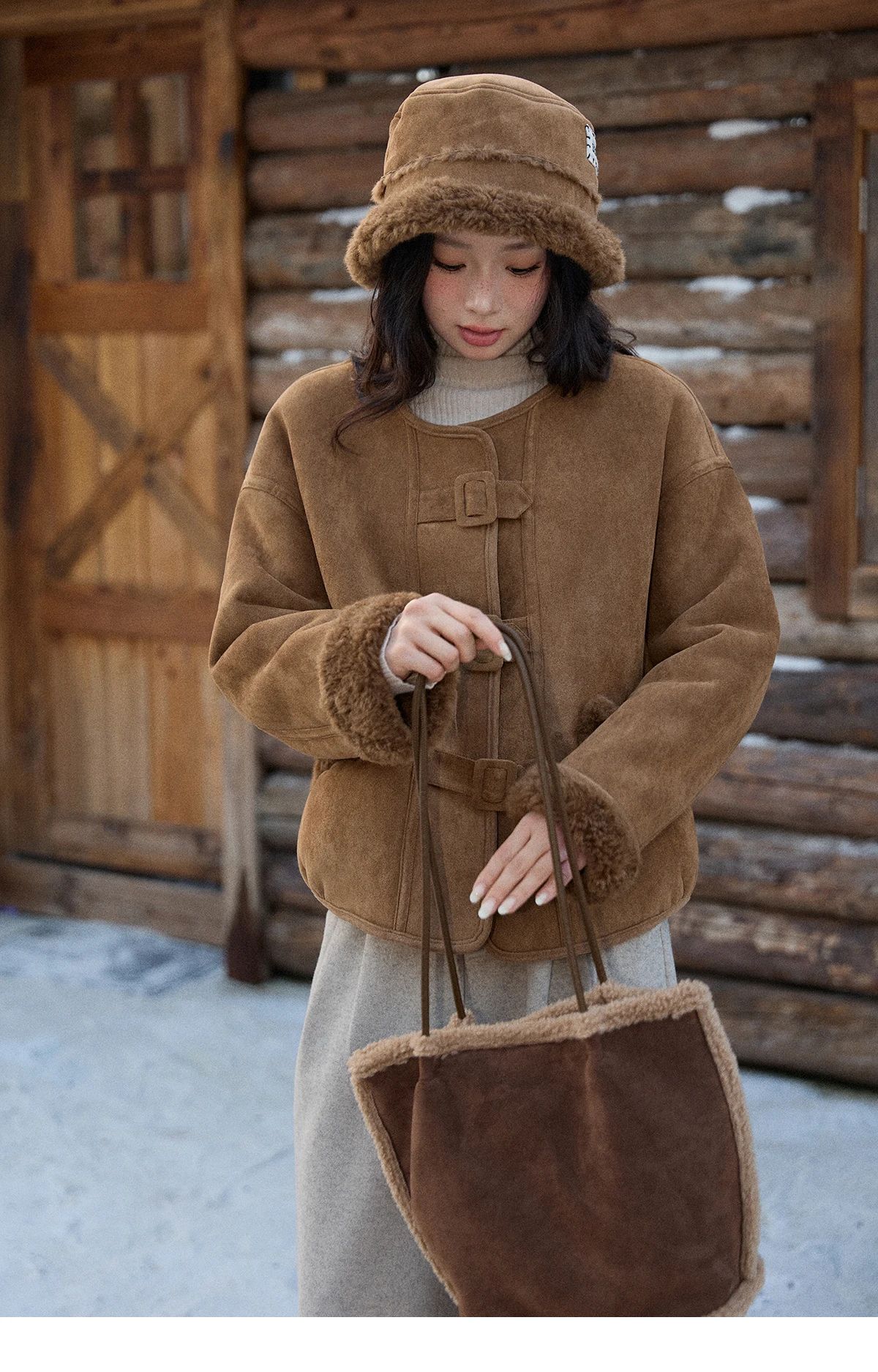 MISHOW Women's Warm Jacket 2025 Retro Luxury Brown Round Neck Long Sleeve Coat Commuting Windproof Loose Coat Woman MXE90W0994