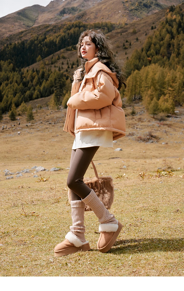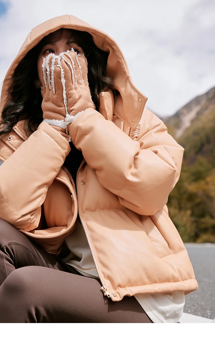 MISHOW Women's Winter Down Jacket 2023 Hooded Short White Duck Down Coats Imitation Protein Leather Puffer Jackets MXC52Y0008