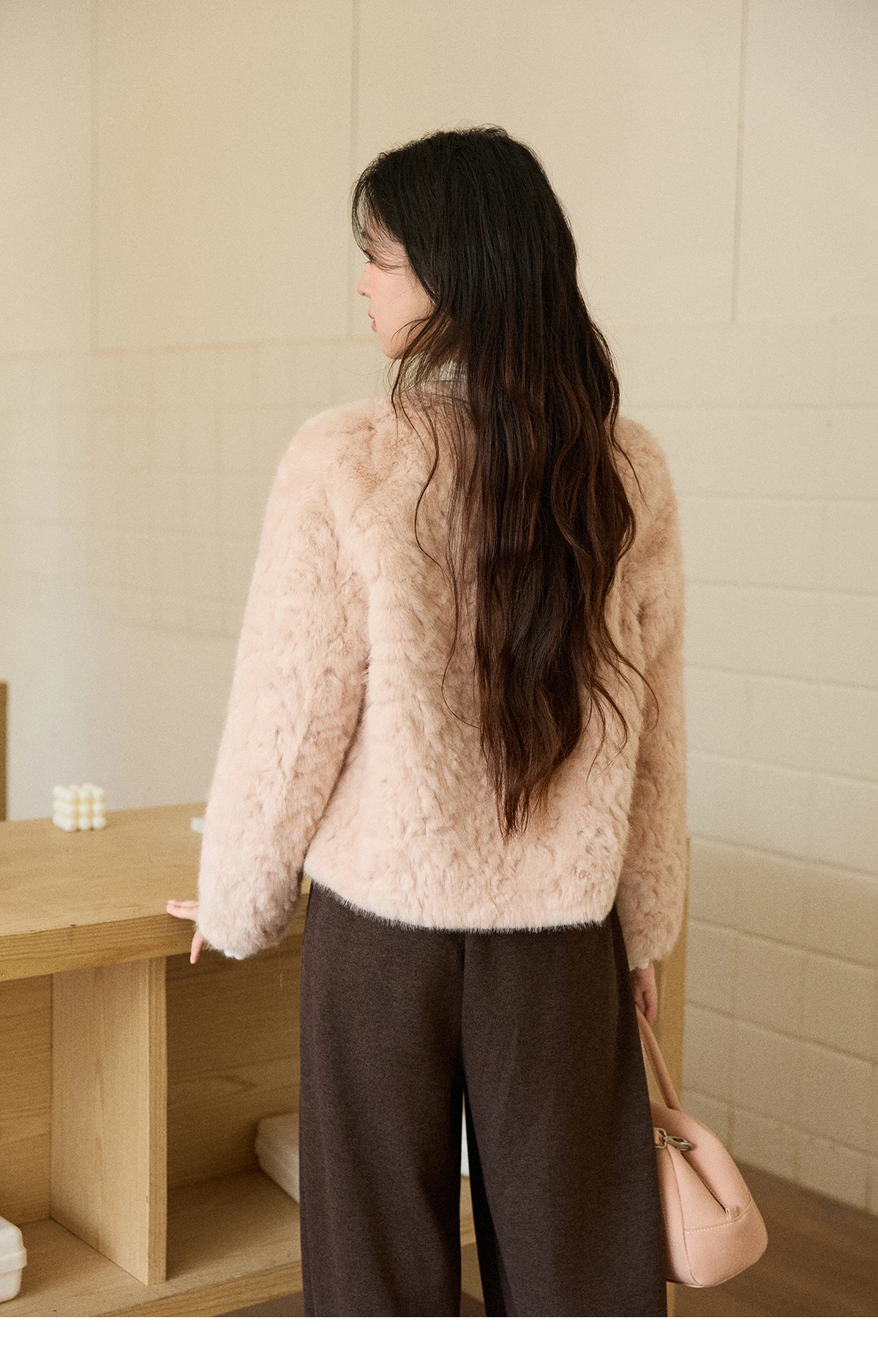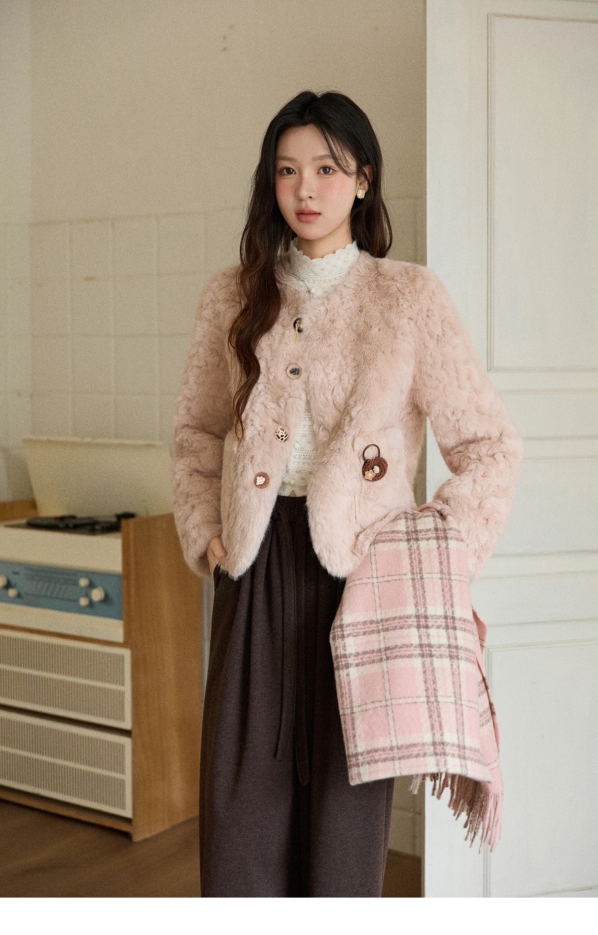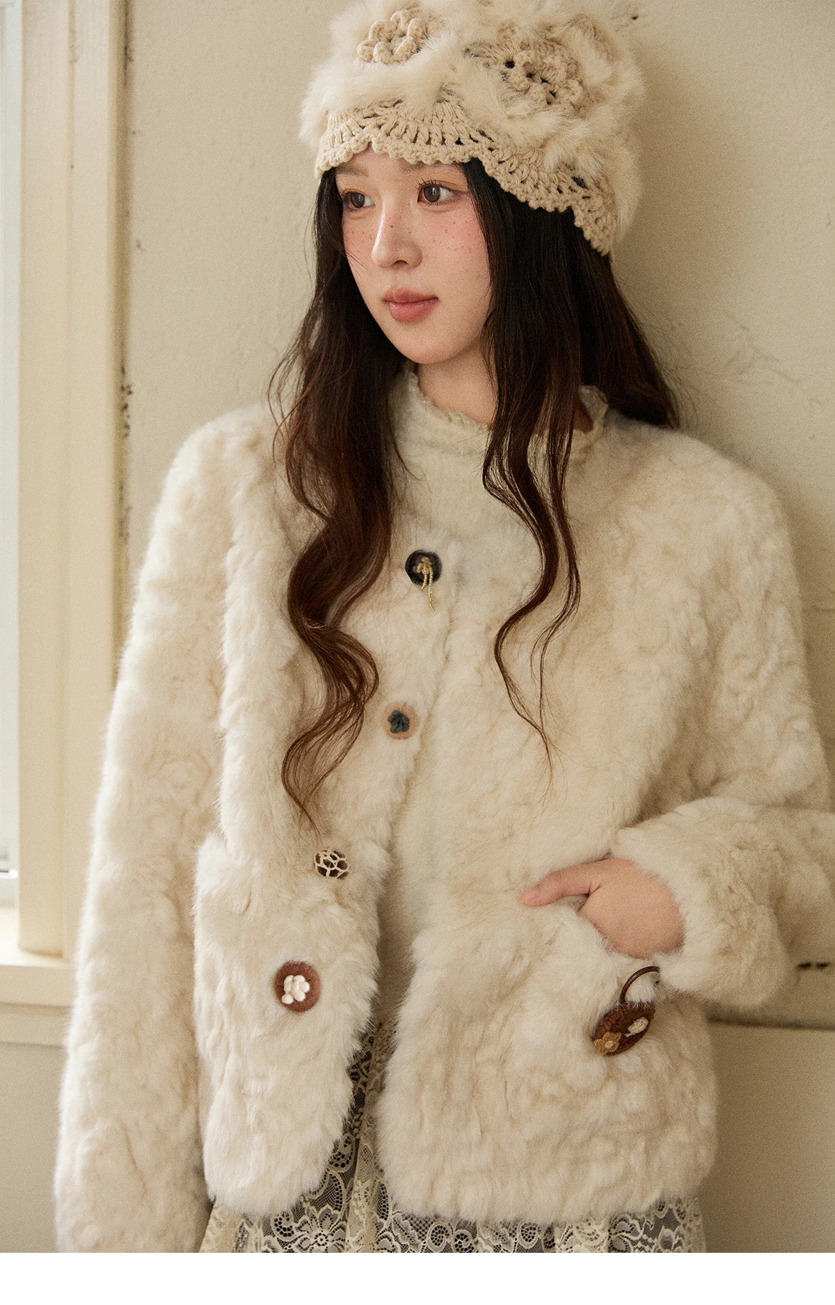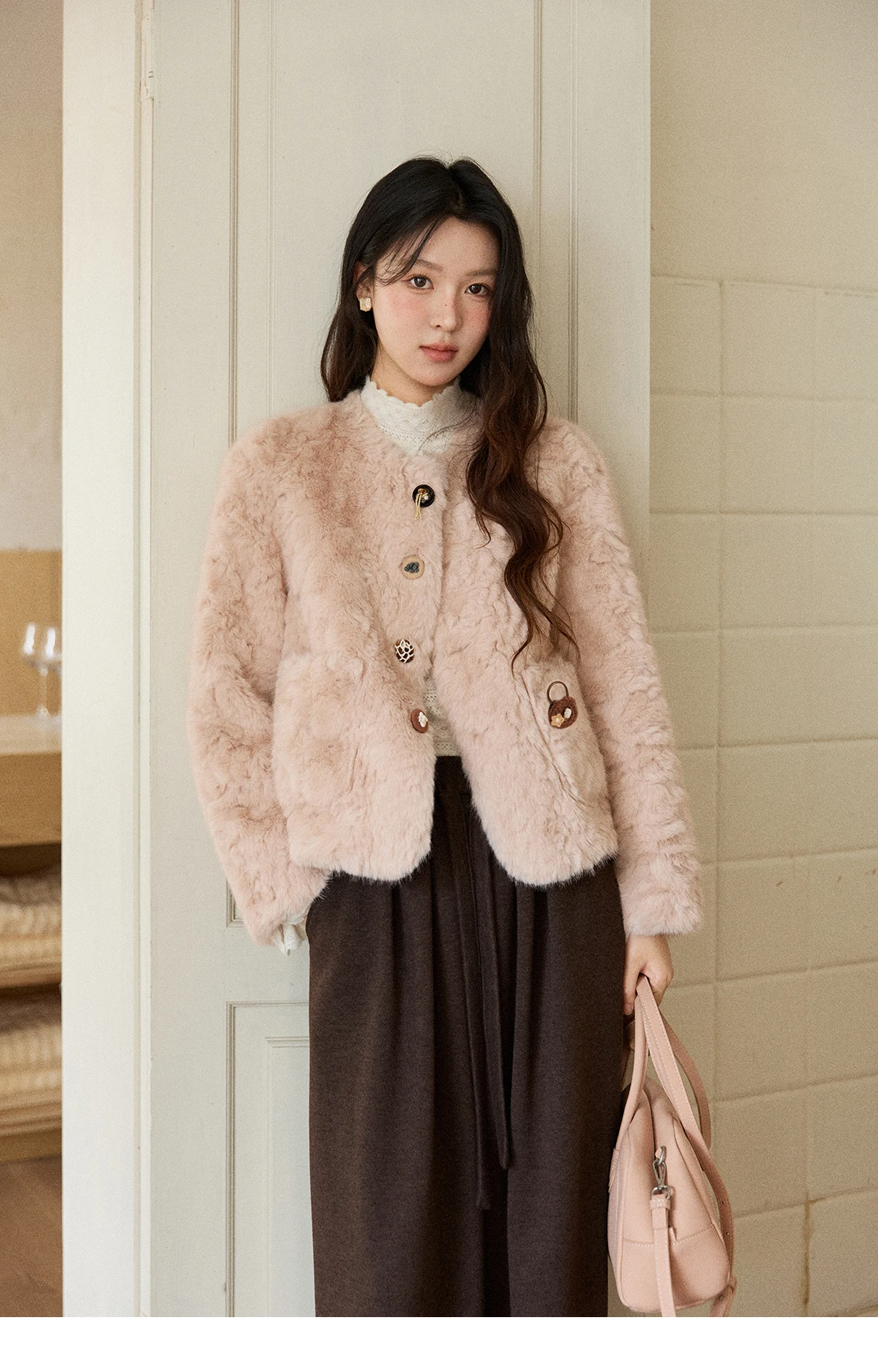MISHOW Women's Winter Jacket 2025 Sweet Pink Faux Rabbit Fur Coat with Pockets Handcrafted Vintage Buttons Outerwear MXE87W0990