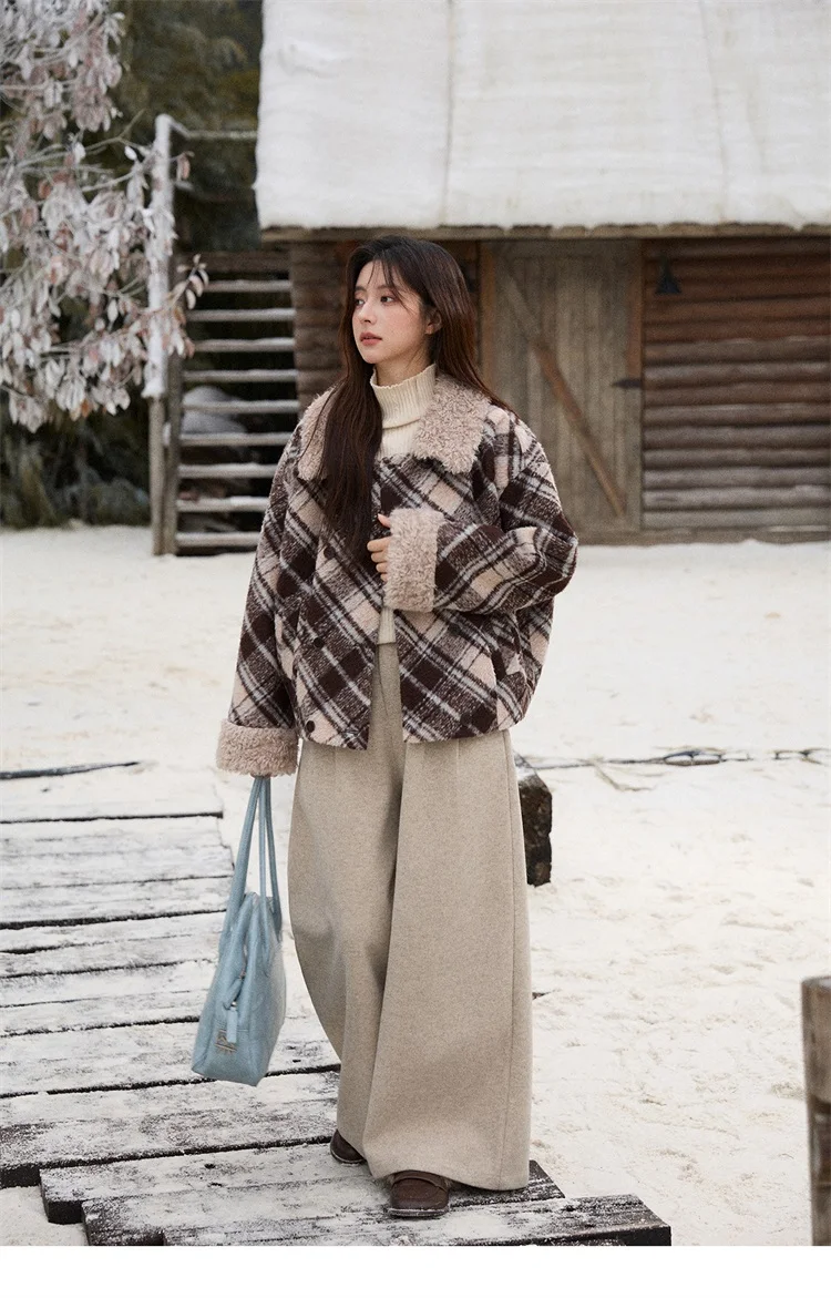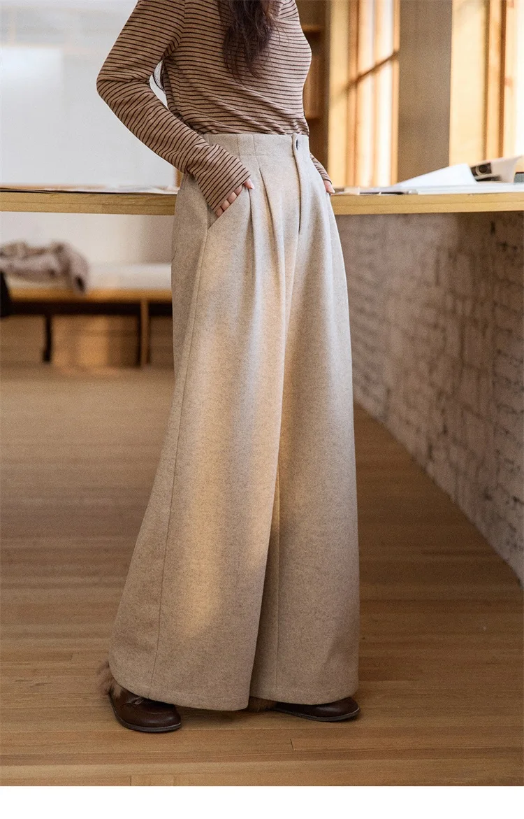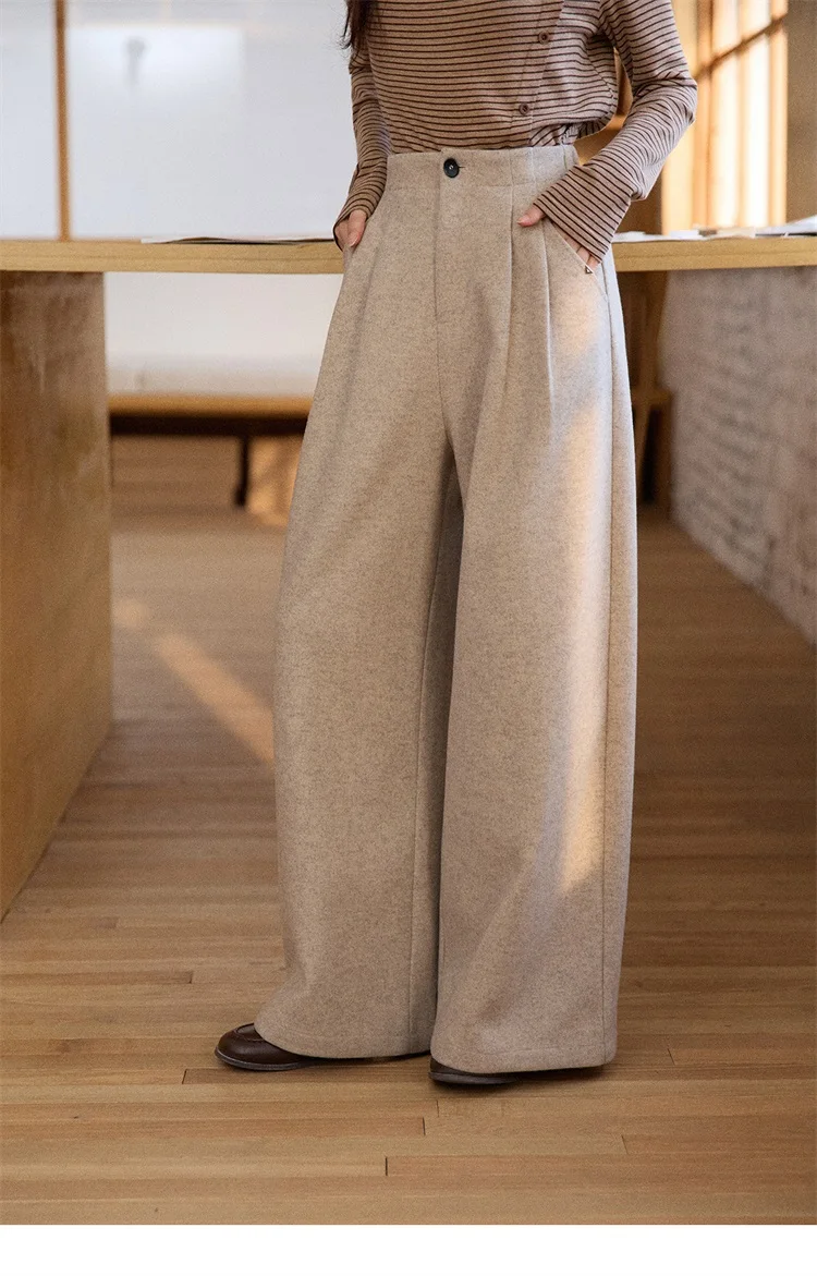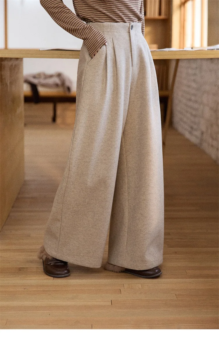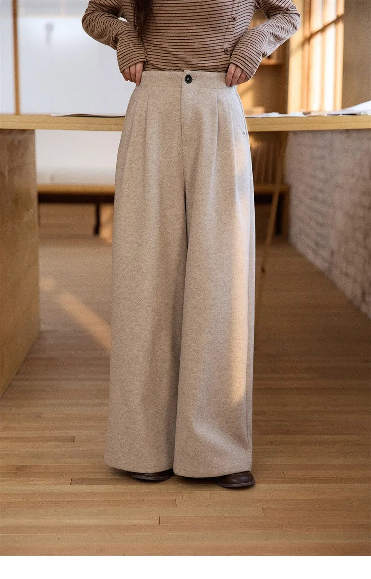 MISHOW Women's Winter Pants 2025 Retro Trousers with Three-dimensional Pleats Pants Pocket Decoration Wide Leg Pants MXE90K1129