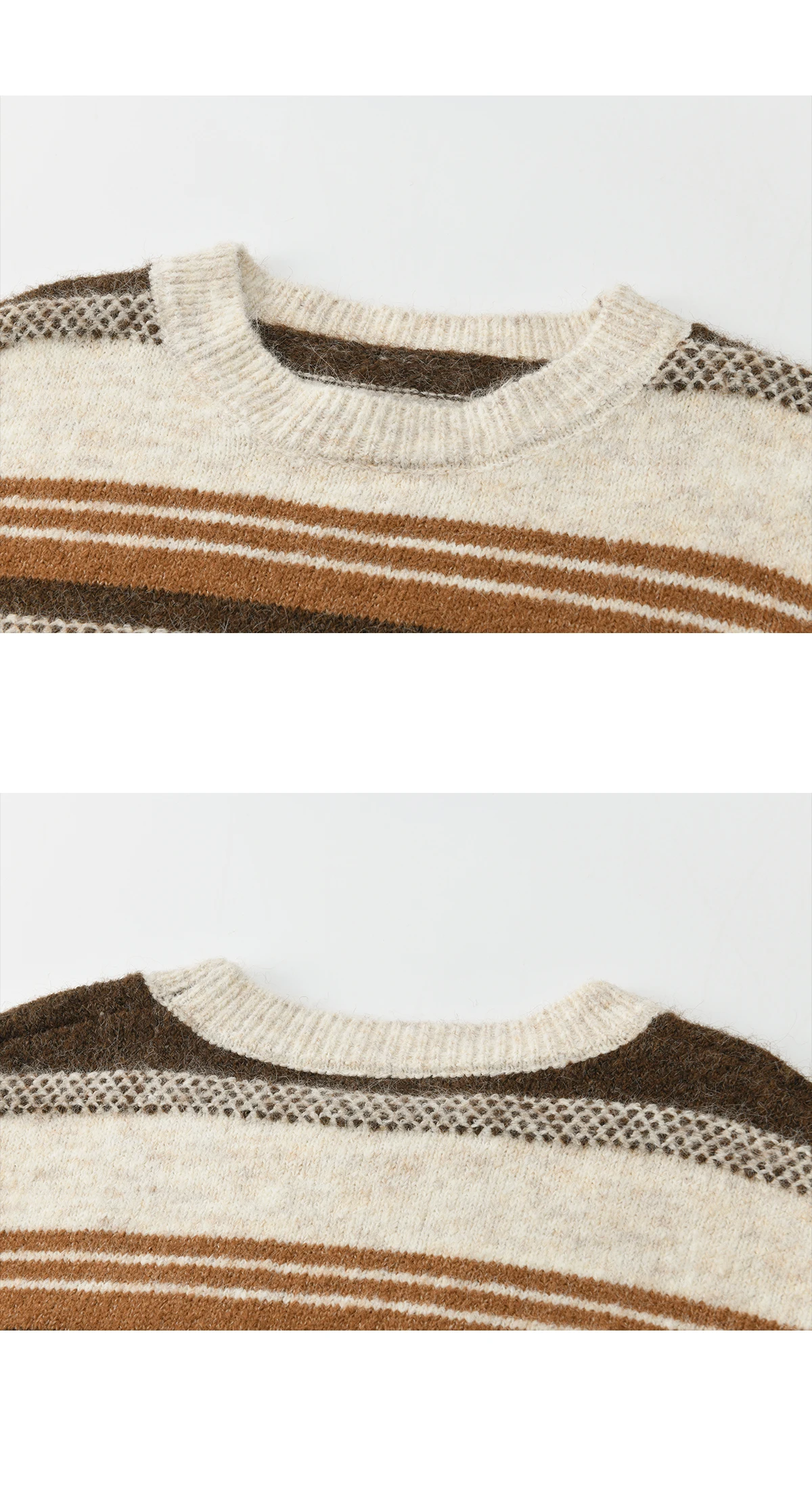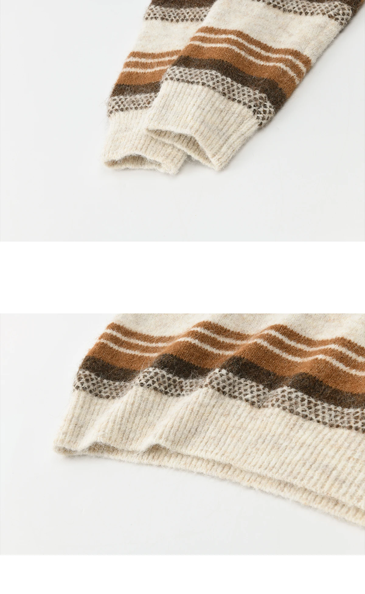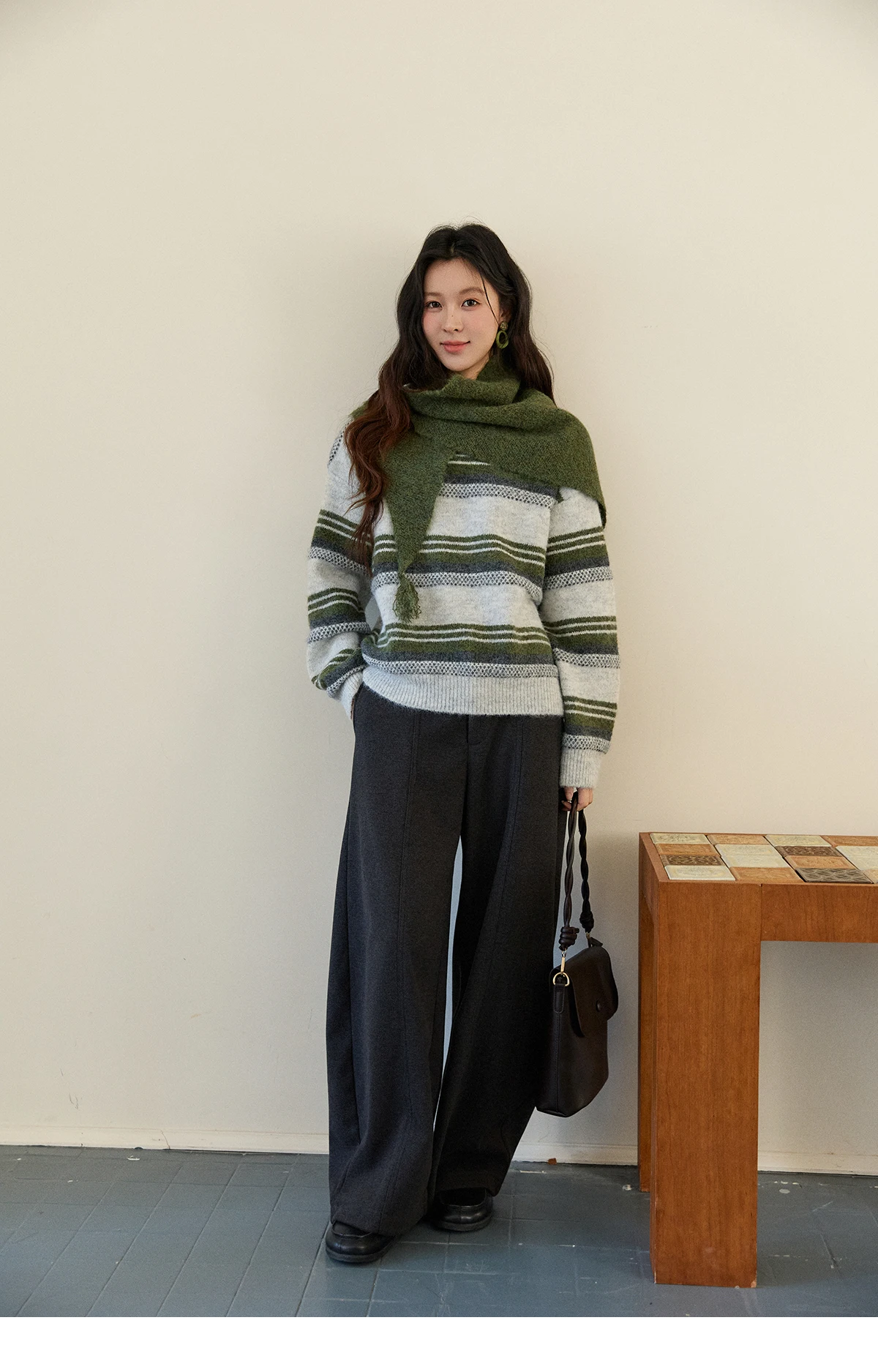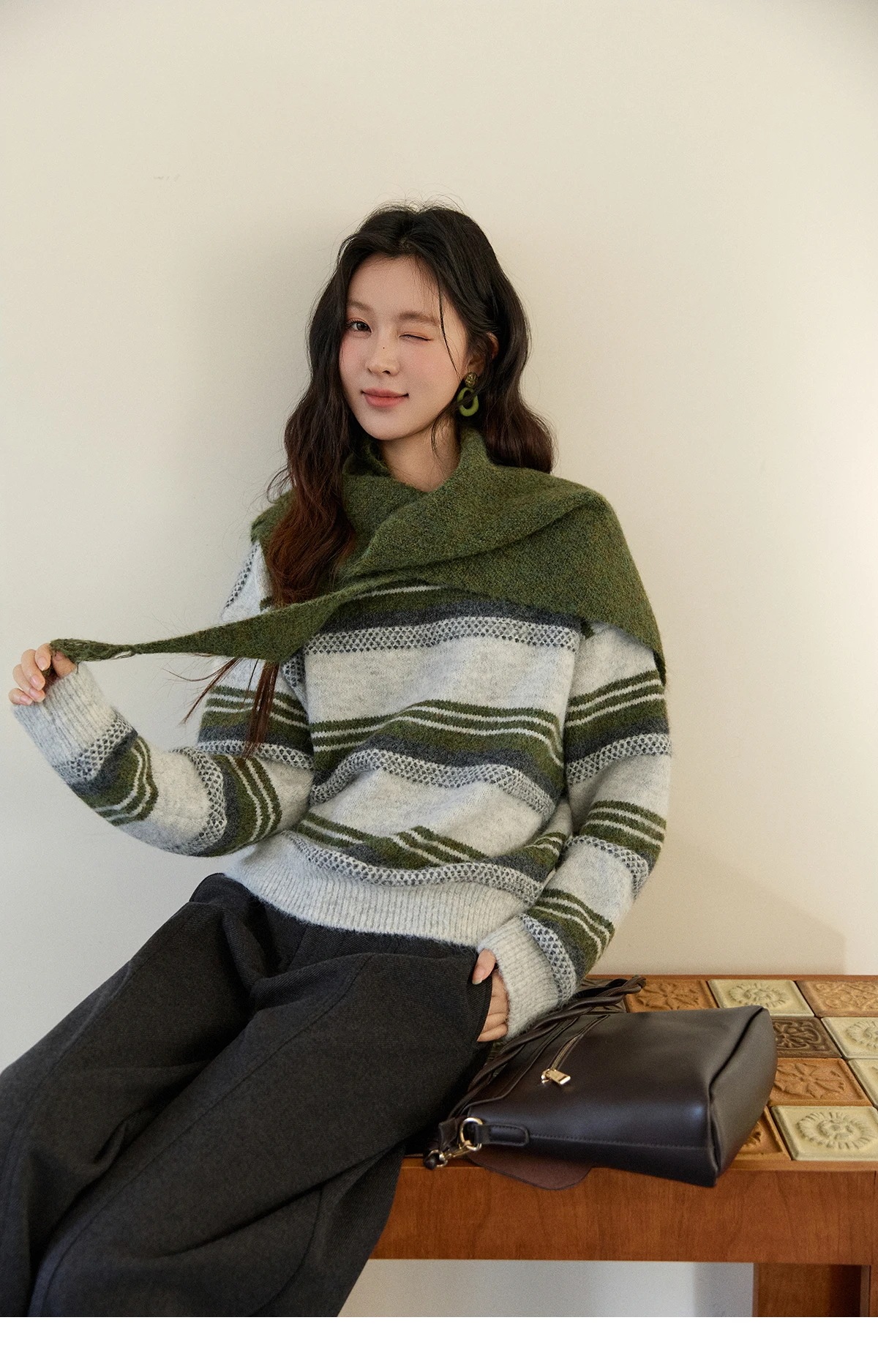 MISHOW Women's Wool Blend Retro Striped Sweater with Scarf Set 2025 Winter Knitted Round Neck Warm Loose Sweaters MXE94Z2987