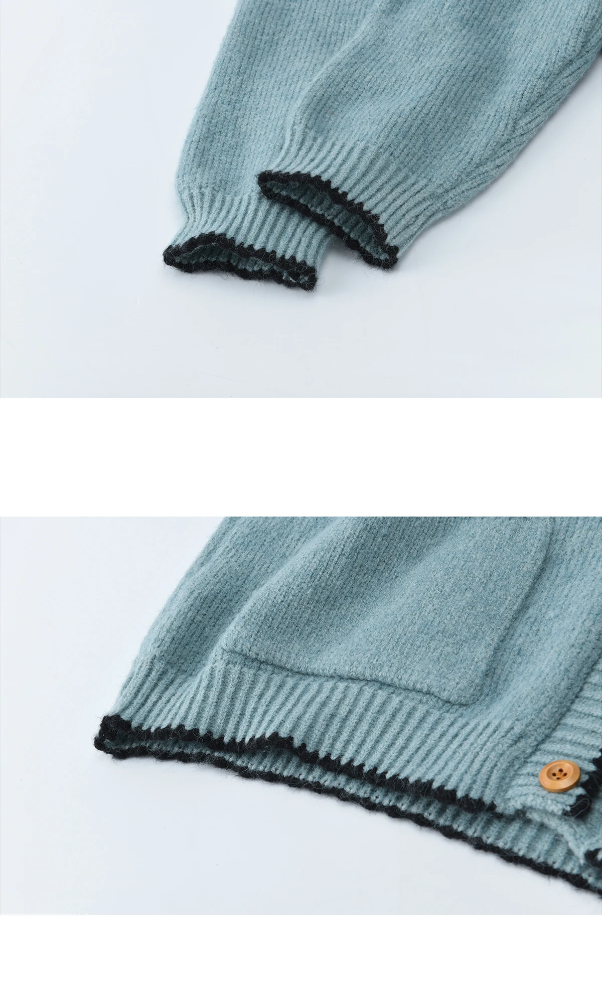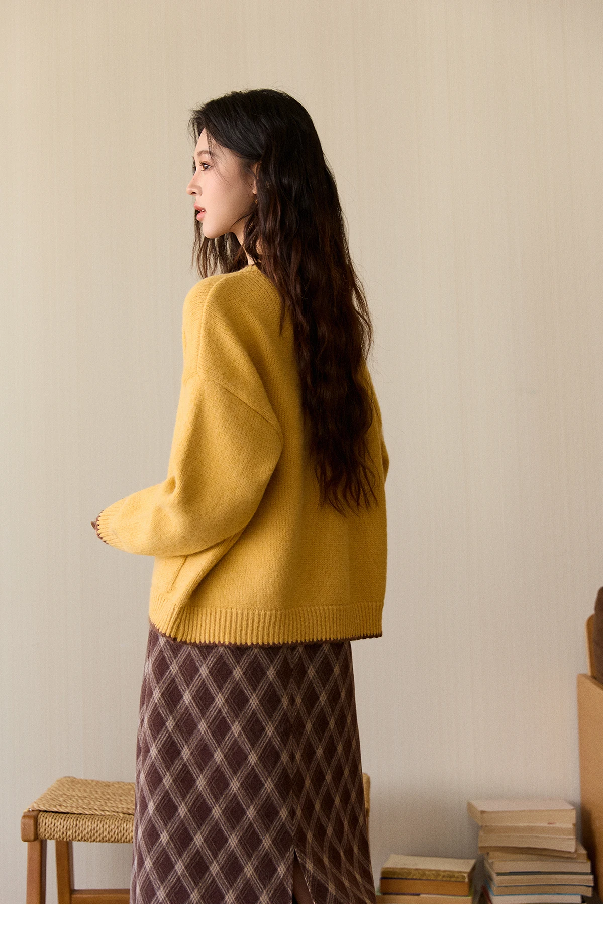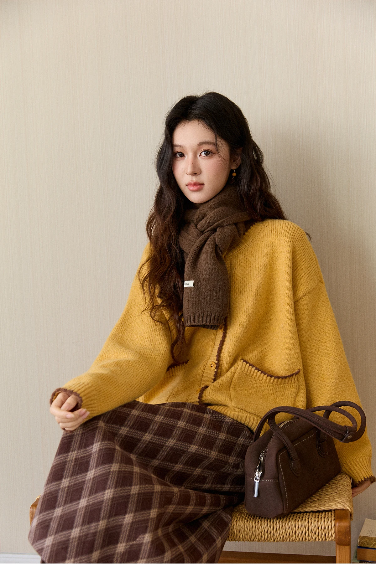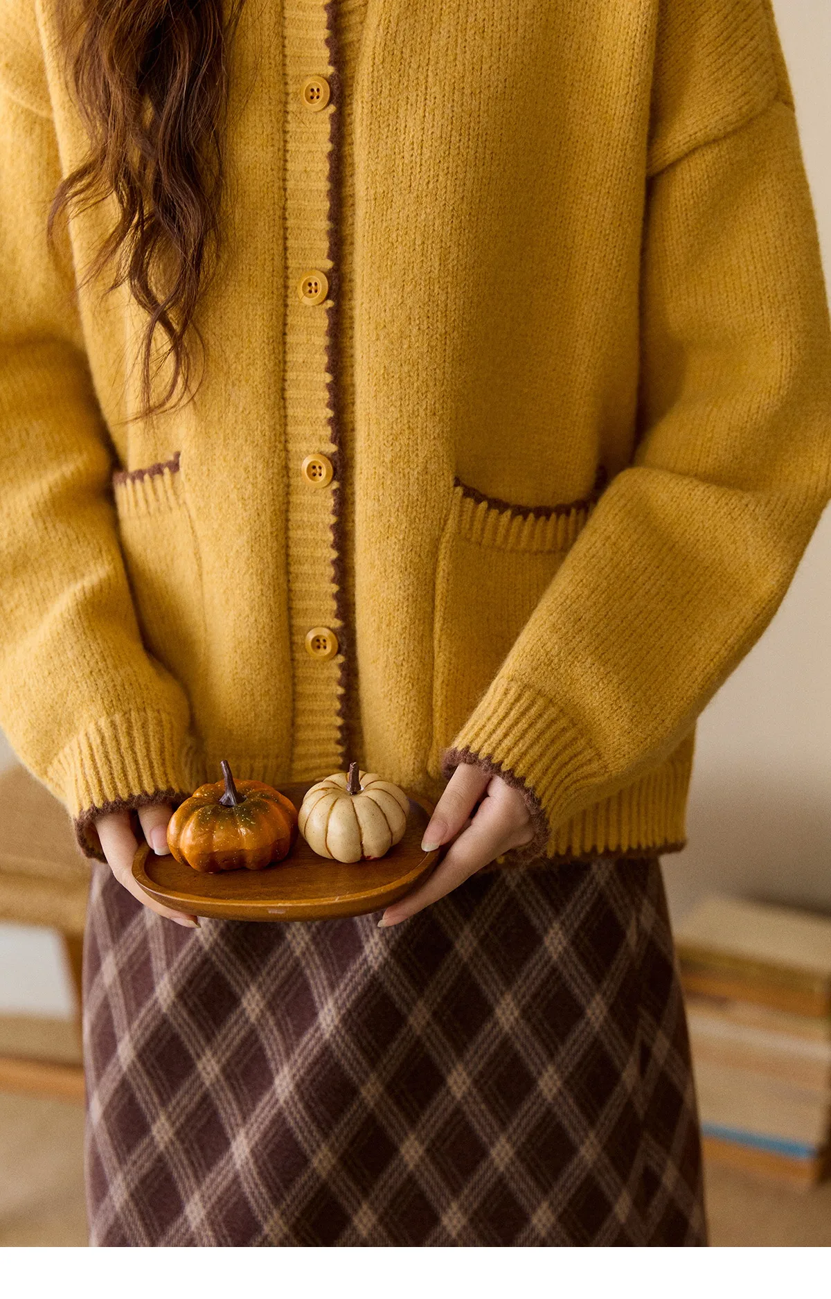 MISHOW Women's Yellow Knitted Cardigan 2025 Autumn Winter Color Collision Edge Sweater Pockets Loose Warm Casual Tops MXE94Z2973