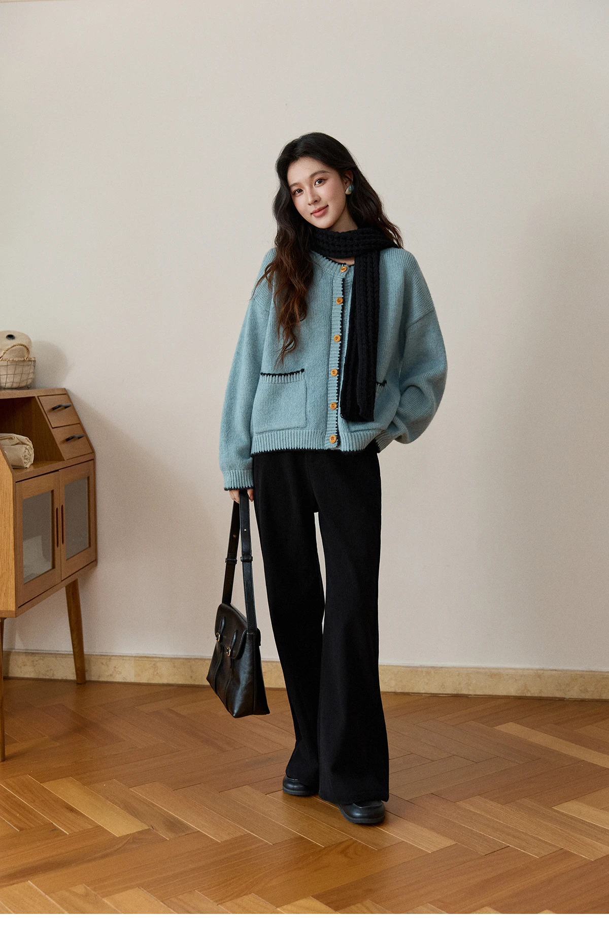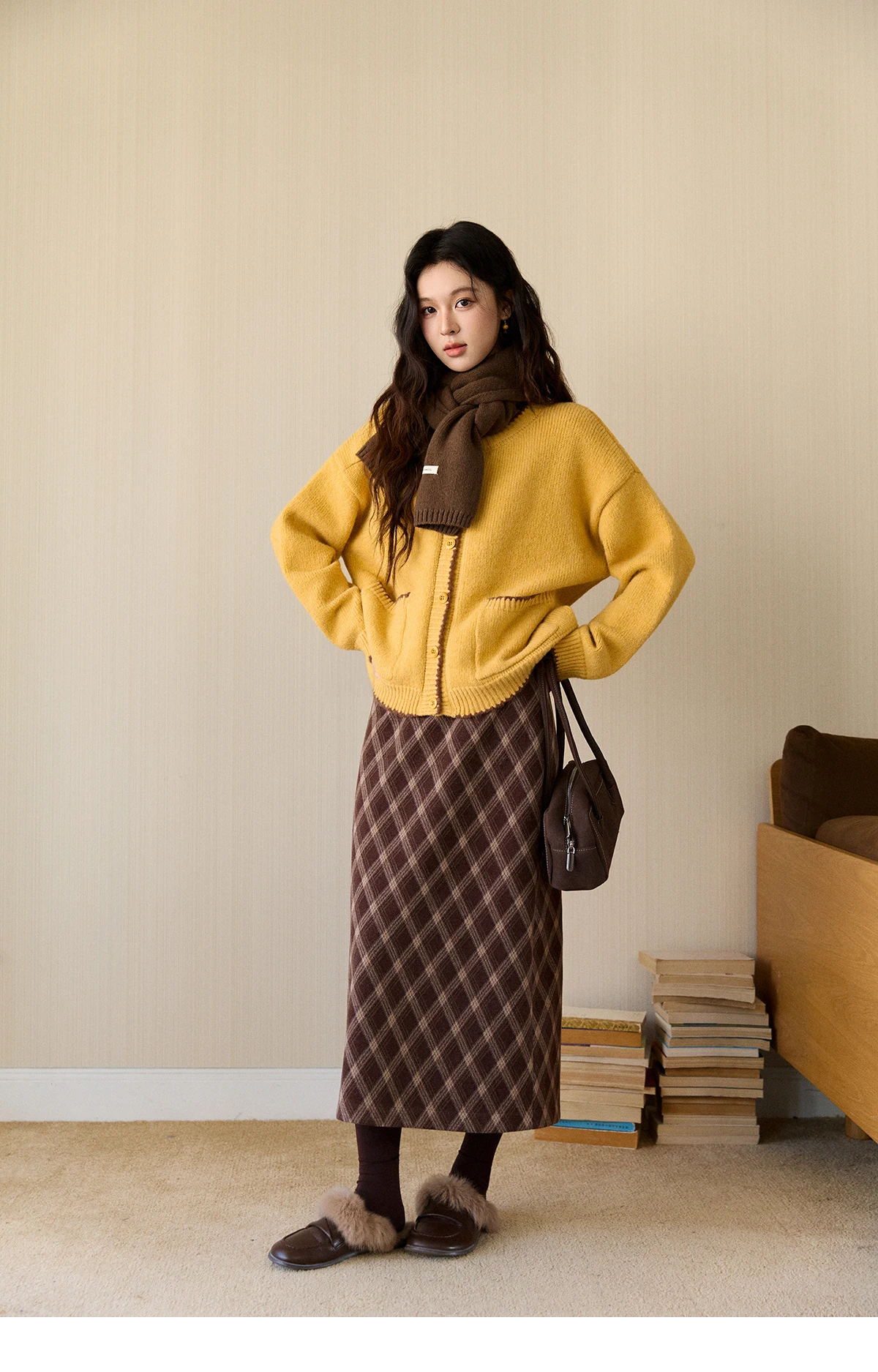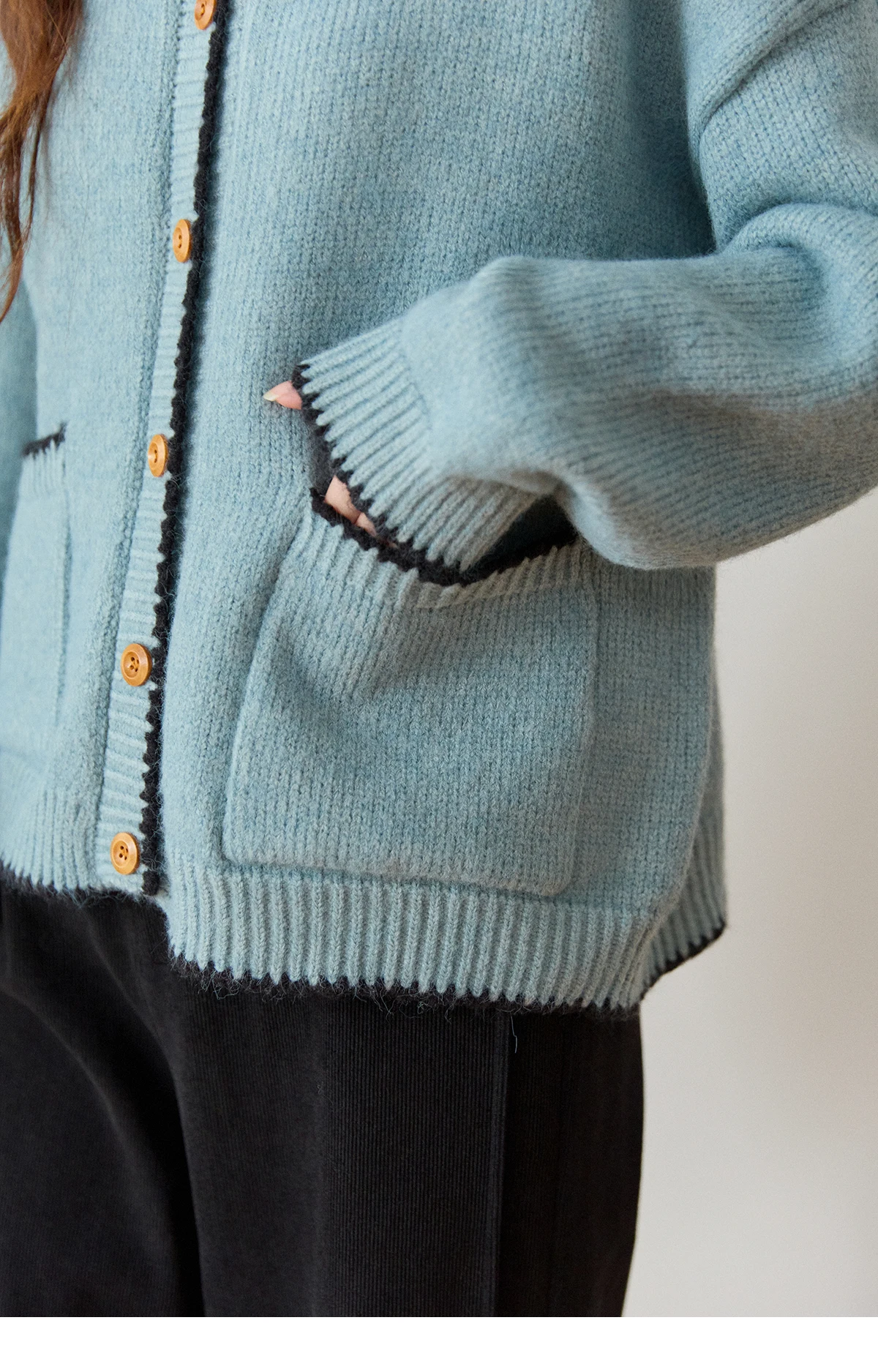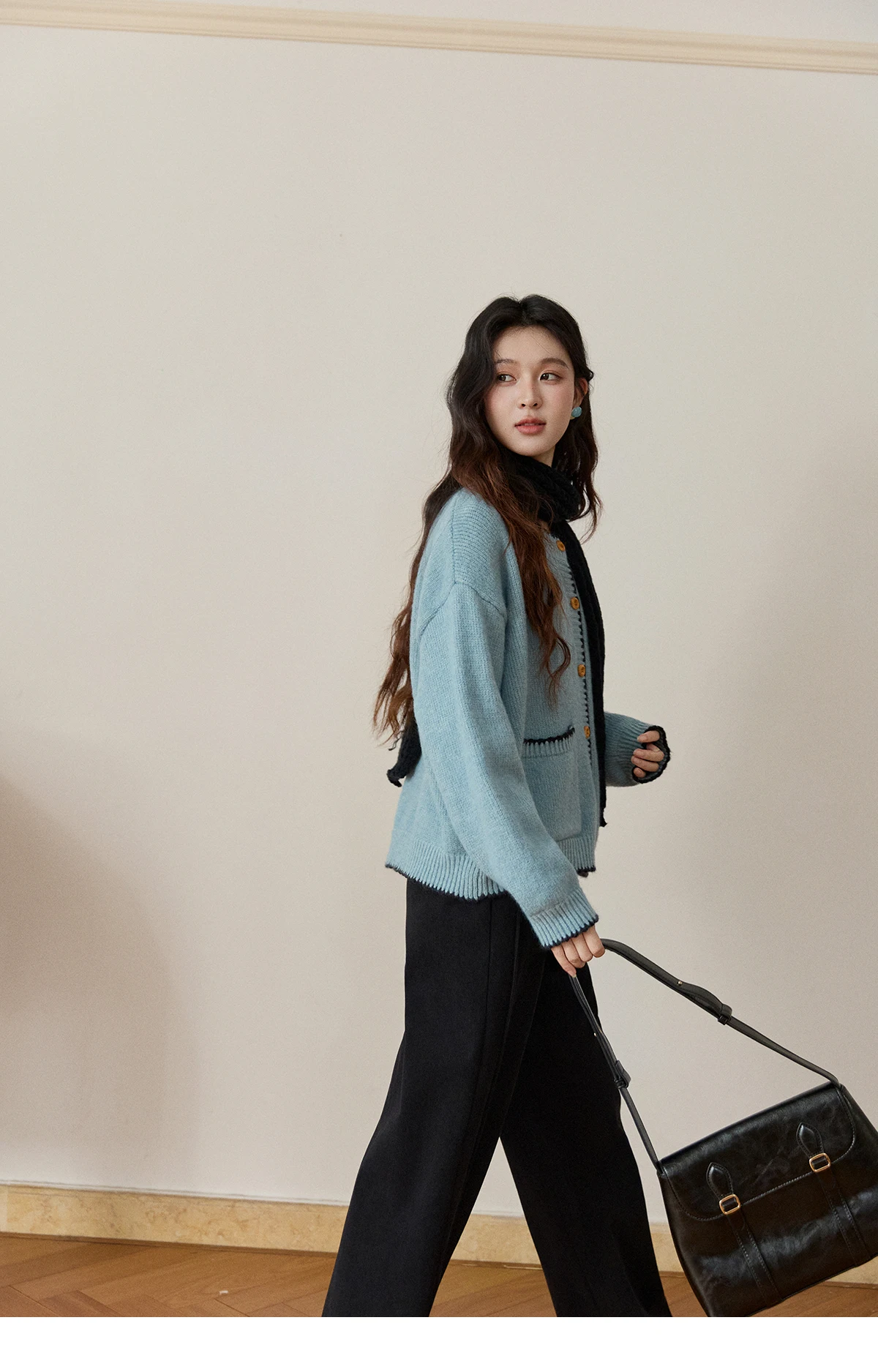 MISHOW Women's Yellow Knitted Cardigan 2025 Autumn Winter Color Collision Edge Sweater Pockets Loose Warm Casual Tops MXE94Z2973