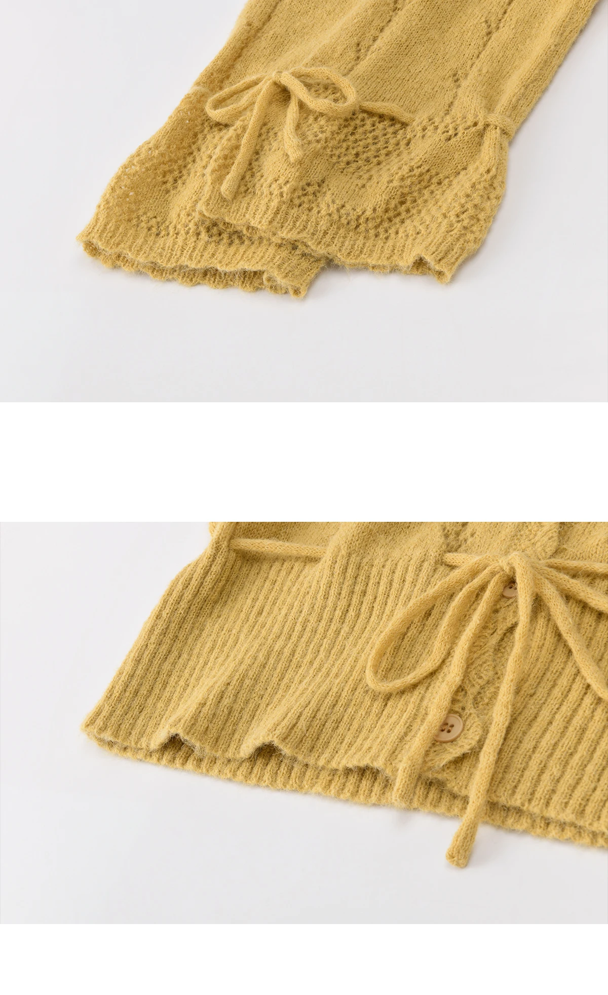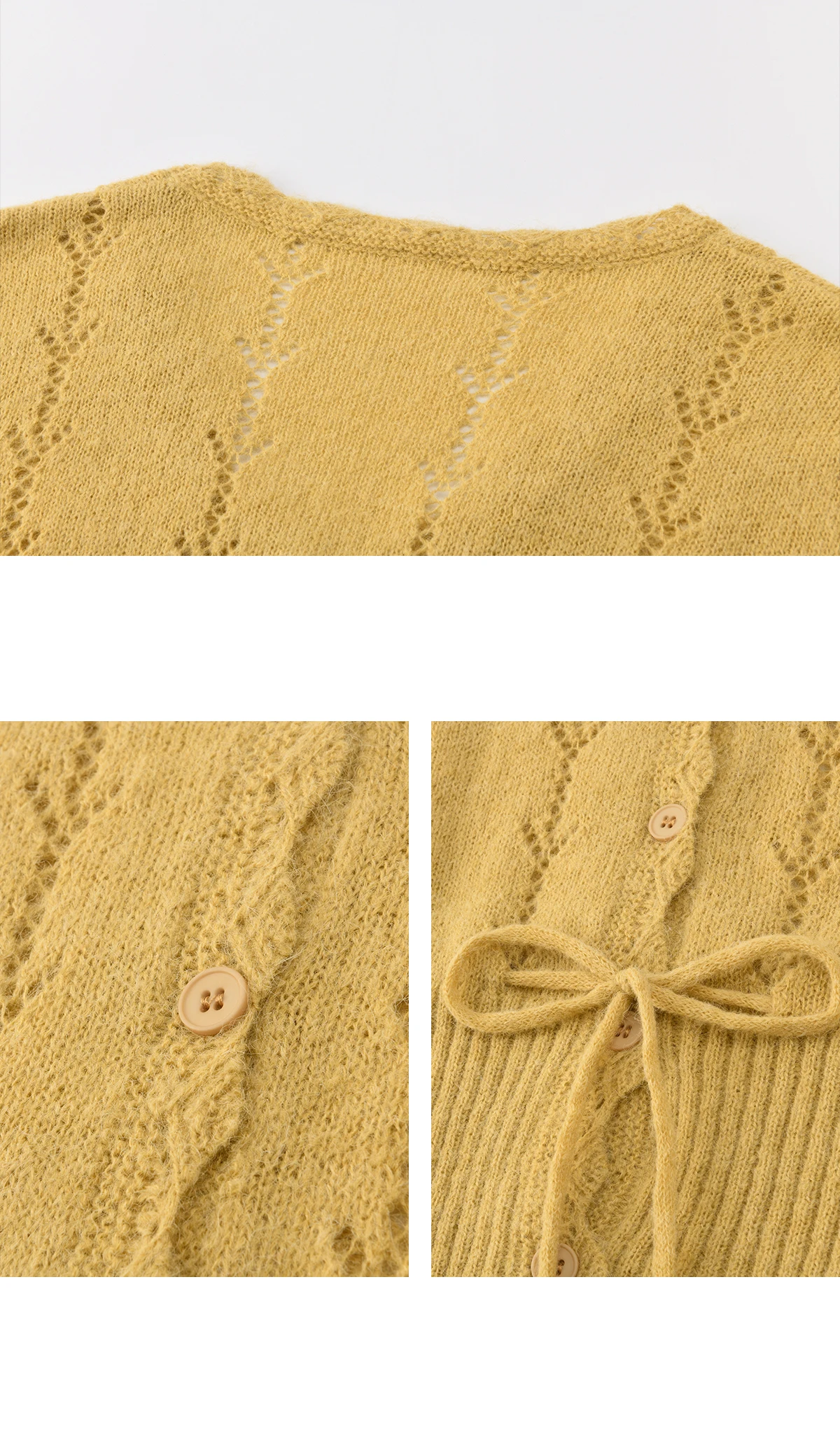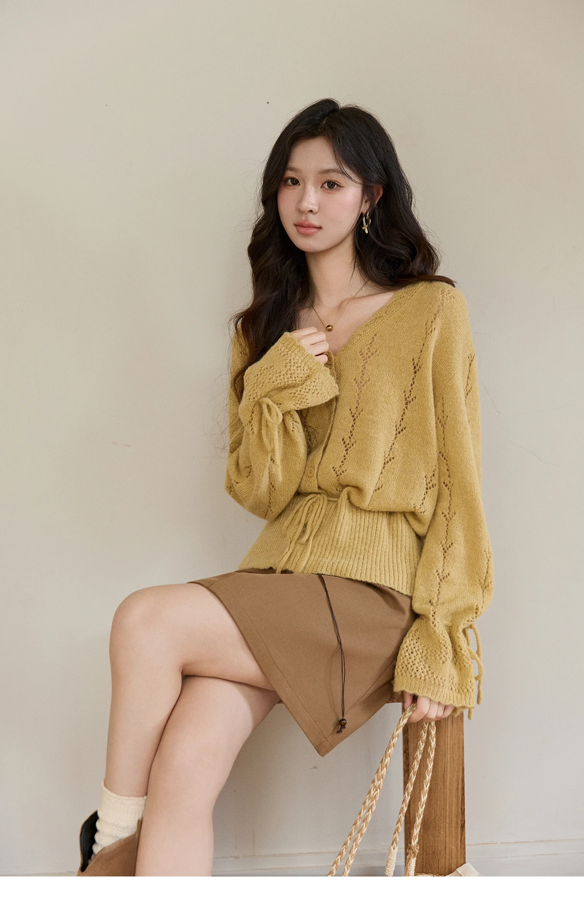 MISHOW Women's Yellow Knitted Cardigan 2026 Spring Hollow Out V-Neck Drawstring Waist Long Sleeve Casual Loose Tops MXF108Z1022