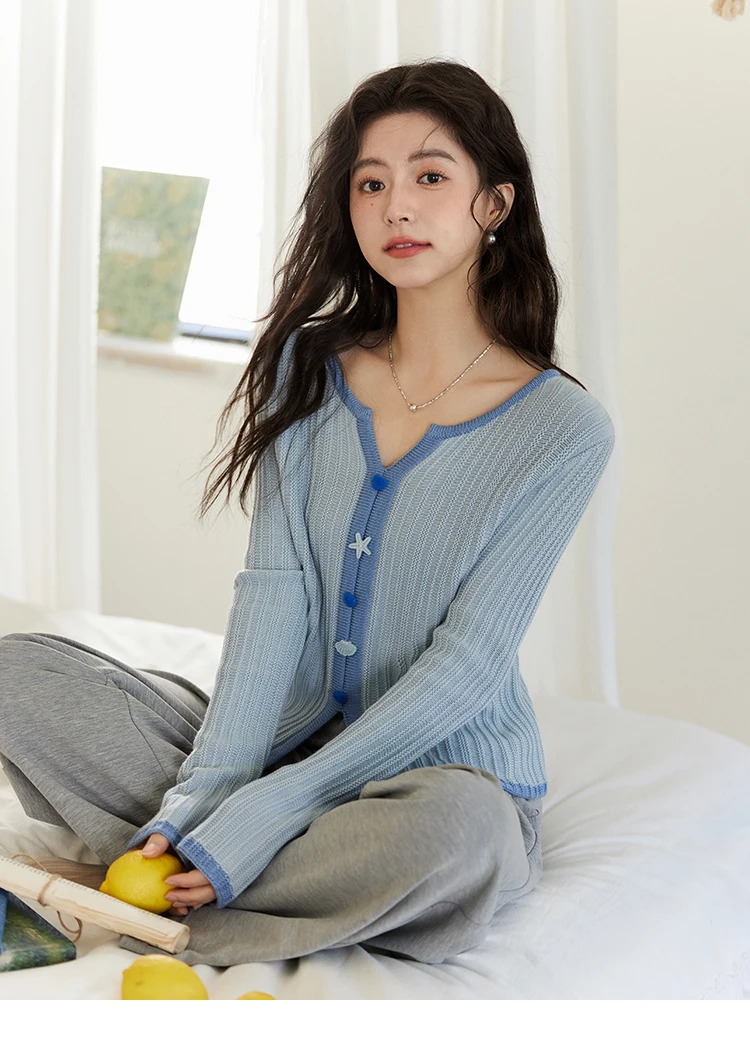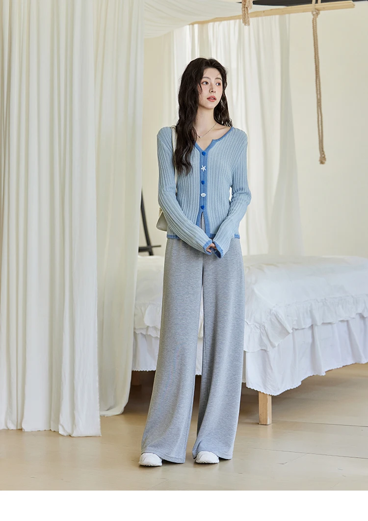 MISHOW Wool Blend Blue Contrasting Knitted Top 2025 Spring Slim Fit Base Sweater Women V Neck Shell Button Sweet Tops MXE14Z1184