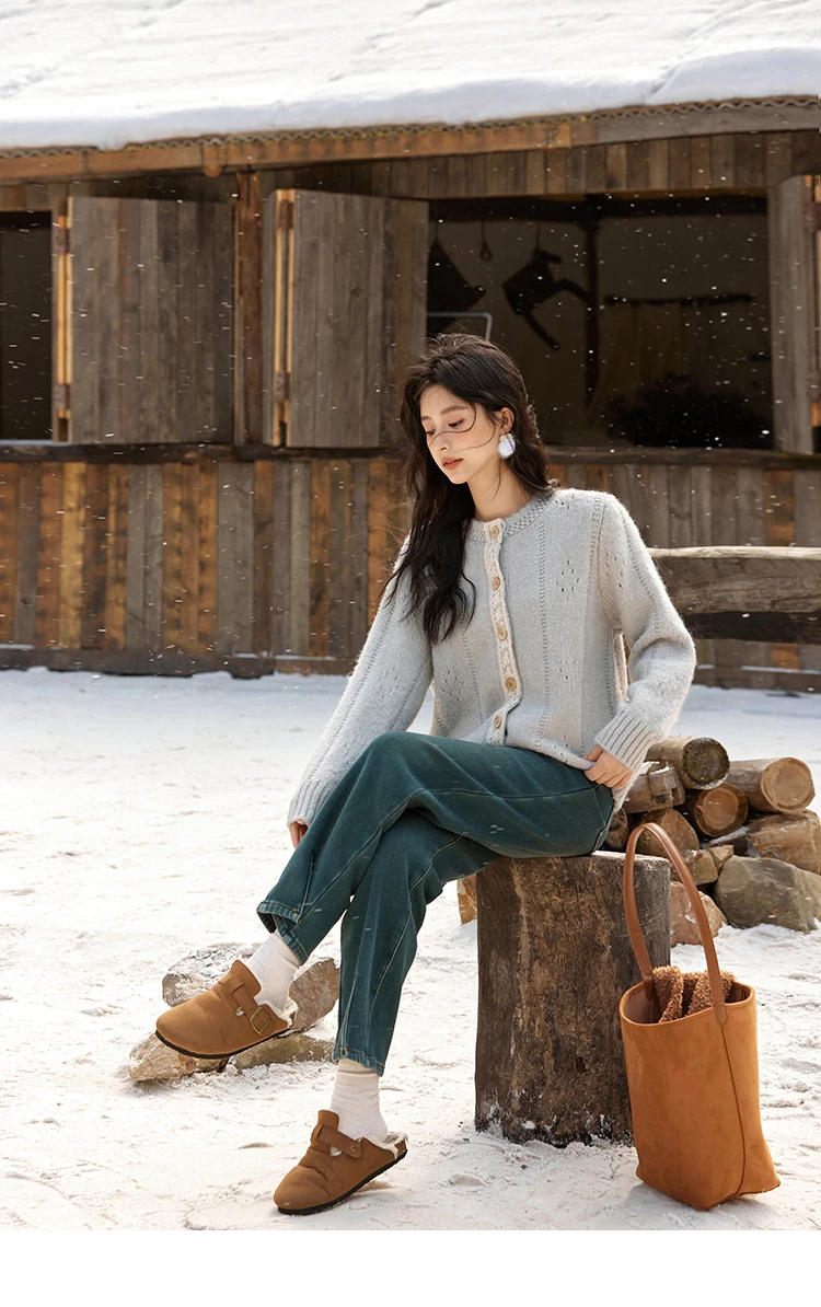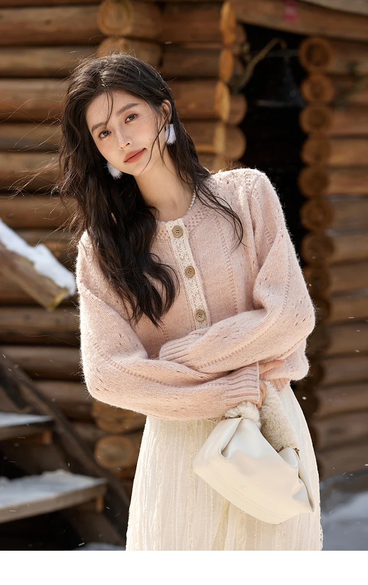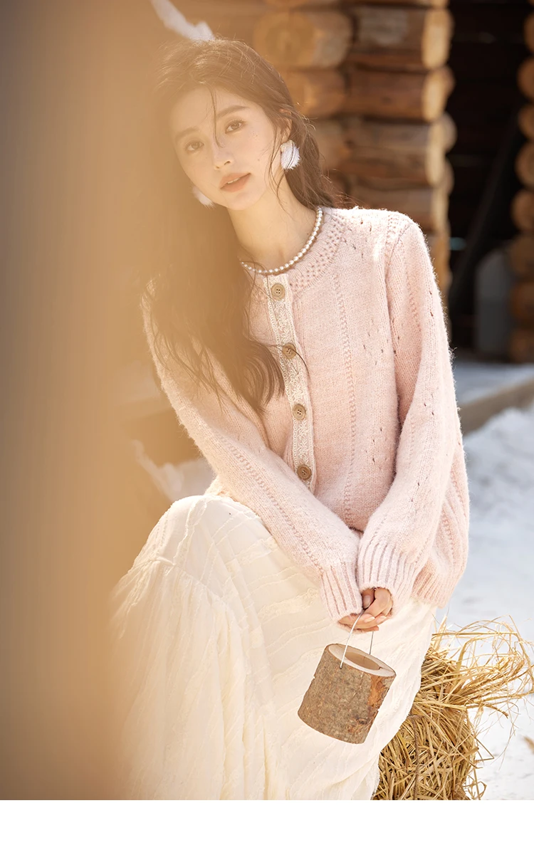 MISHOW Wool Blend Cardigan Pink Sweater 2024 Autumn Winter Women Clothes Sweet Top Knitted Sweater Outerwears MXD56Z1064